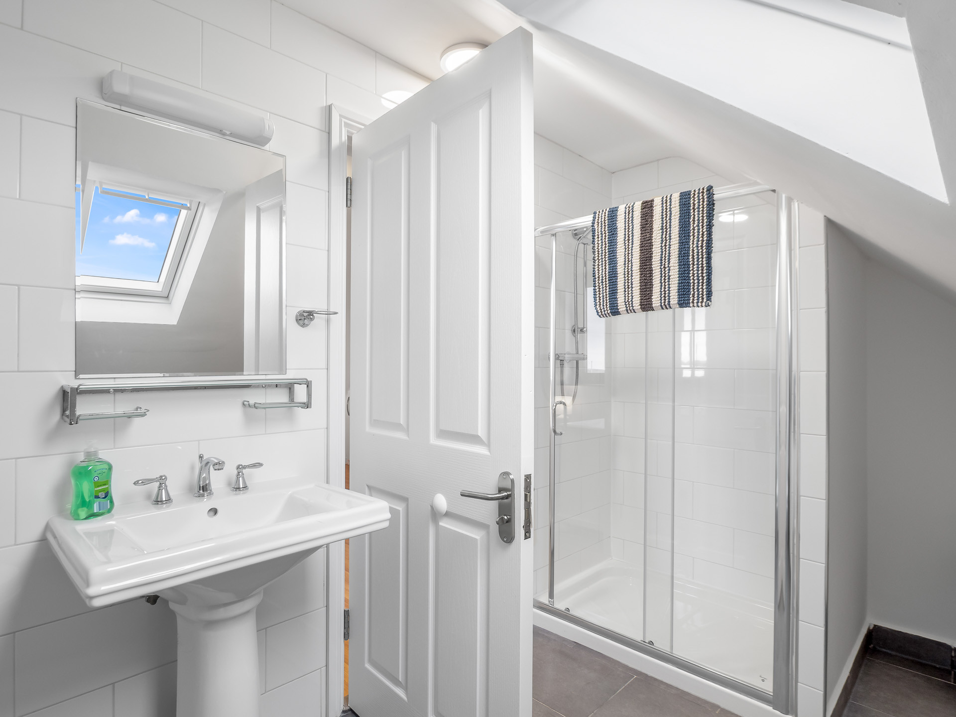 Both cottages are finished to the highest standard. The main living areas ooze natural light streaming in from the windows, patio doors and Velux skylights. The sitting room area in the white cottage has a large comfy sofa and two matching armchairs, a flat flat-screen Smart TV with Netflix and an open fireplace.