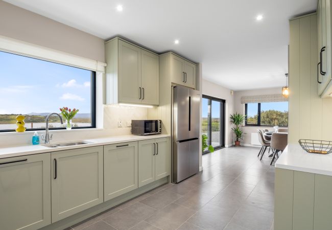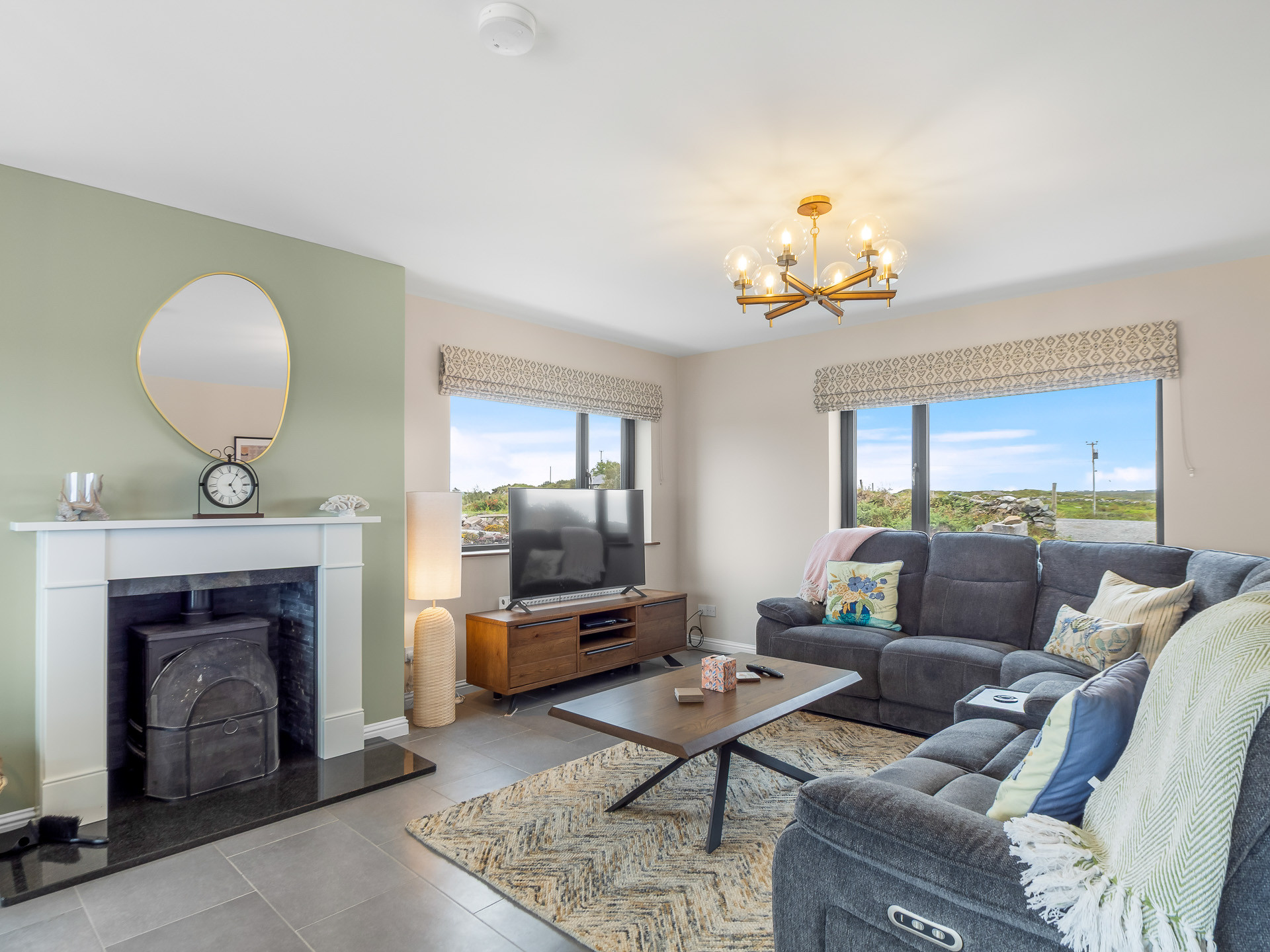 A warm welcome awaits you in this beautifully restored, modern and extremely stylish home where one can relax unwind and enjoy the high levels of comfort and convenience that Dun Loughan has to offer. 360-degree panoramic countryside views of the 12 Bens, the Atlantic Ocean along the Wild Atlantic Way.