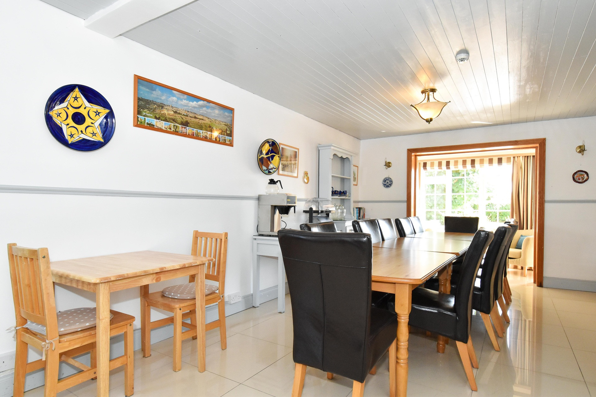 Step inside and you’ll find warm, inviting spaces designed for gathering and relaxation. A cosy living room with a glowing stove invites you to settle in after a day outdoors. The open kitchen and dining area is made for easy mealtimes, while a second dining space with a long table creates the perfect setting for shared breakfasts or group dinners. Every bedroom is ensuite, generously sized, and fitted with its own TV, perfect for unwinding in privacy at the end of the day.