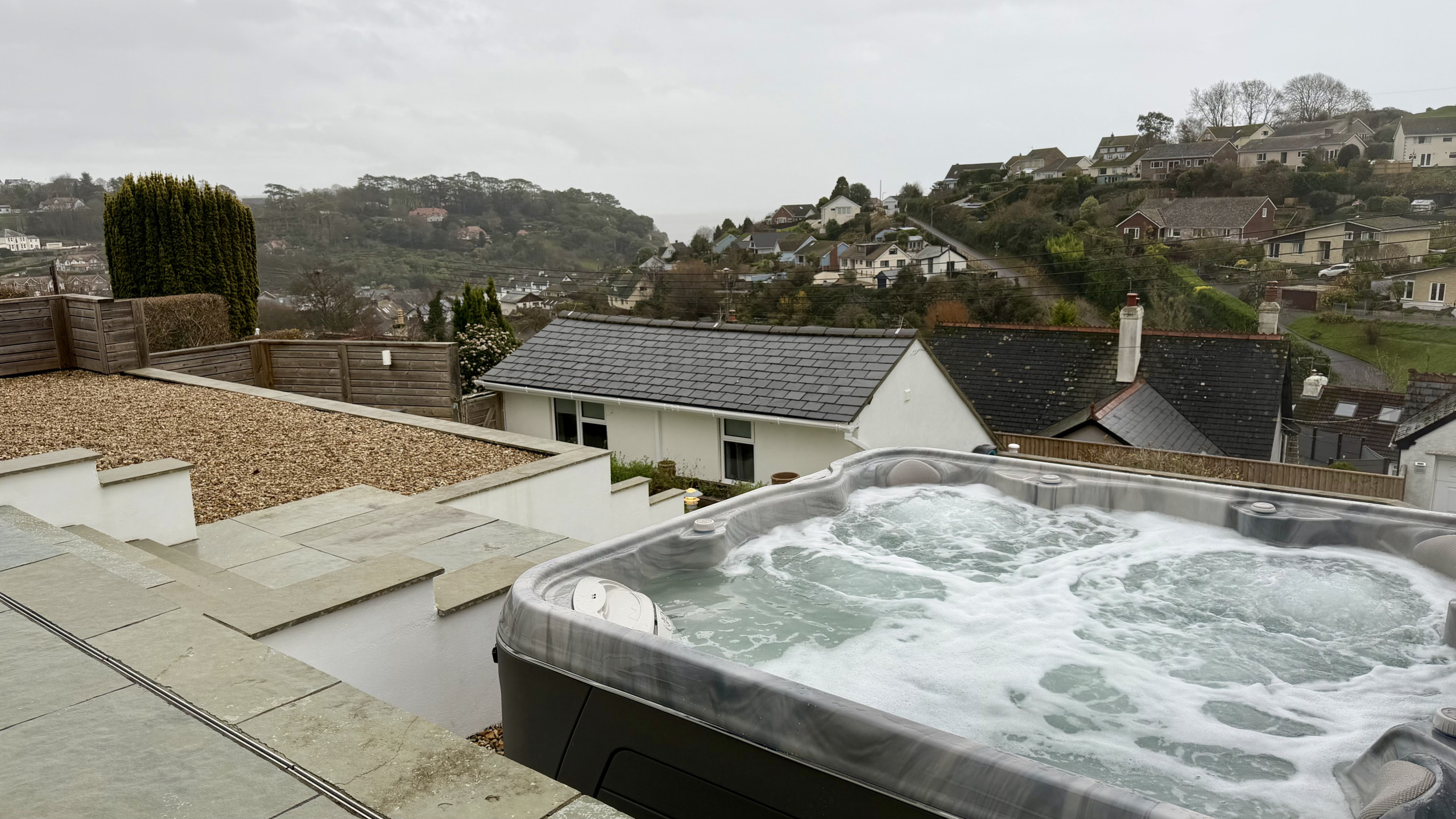 - Hydropool hot tub perfectly positioned on the front terrace overlooking Beer village with stunning sea views