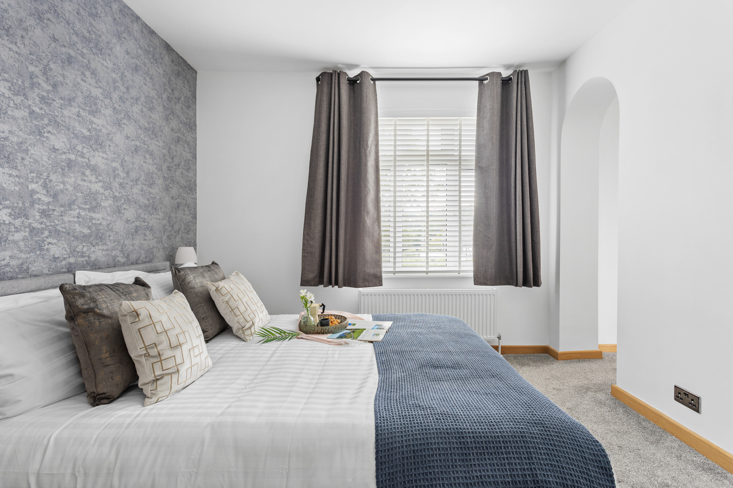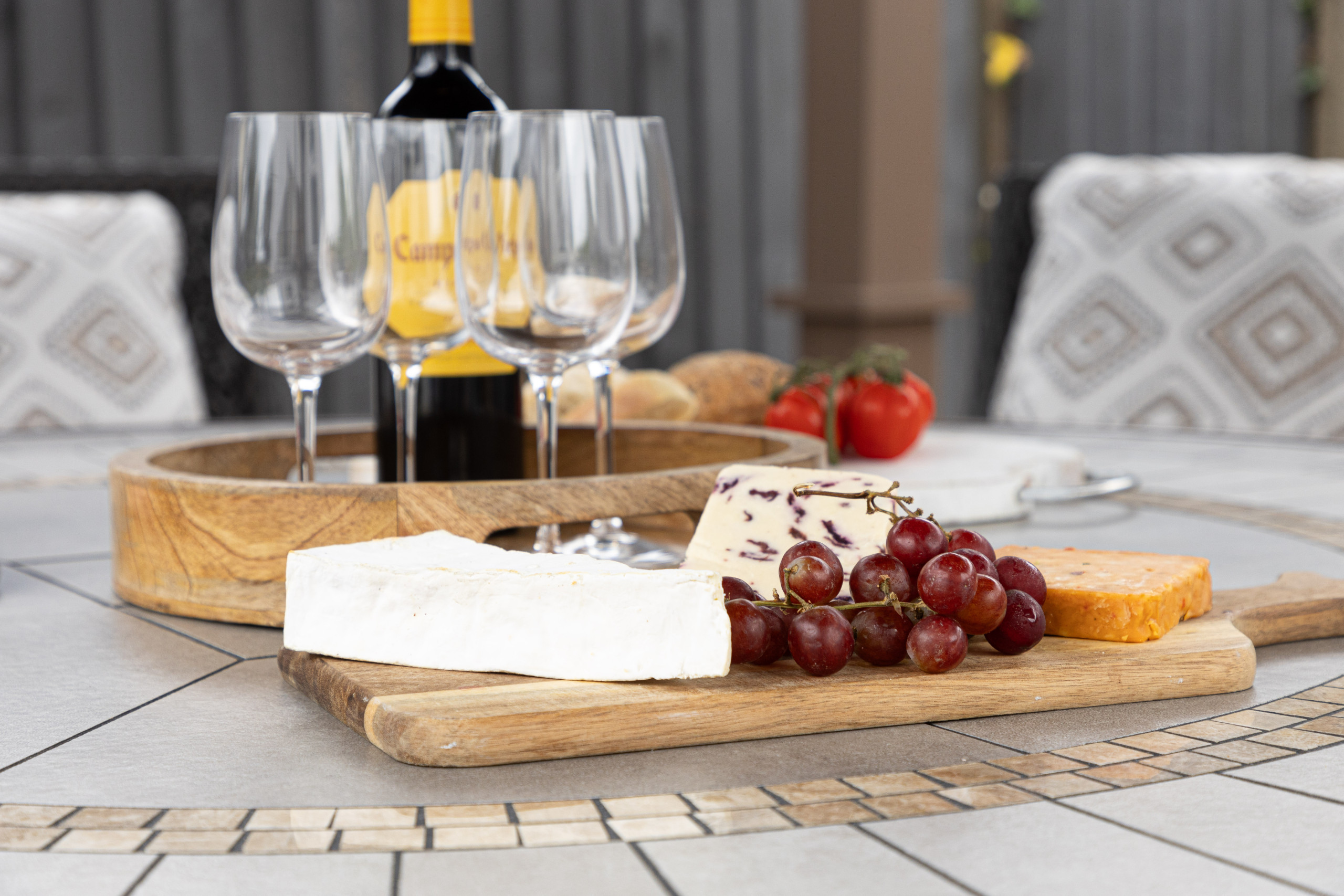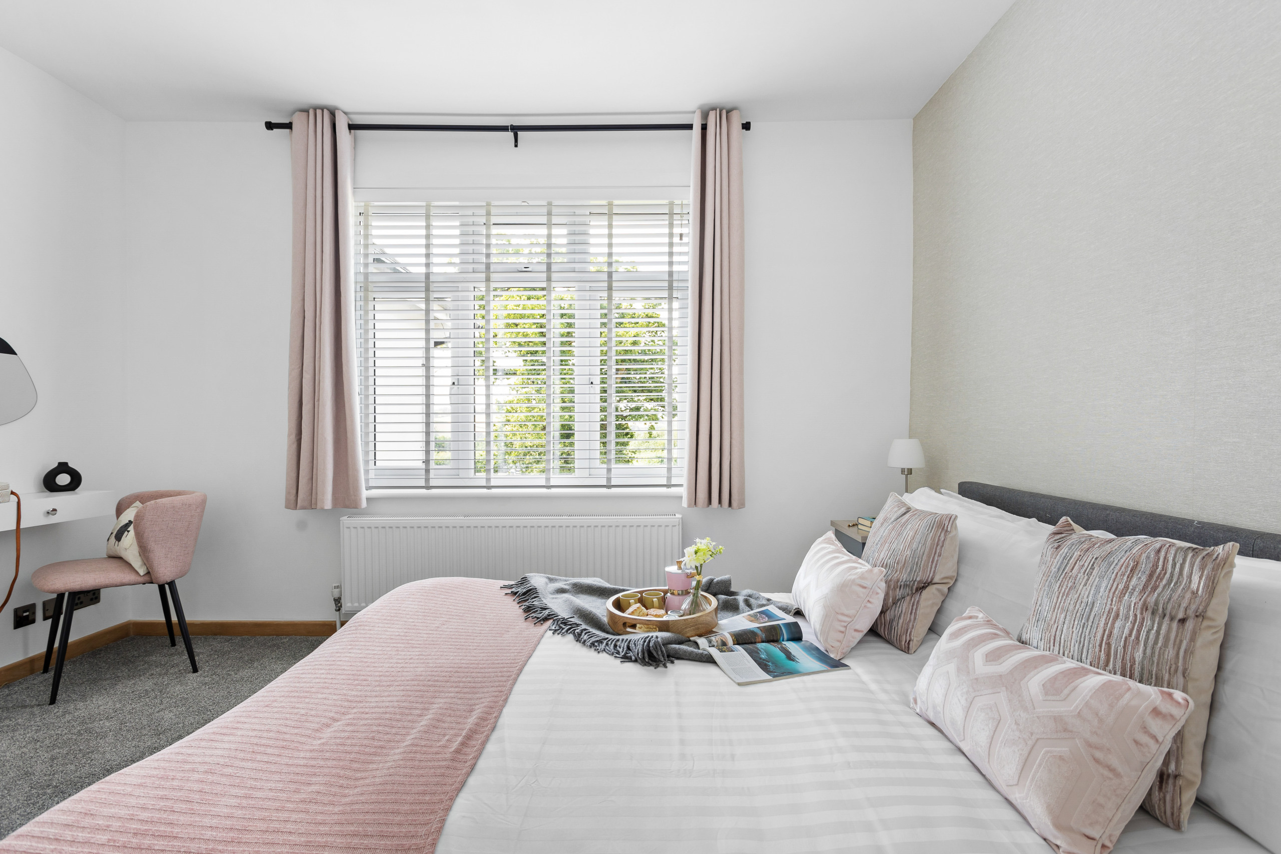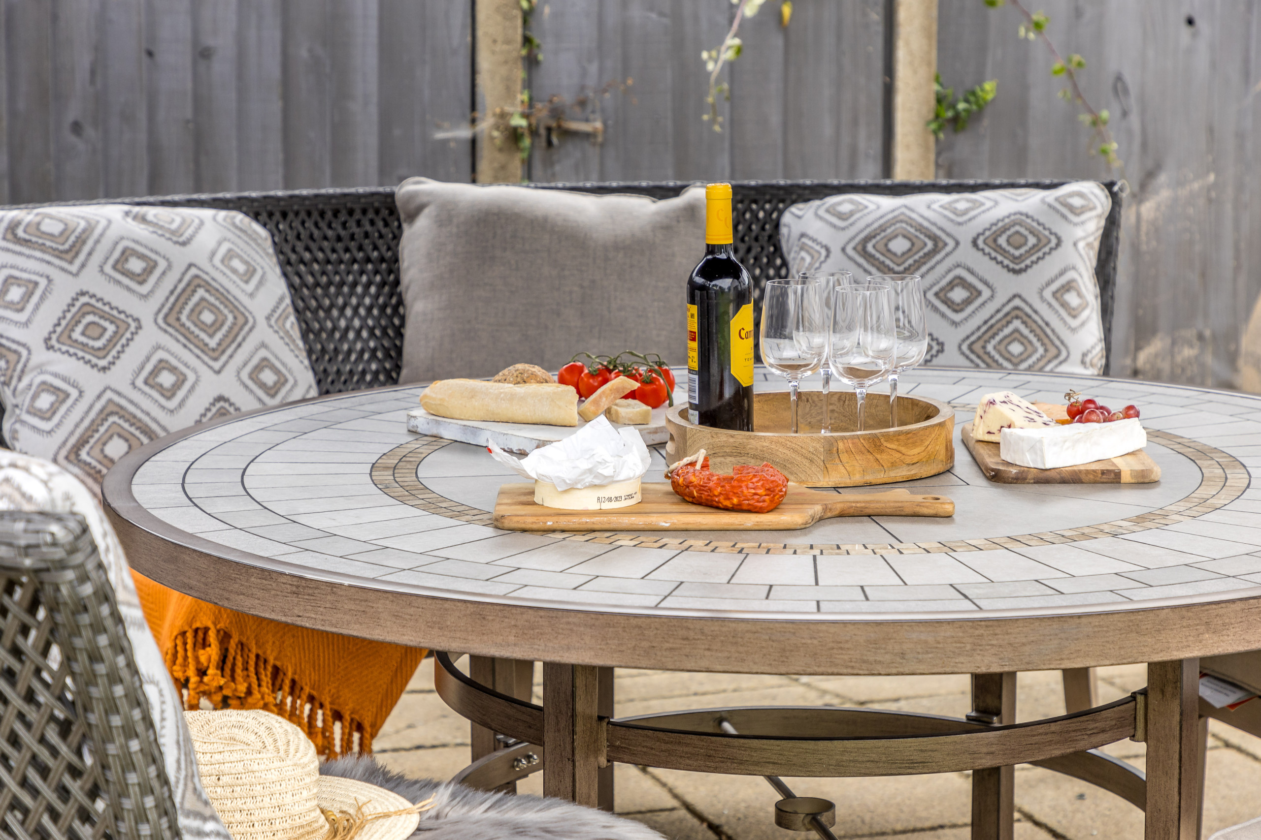 As you approach Greenacre from the sweeping driveway and private front lawn, the welcoming hallway reveals the thoughtfully-designed living and dining zones and kitchen, which seamlessly flow throughout the ground floor. Plush curved sofas invite you to sink in and unwind after a day of exploration. The adjacent dining area also features elegantly curved seating, providing a delightful space at mealtimes. Large bi-fold doors flood the space with natural light, creating a warm and inviting ambience, looking out onto the lawns; and a pleasant seating area protected by a pergola for shade on a hot day or to keep showers at bay. There’s also a snug room (or 5th bedroom), which includes a double sofa bed, large smart TV, electric fire, and comfy chairs.