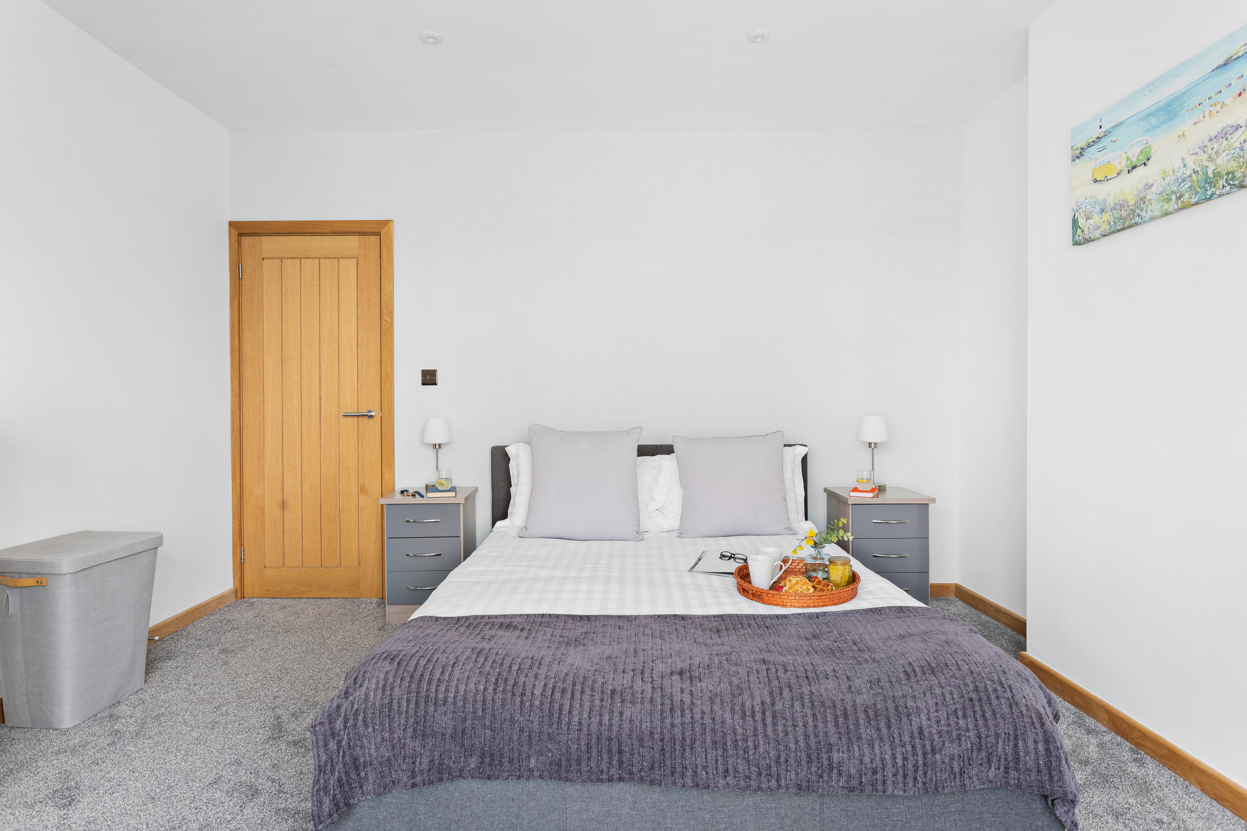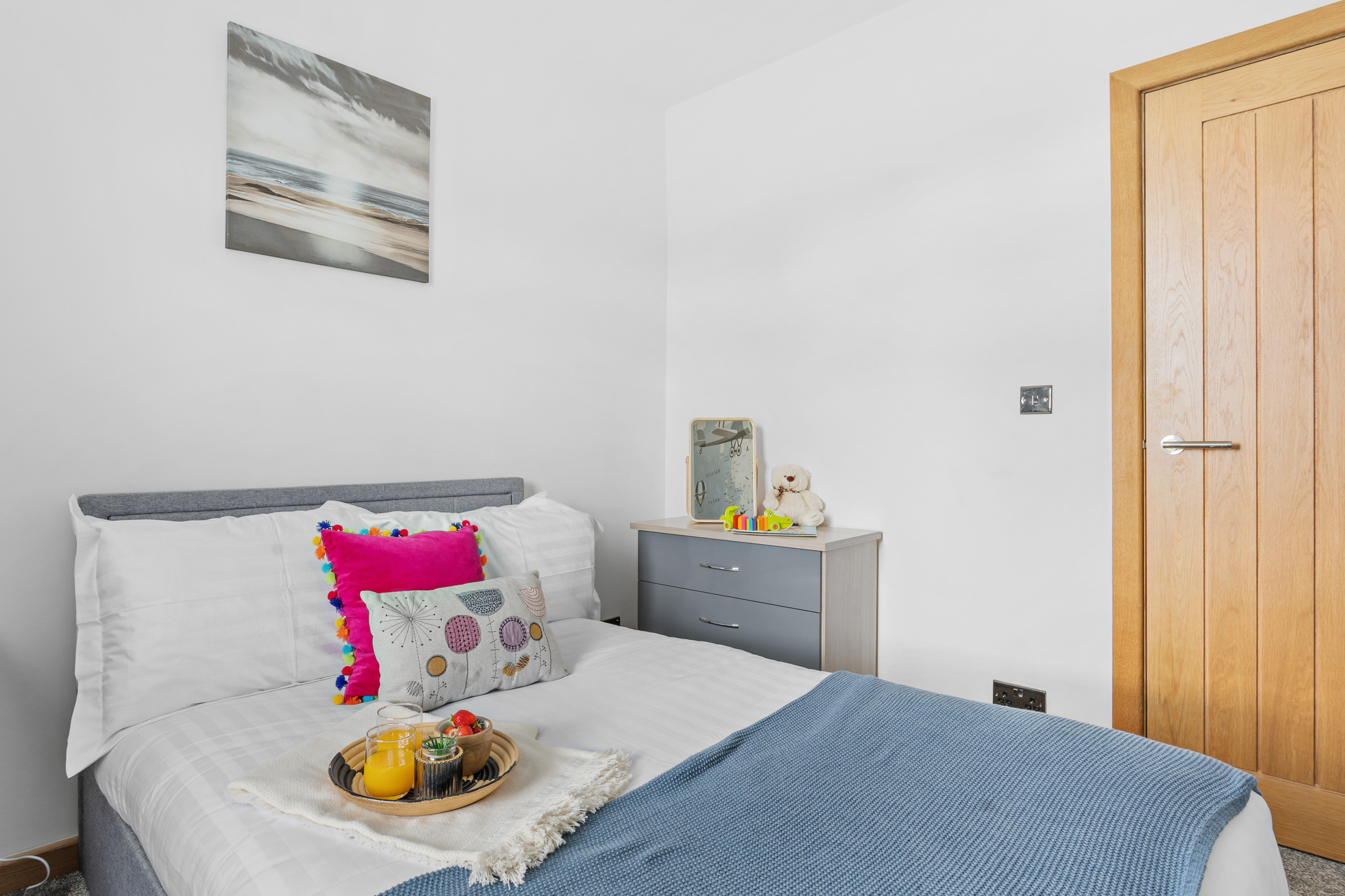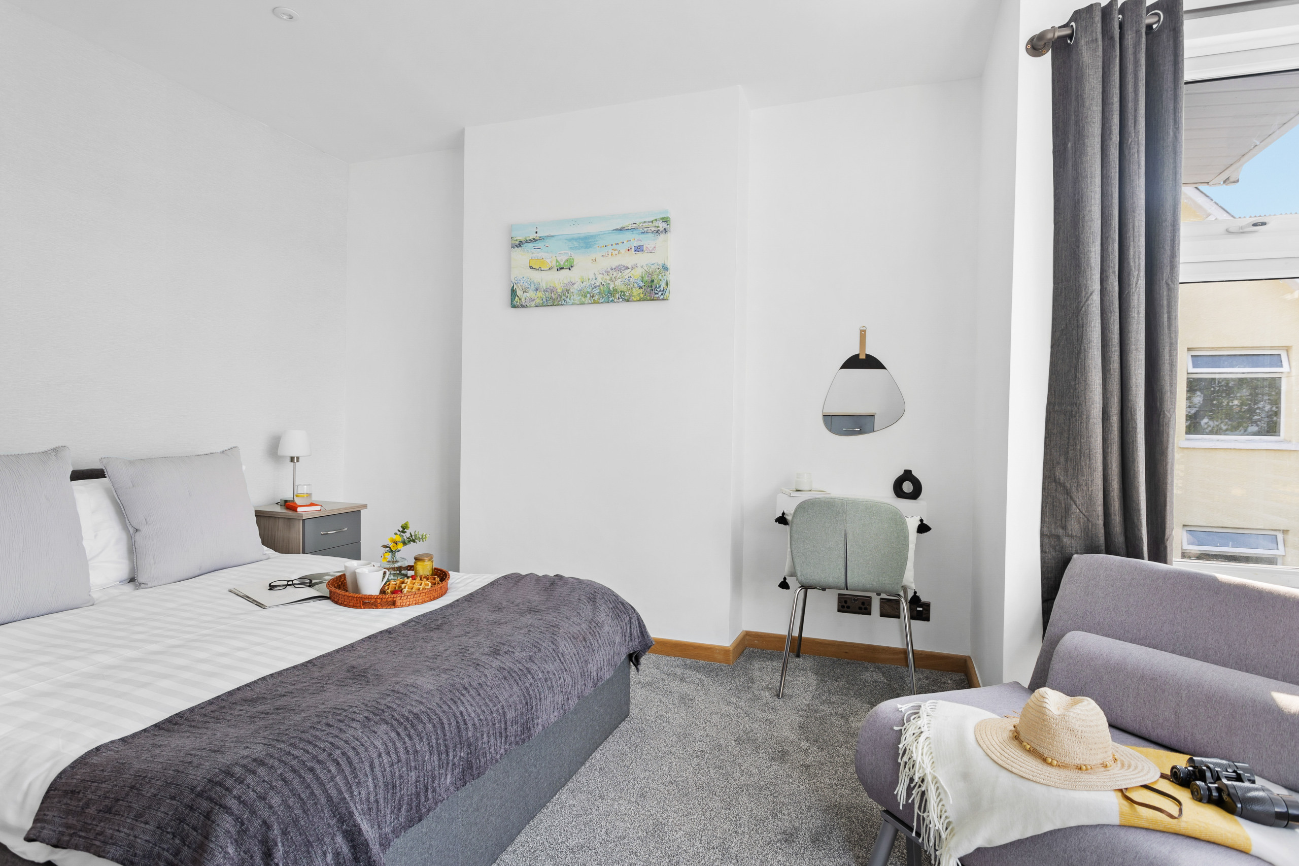 The master has a super king bed, an en-suite wet room with mandarin stone sink and views across to Shaldon. Double doors open onto your glass Juliet balcony to let in the gentle sea breeze. There’s also an HD smart TV including Freesat and pre-loaded movies.
