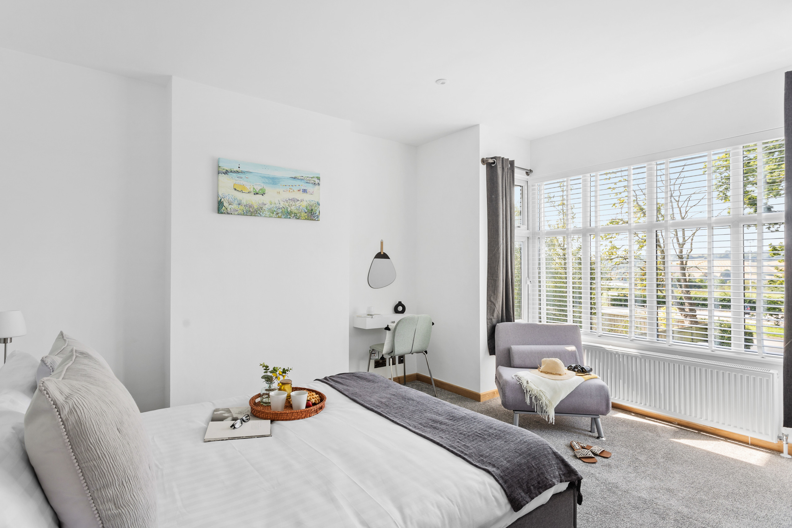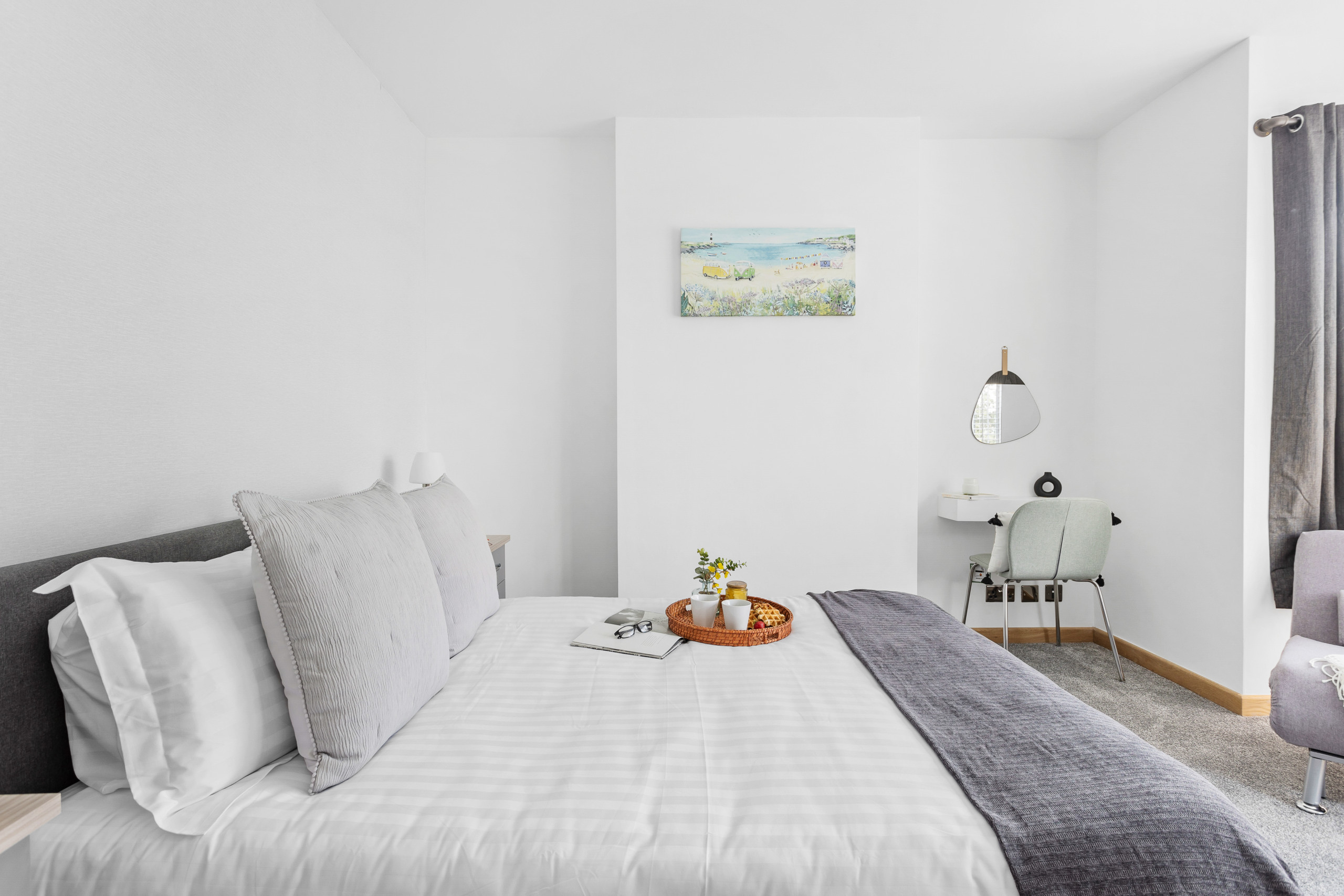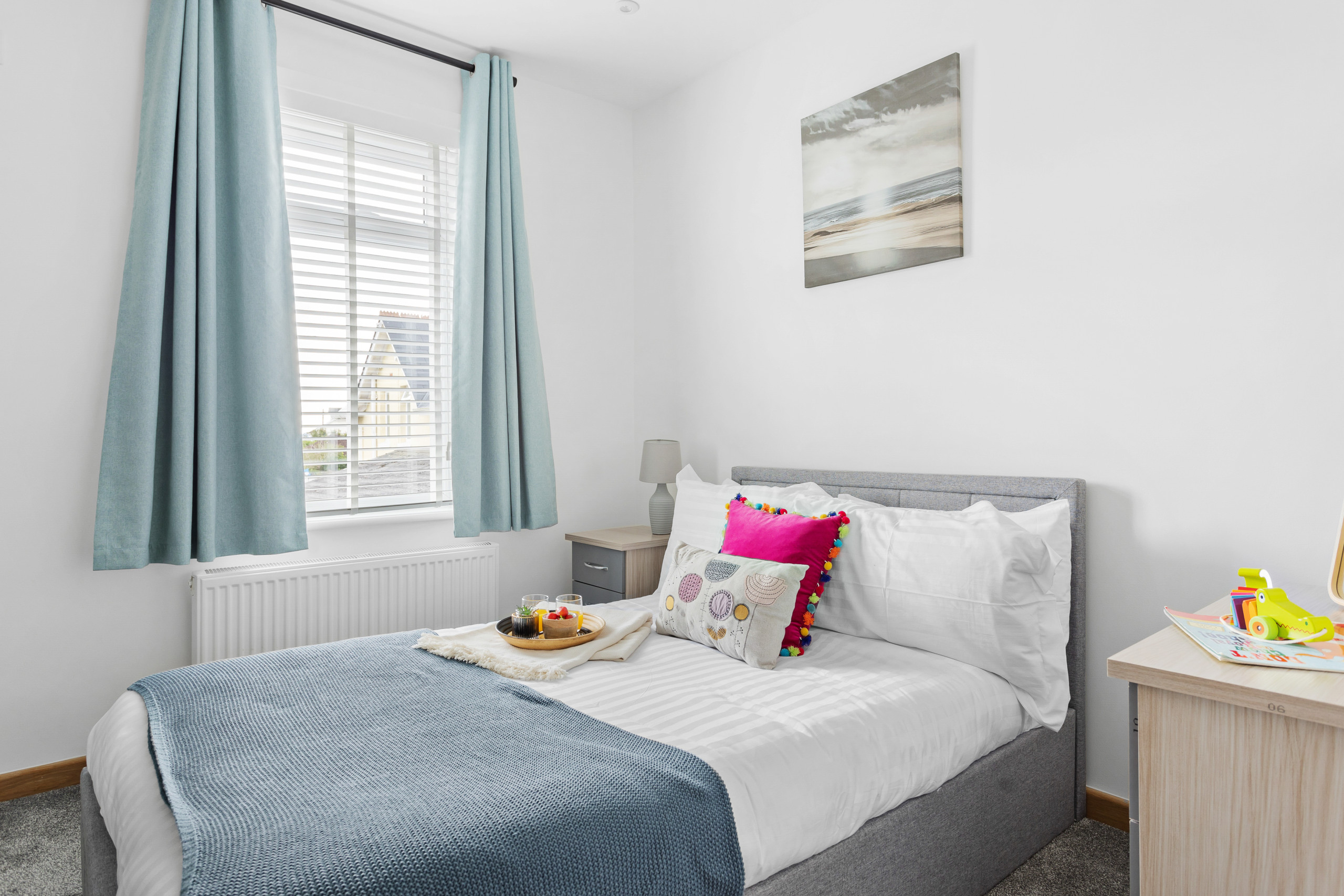 The master has a super king bed, an en-suite wet room with mandarin stone sink and views across to Shaldon. Double doors open onto your glass Juliet balcony to let in the gentle sea breeze. There’s also an HD smart TV including Freesat and pre-loaded movies.