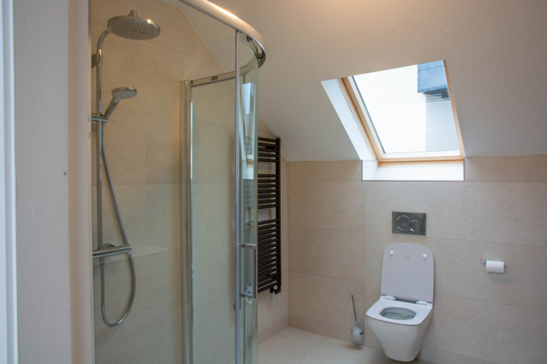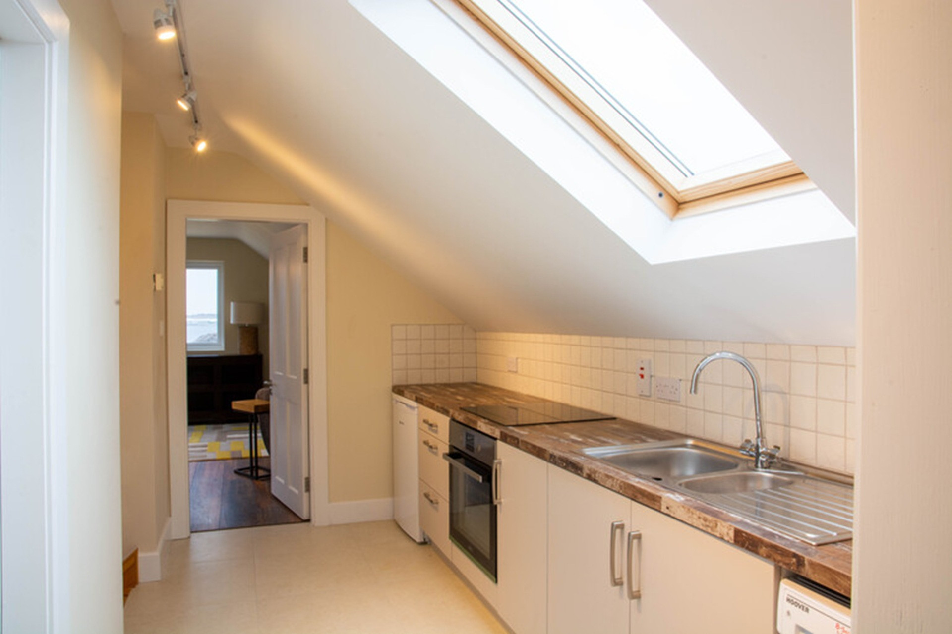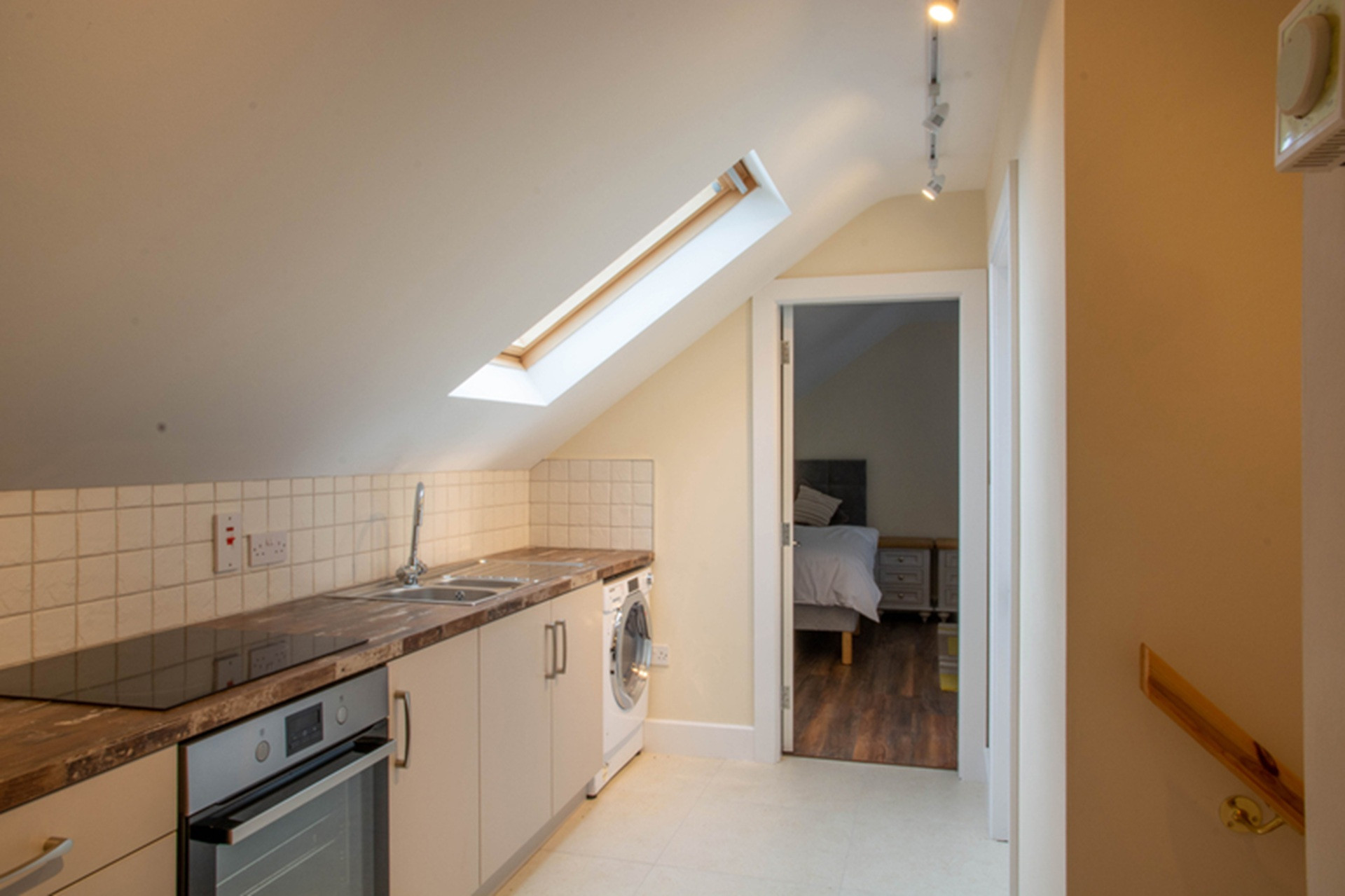 Beside it, is the only bedroom on this level, with a double bed and generous wardrobe space.