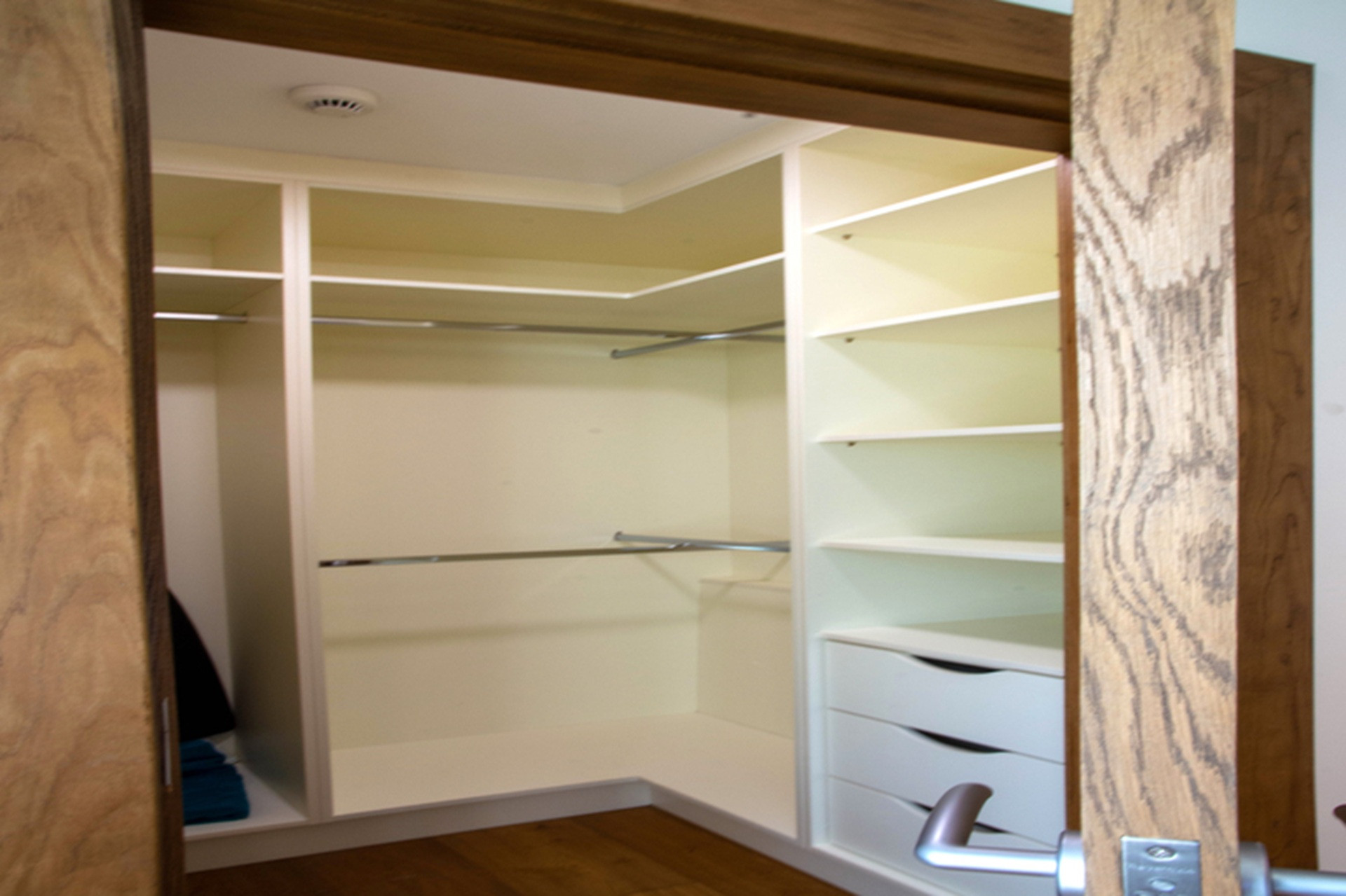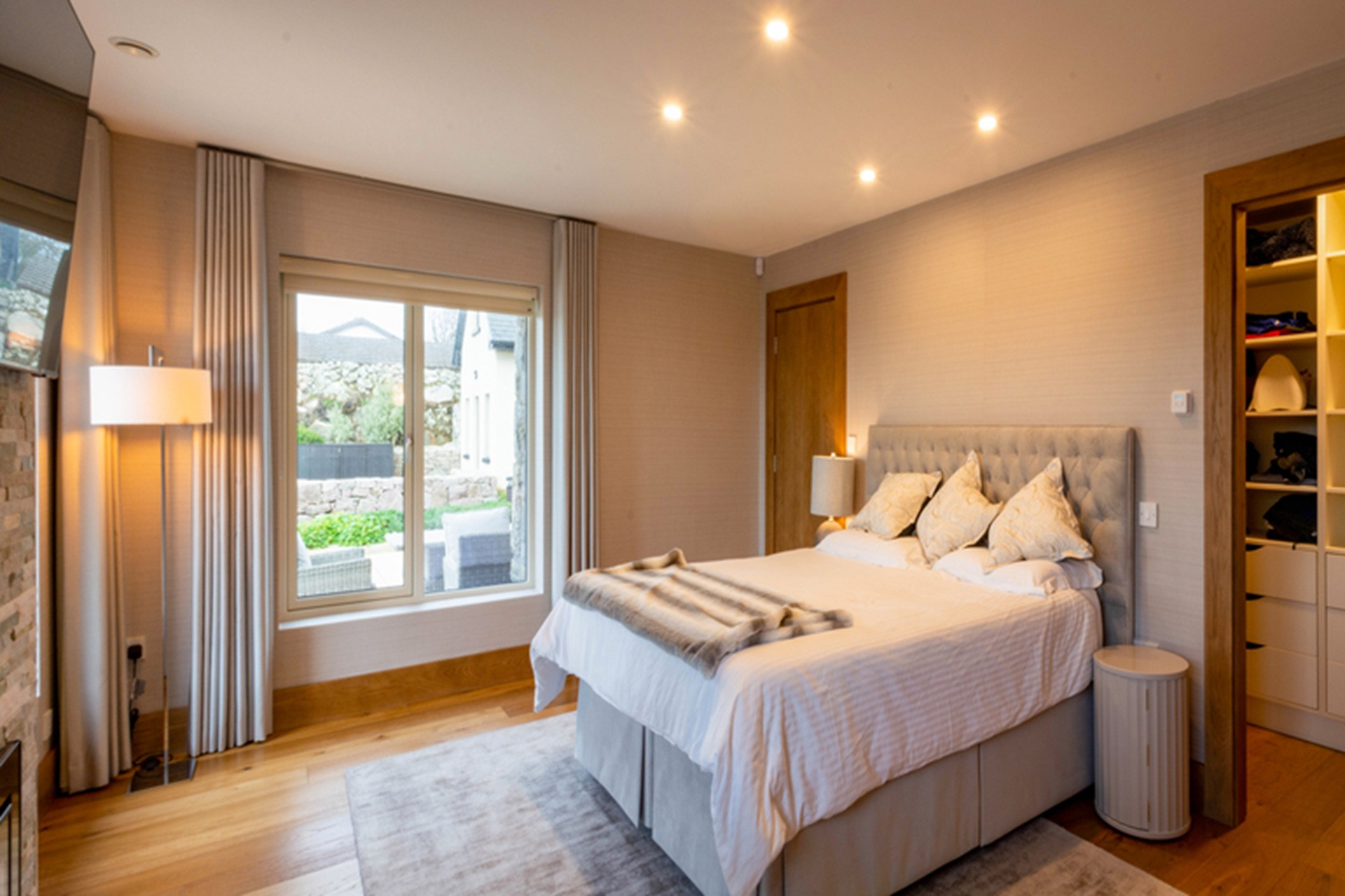 The elegant master bedroom lies at the end of one. With windows in two walls, it has a generous walk-in wardrobe and an ensuite shower room.