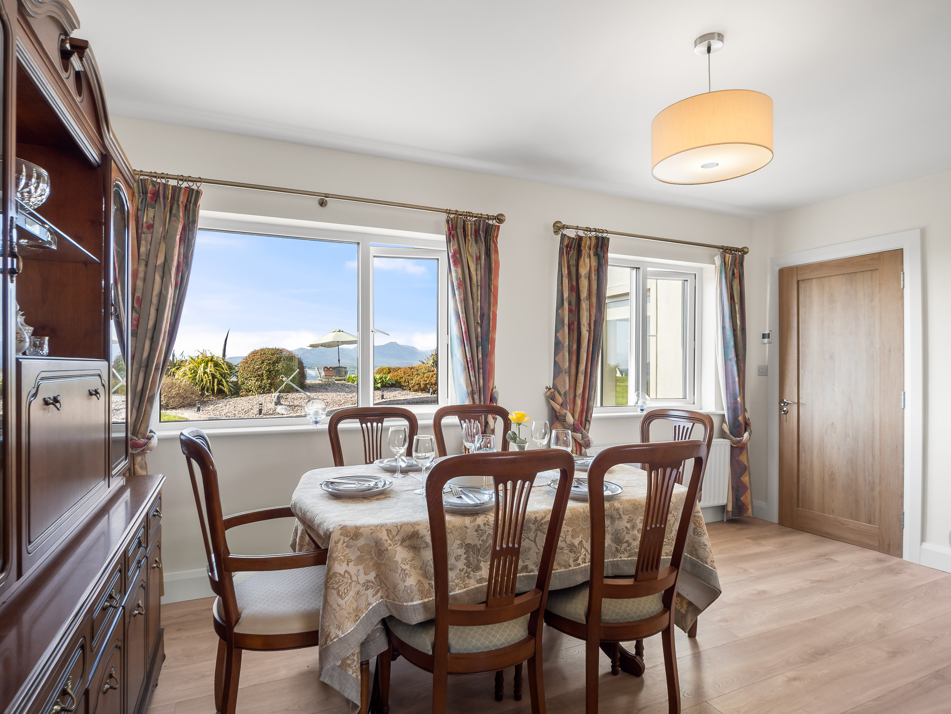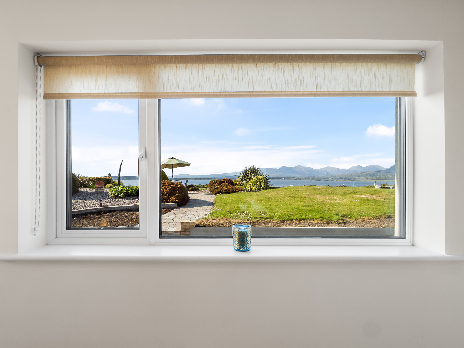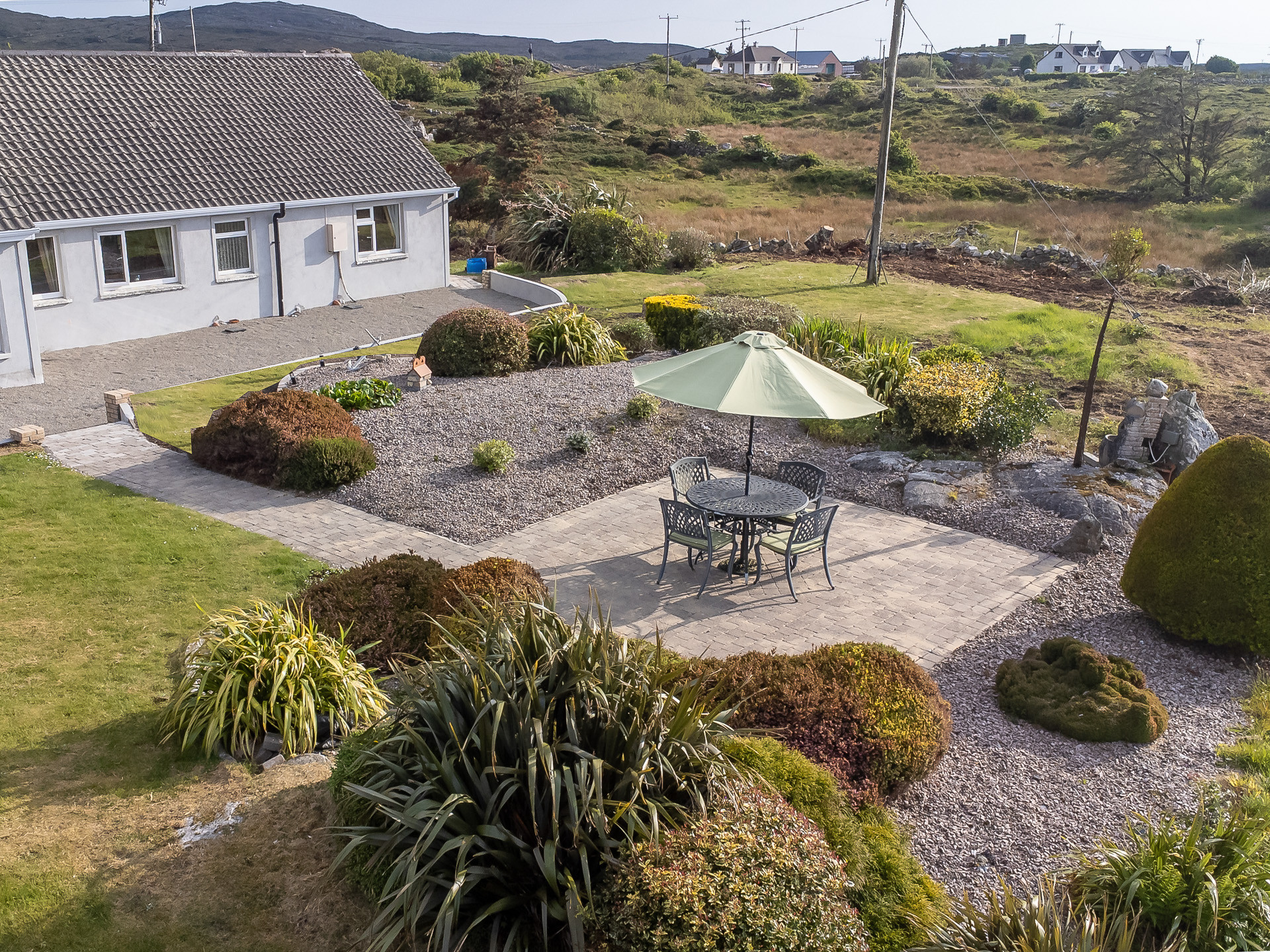 There is a private patio area at the rear of the property offering sweeping, panoramic views of the stunning Bertraghboy Bay and the Twelve Bens. This is suitable for dining in good weather (garden furniture provided).