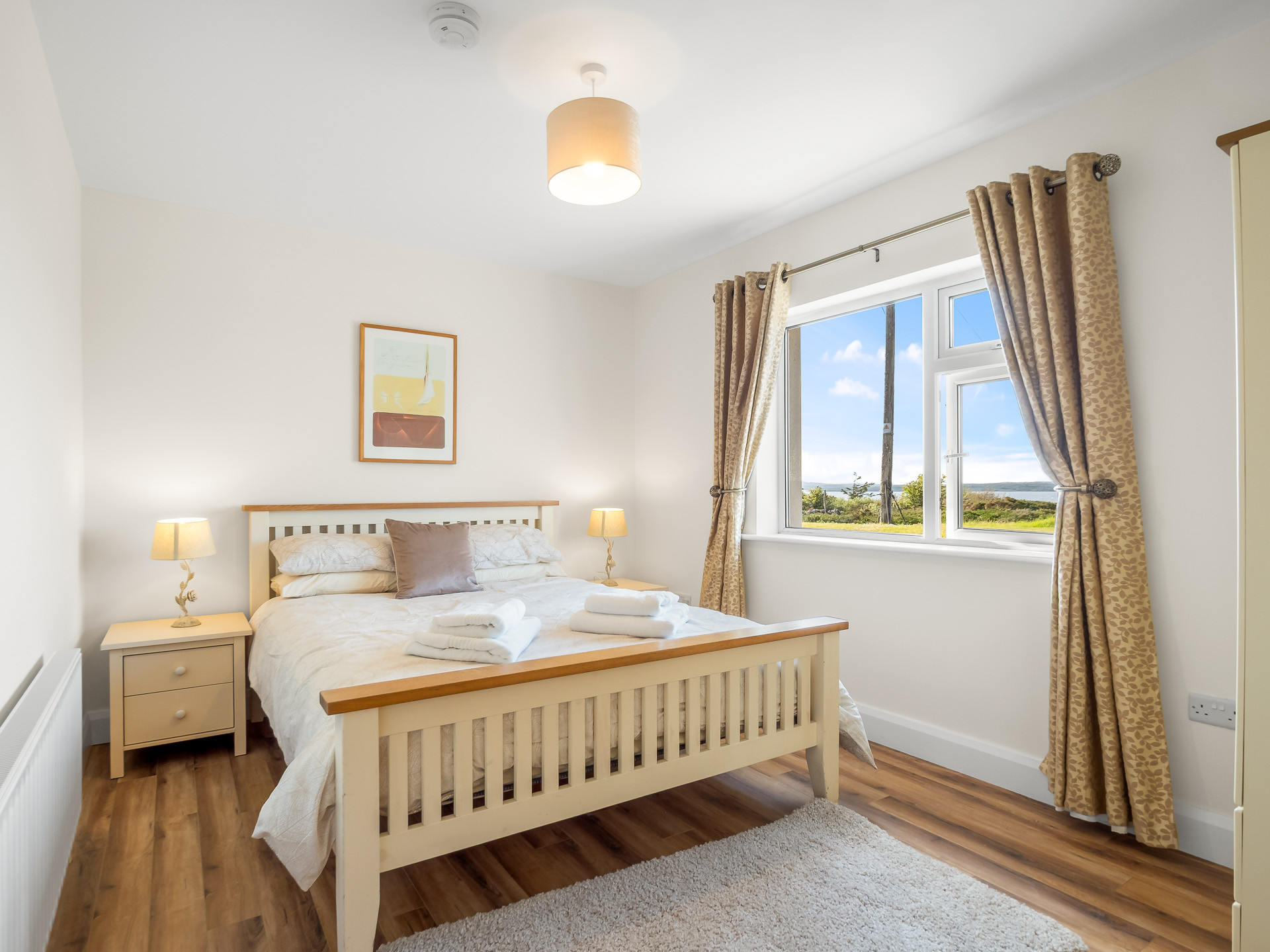 Features a king-size bed and wardrobe. Wooden flooring. Beautiful sea views.