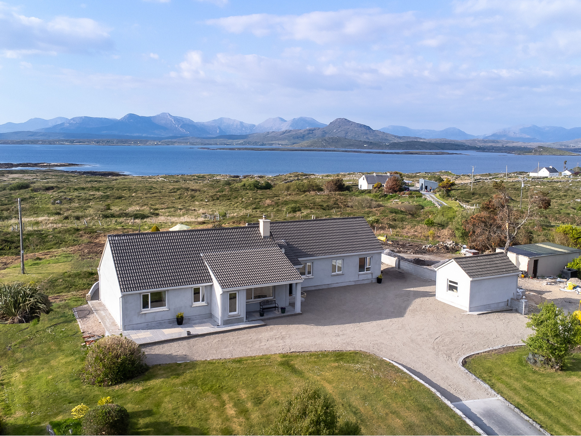 This beautifully renovated and much-loved family home is located in a highly sought-after area along the scenic Wild Atlantic Way on the edge of the Atlantic Ocean. The property offers exquisite views of The Twelve Bens in a tranquil and serene setting.
