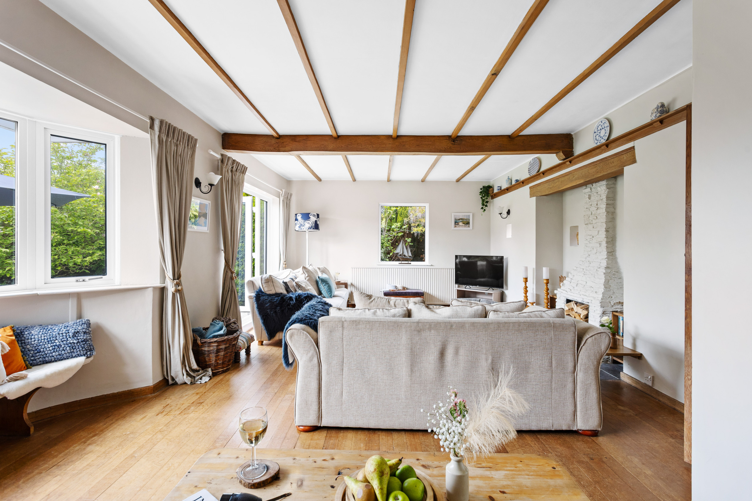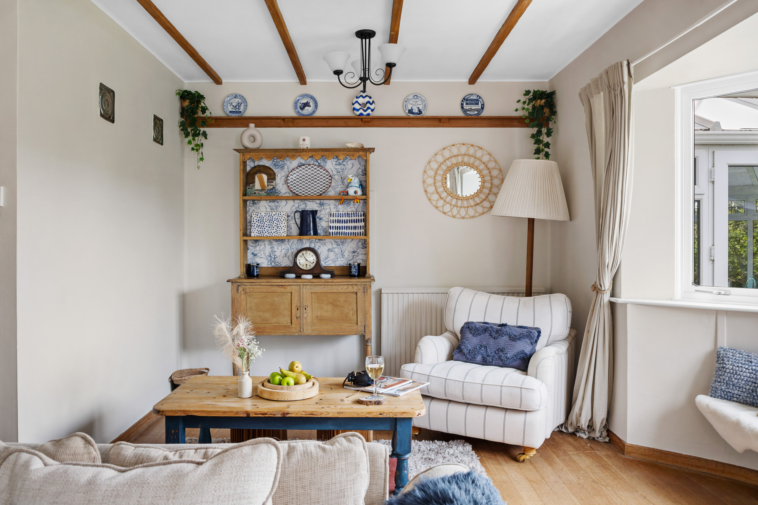 Step into Blue Haze and you'll be welcomed by a spacious, light-filled living room, with French doors opening out to the south-facing garden. One end of the room features two plush sofas, perfect for curling up with a film on the Smart TV, while the other end creates a snug nook for reading or playing games, complete with a bay window seat overlooking the garden.