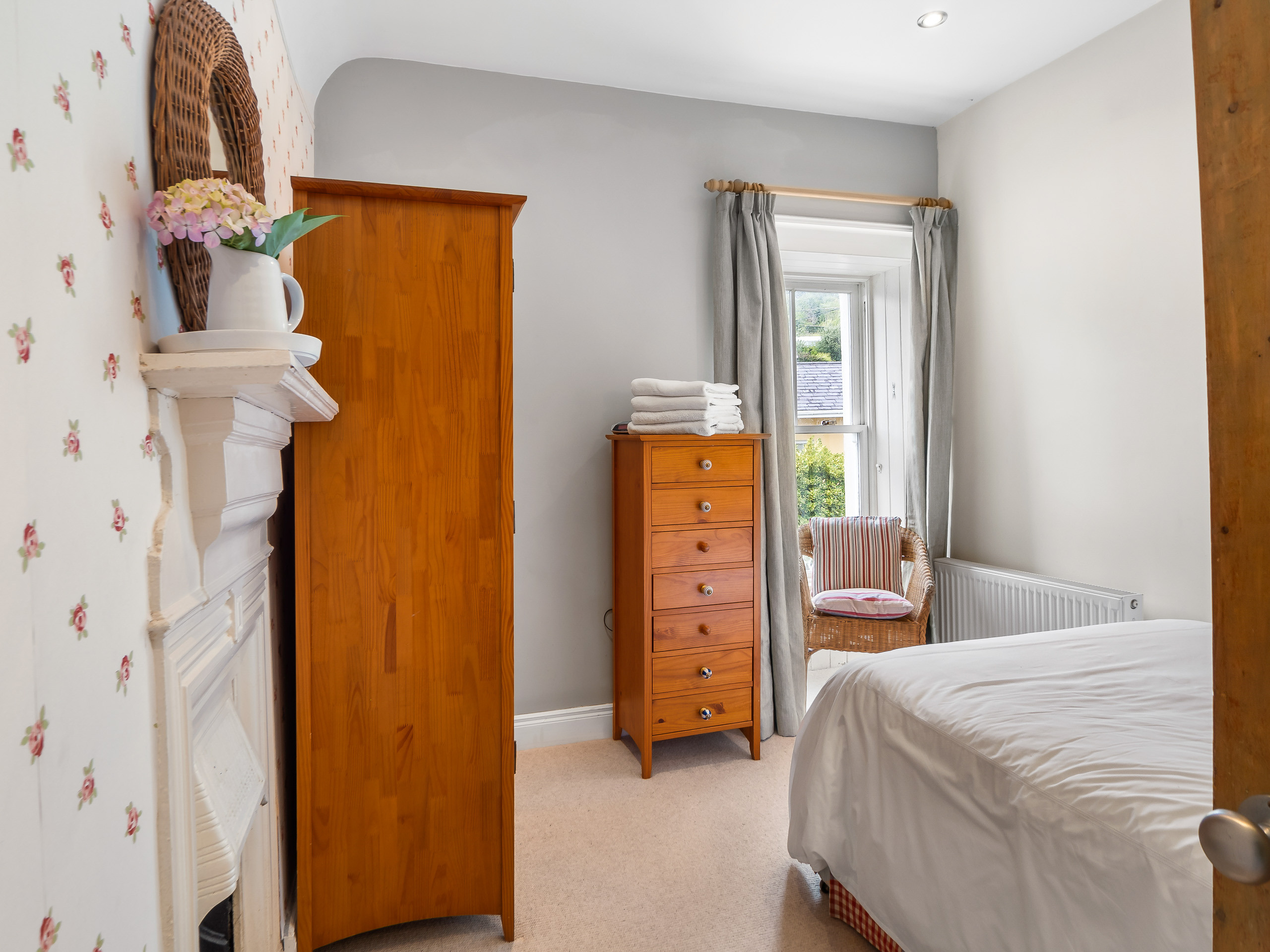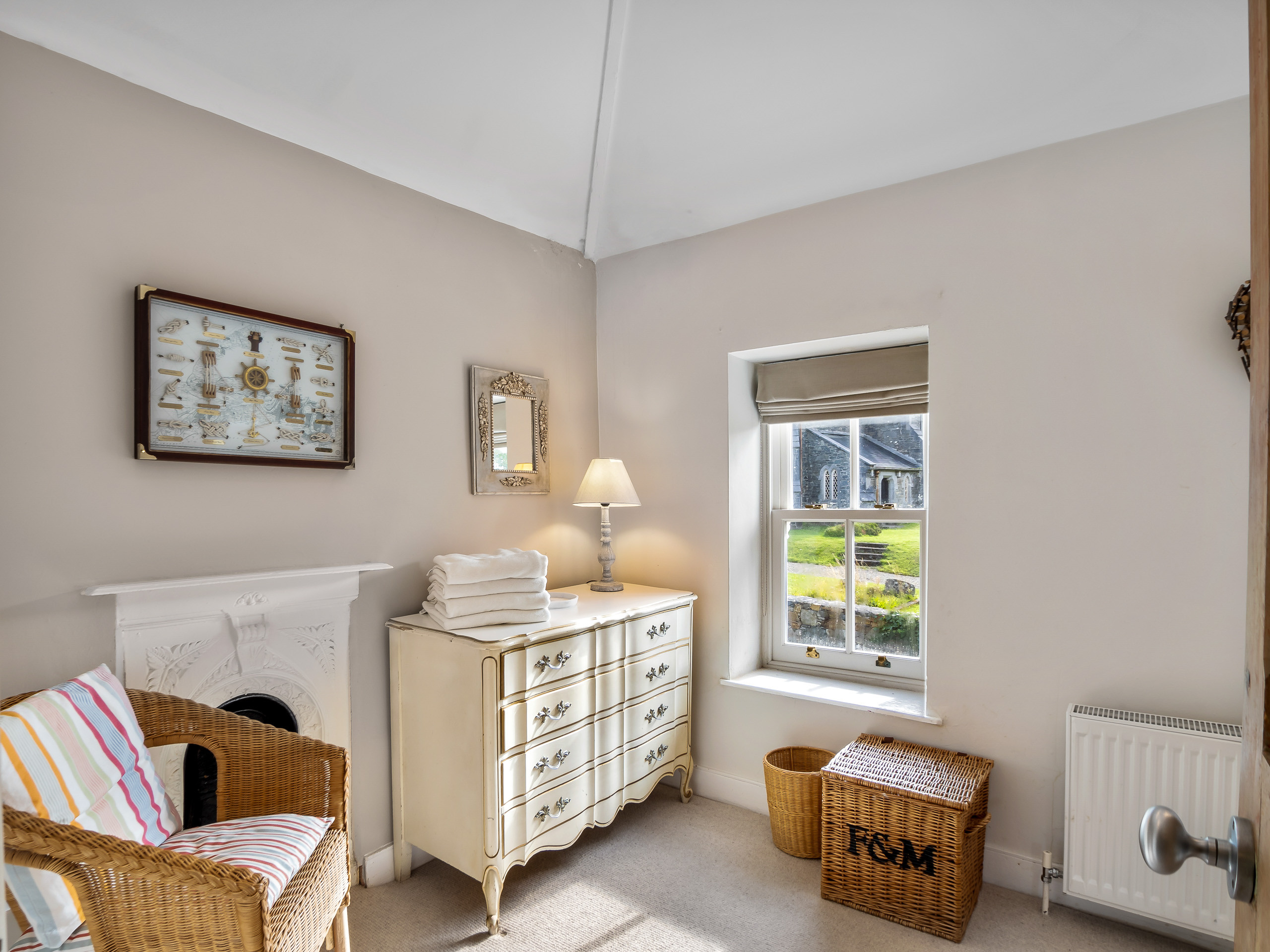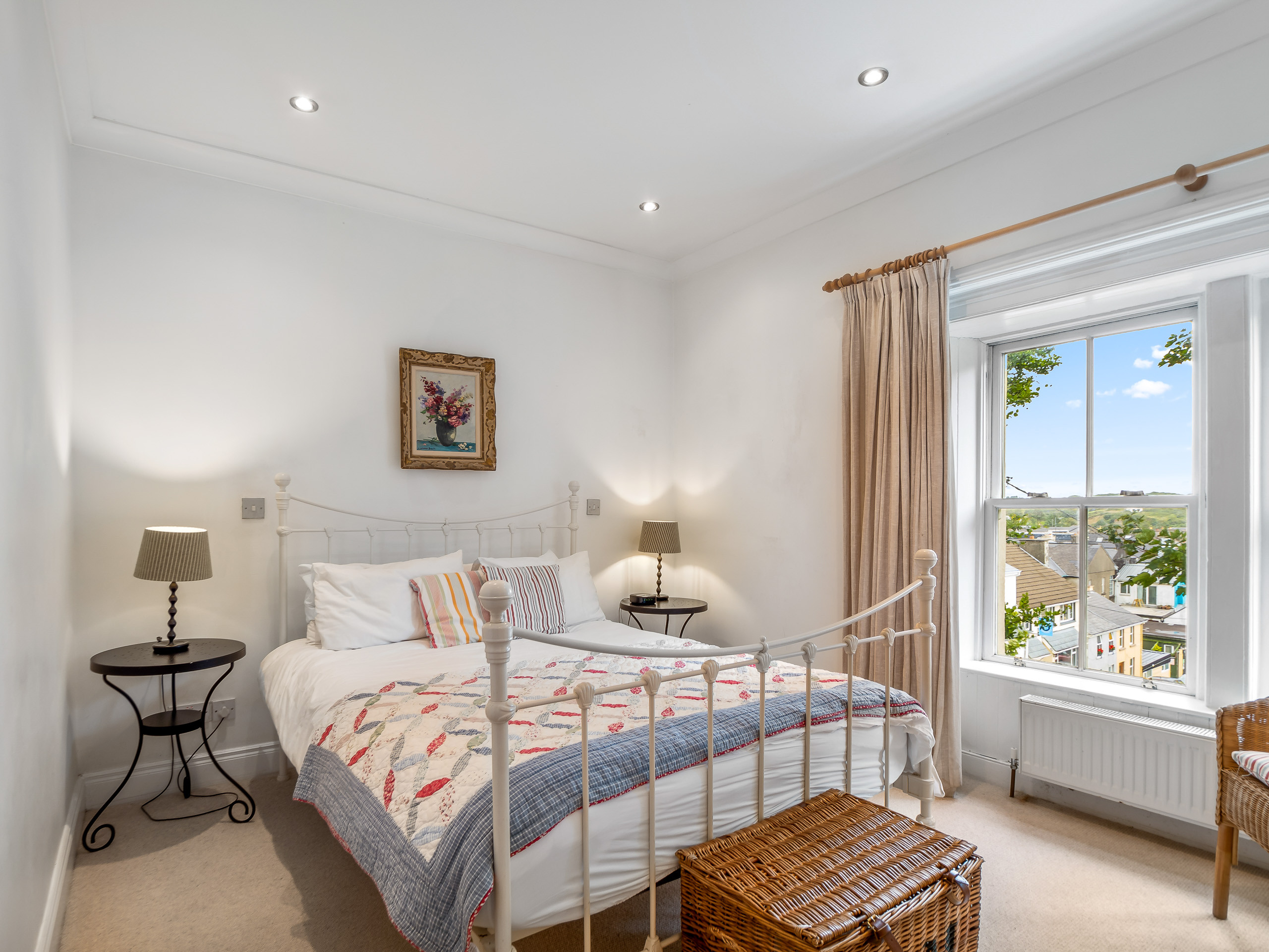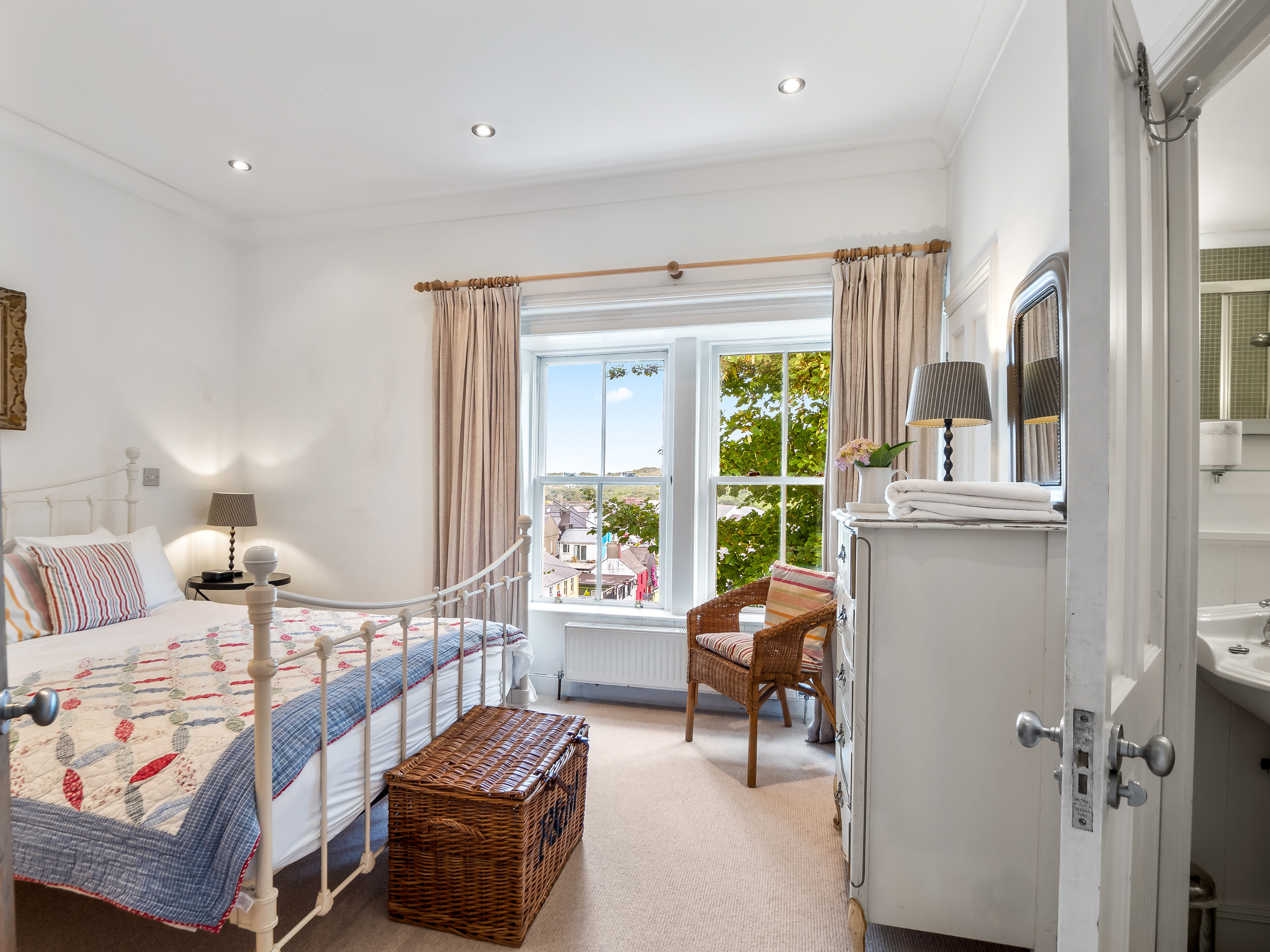 Bedroom 4: King-size bed, 2 free-standing wardrobes, chest of drawers, window overlooking the side of the property with stunning views over the front garden and Kingstown Bay.