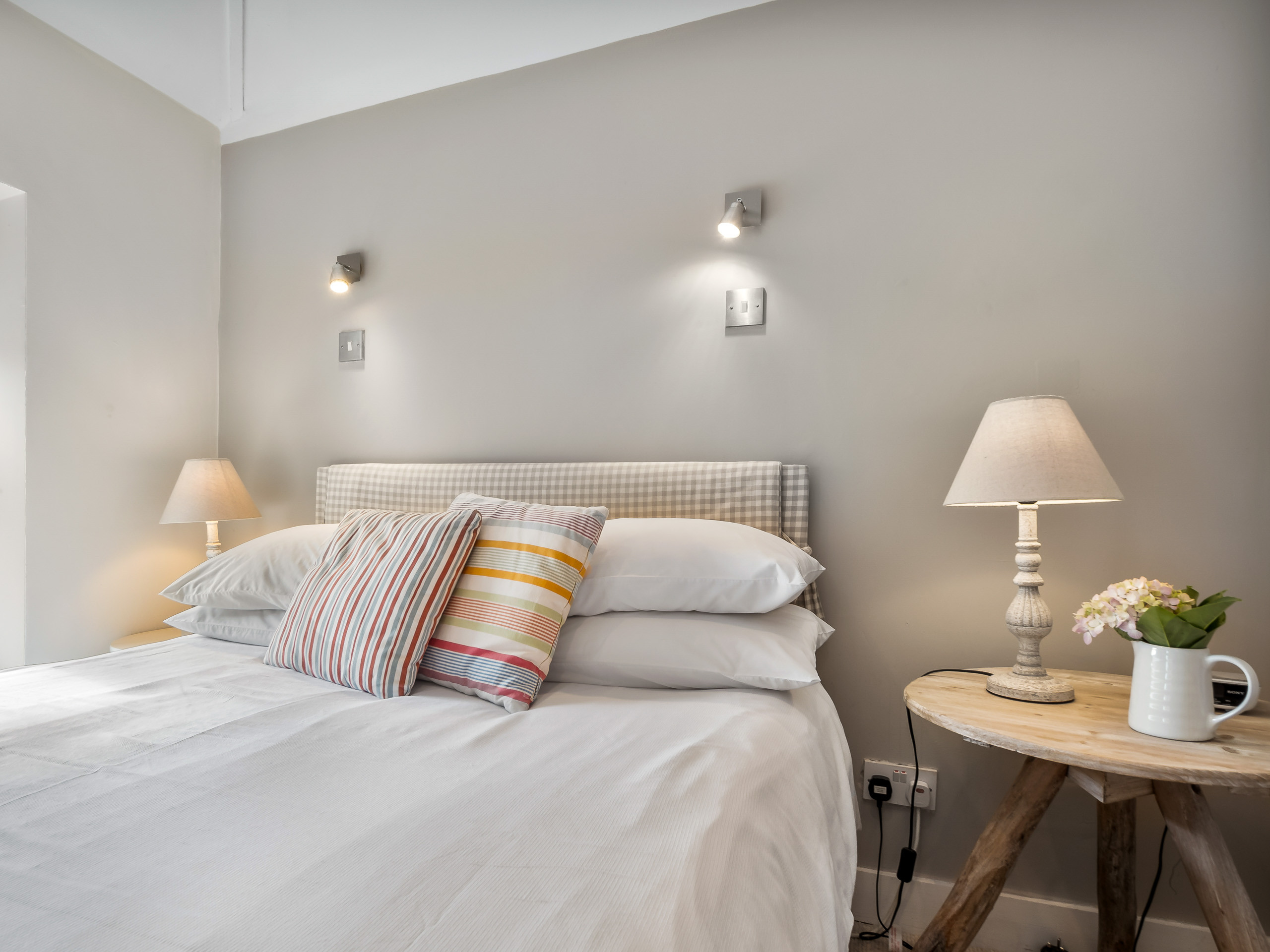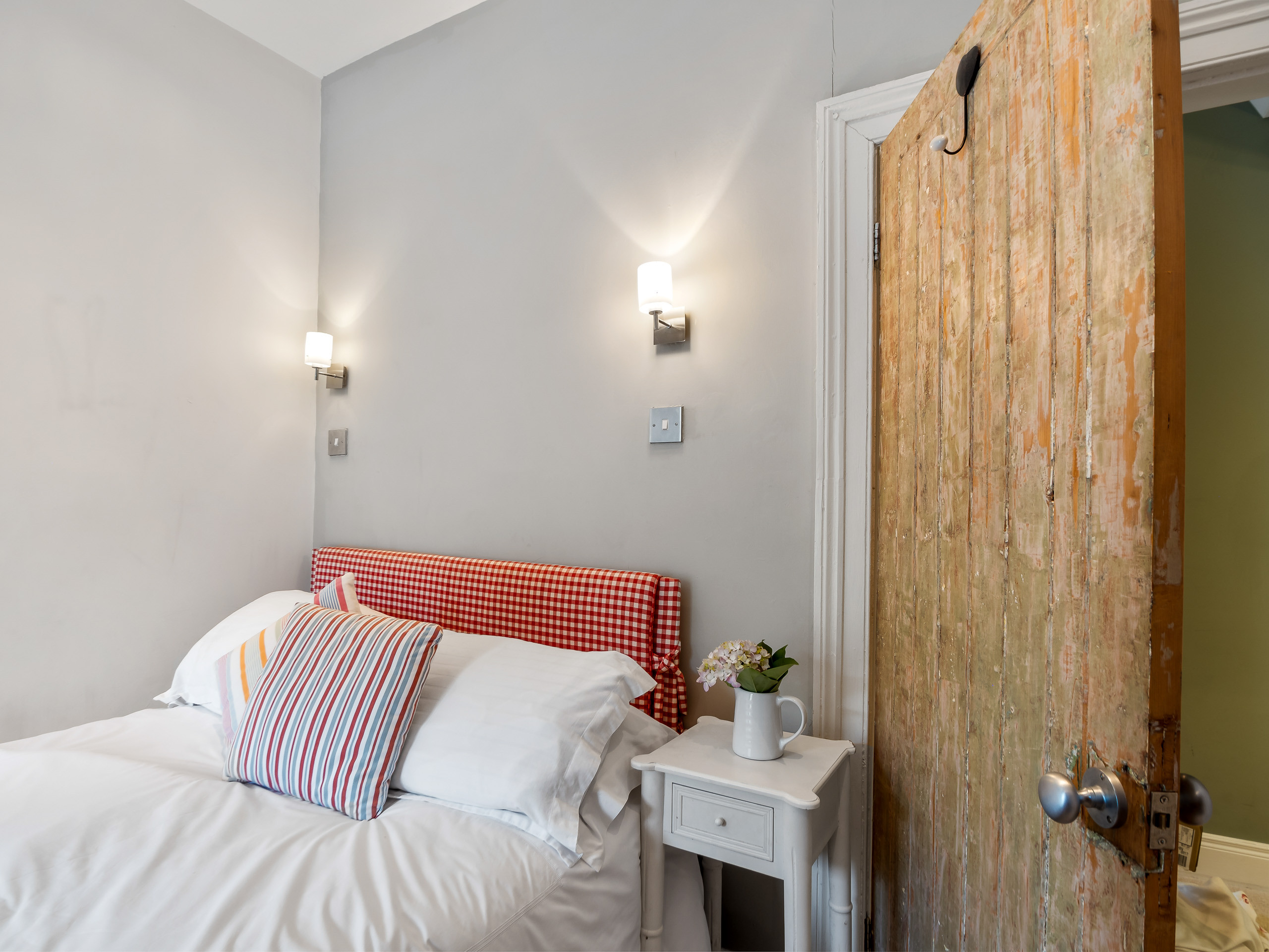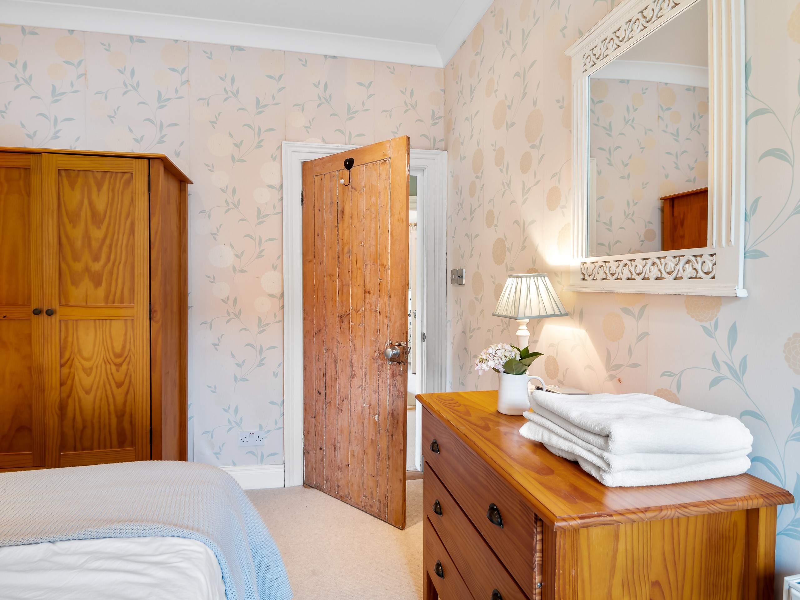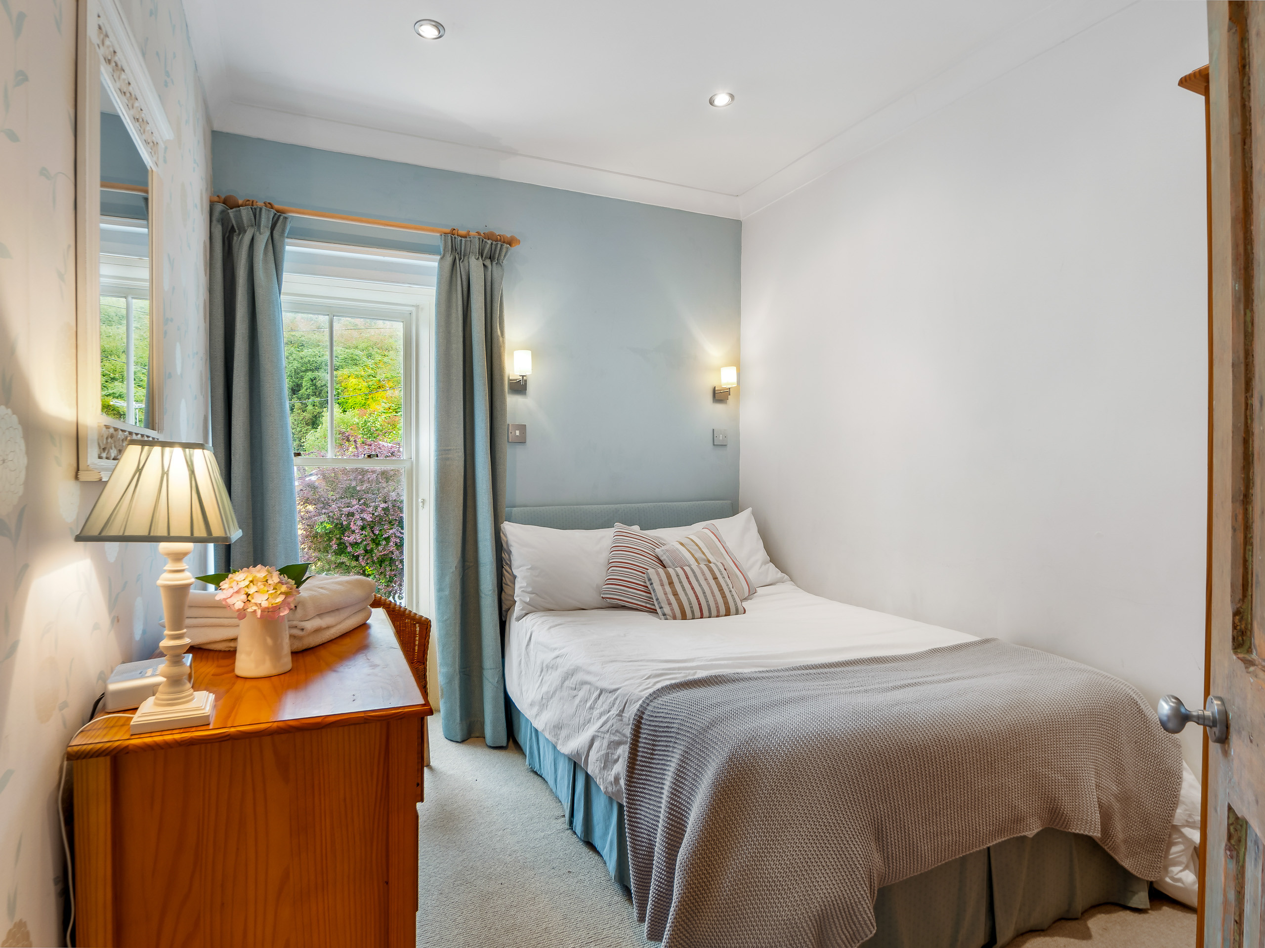 Bedroom 4: King-size bed, 2 free-standing wardrobes, chest of drawers, window overlooking the side of the property with stunning views over the front garden and Kingstown Bay.