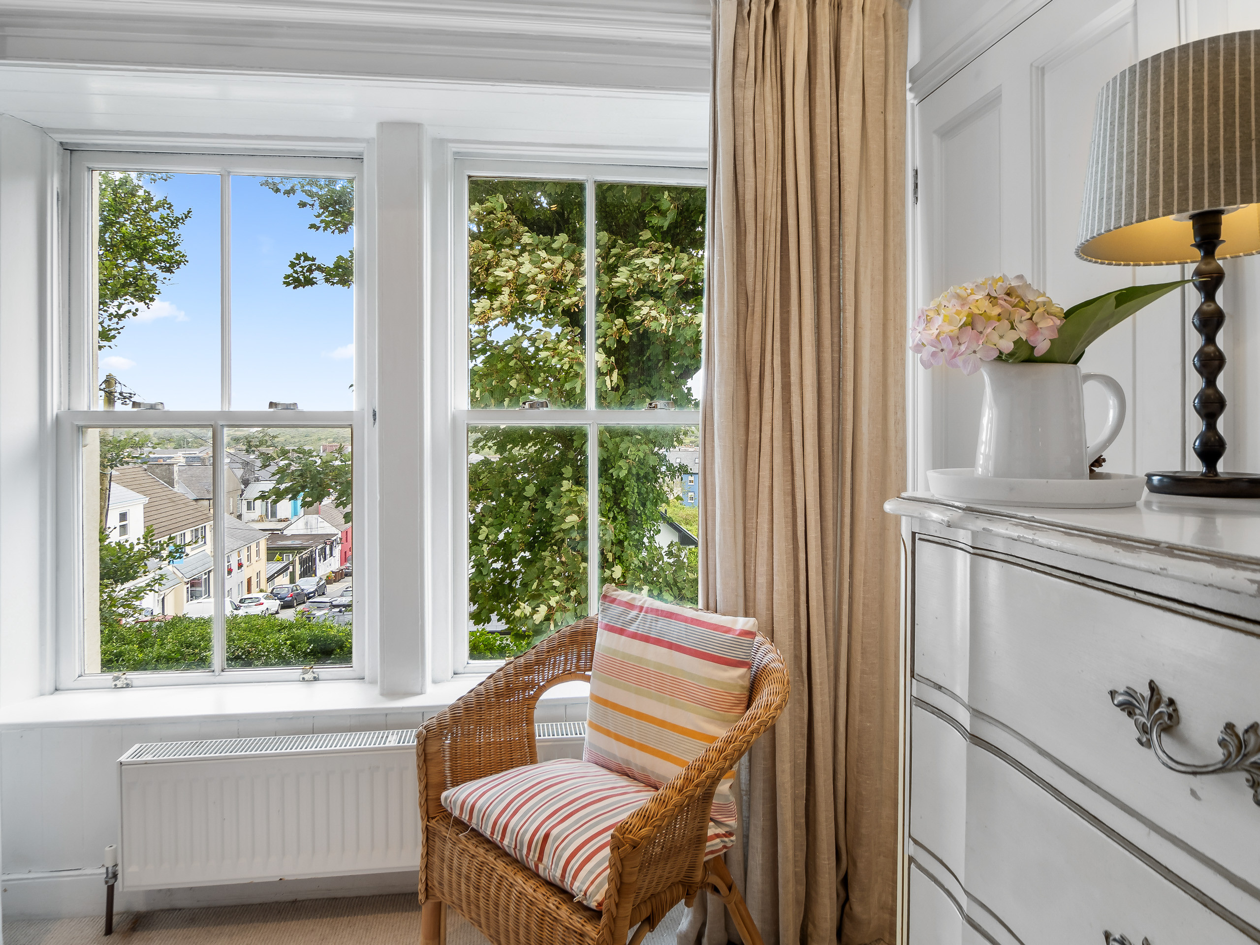 Bedroom 3: King-size bed, free-standing wardrobe, dressing table with mirror, 2 large windows overlooking the front and side of the property. Stunning views over Kingstown bay.