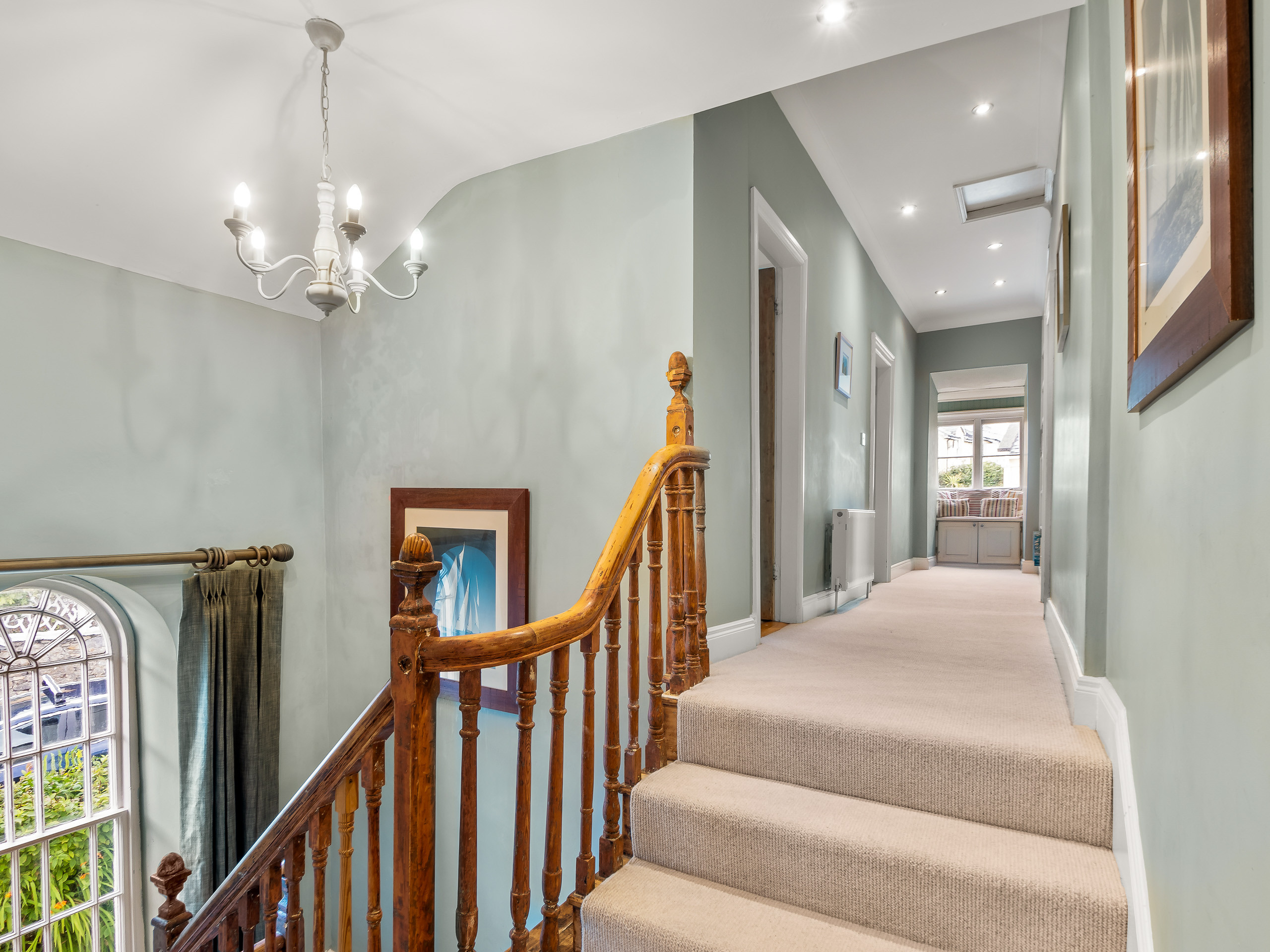 The stairs lead to the first-floor landing, door leads to a double bedroom with an ensuite bathroom and a separate family bathroom.
