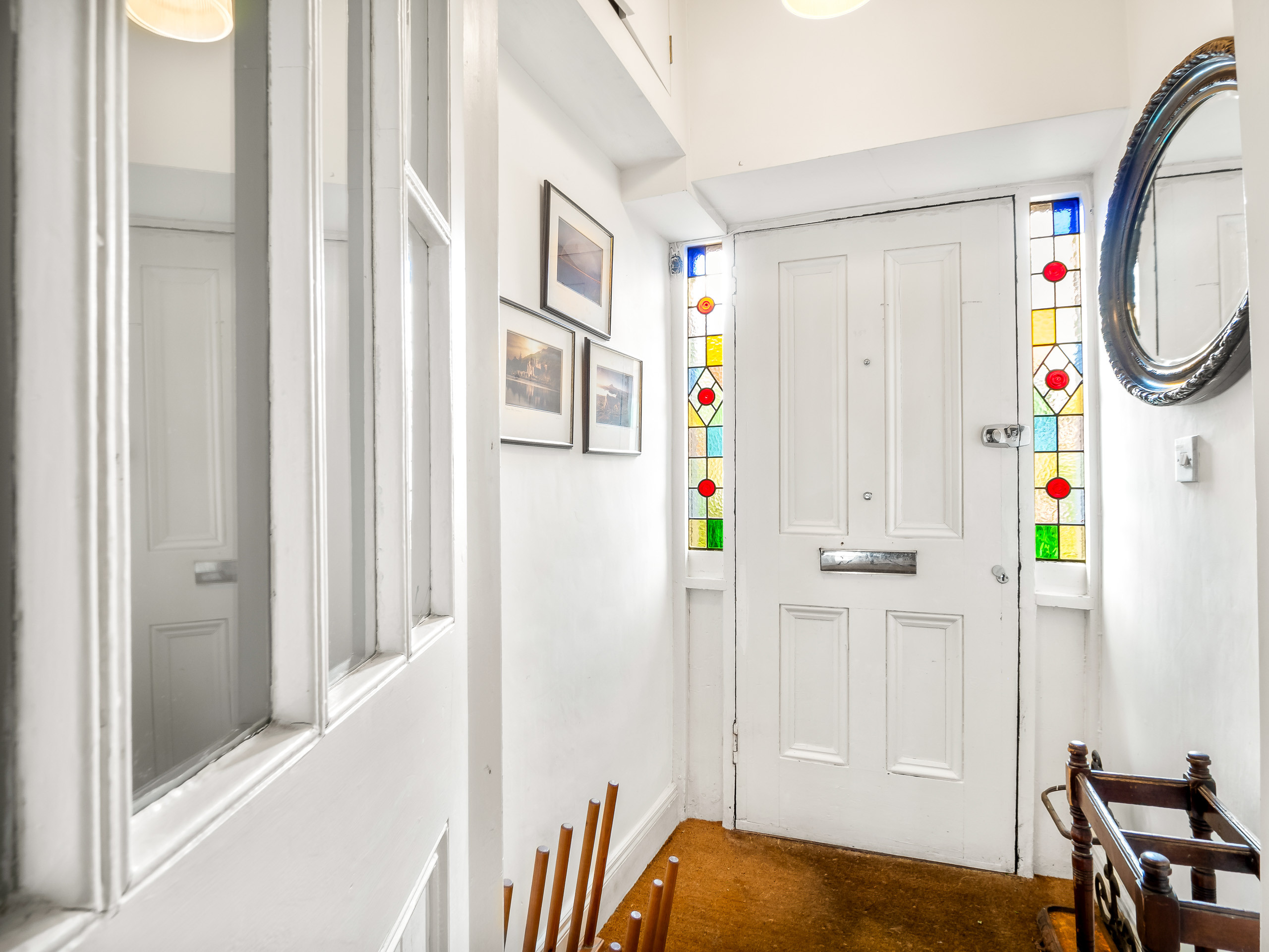 You are immediately struck by the grandeur of the hallway with an impressive staircase, high ceilings and tiled flooring. Doors leading to: