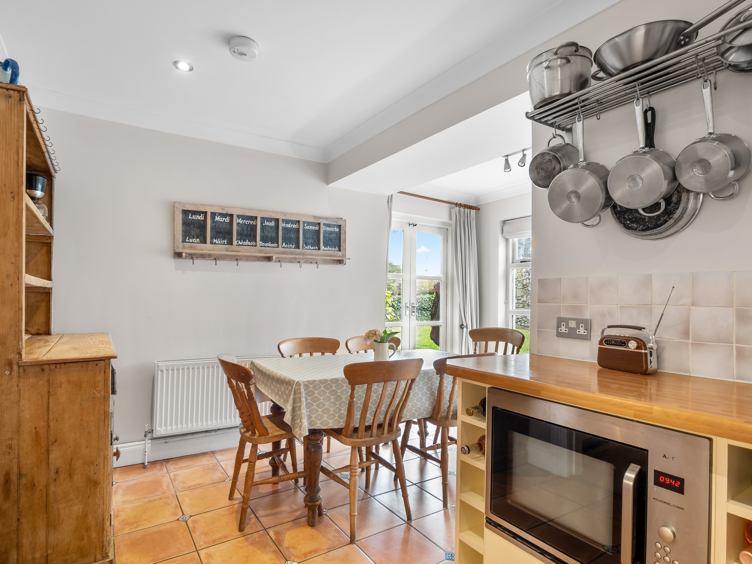 There are French doors leading to the garden and decked area, ideal for dining Al-Fresco, there is a BBQ and outdoor table for 4.