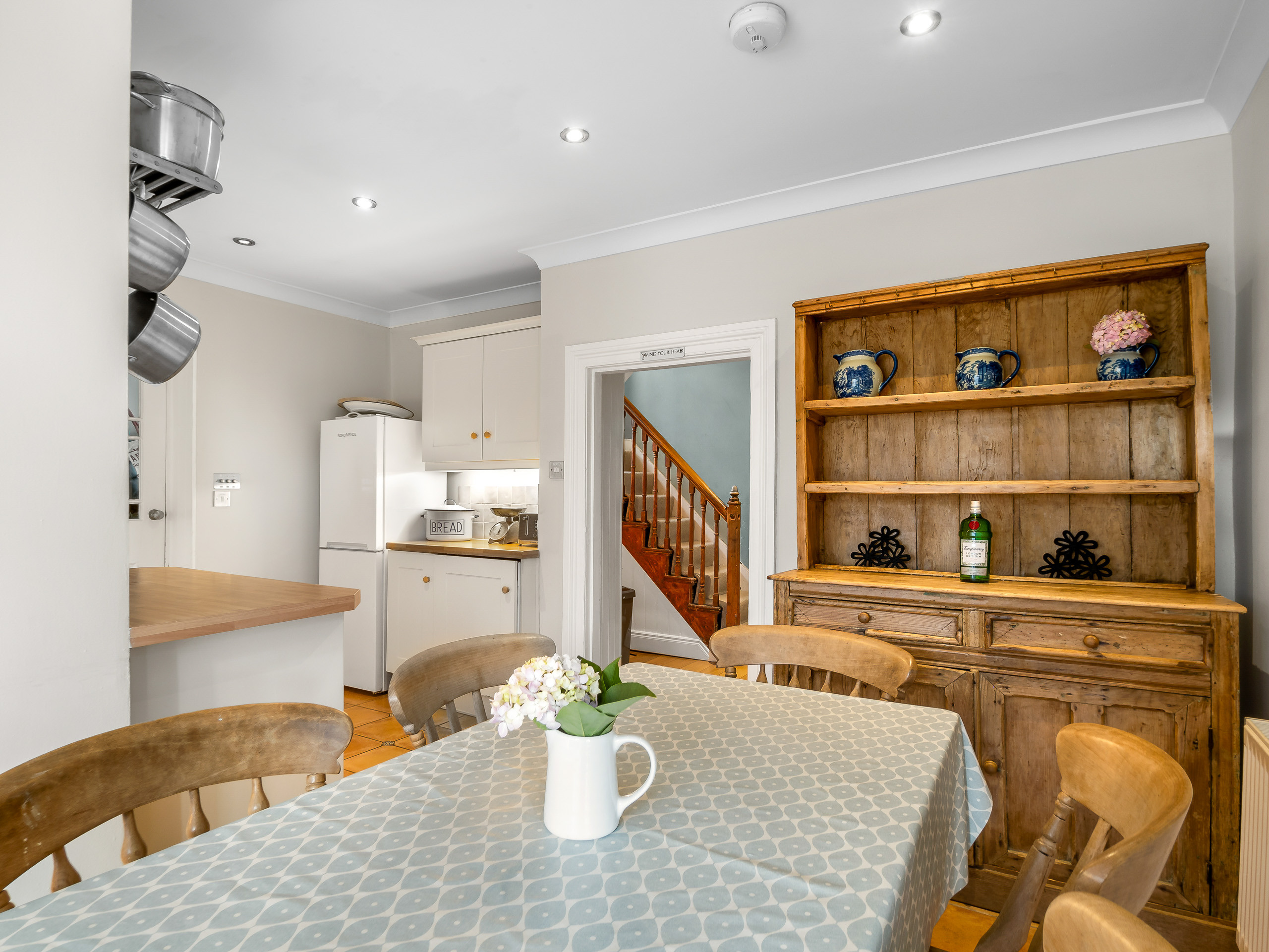 The large kitchen has everything one would require, there are ample kitchen utensils for the cooking enthusiasts. A perfect setting for entertaining. Fully fitted with a dishwasher, gas oven and hob, extractor fan, 2 fridges, and freezer. There is a dining table seating up to 6 guests. Door to a pantry.