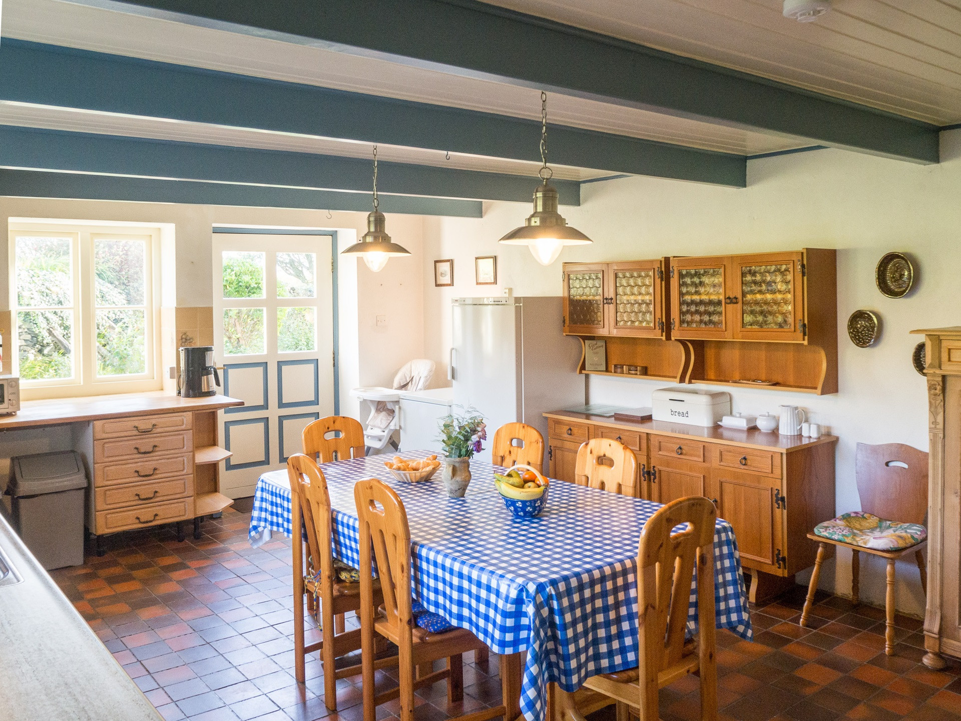The large kitchen has everything one would require, there are ample kitchen utensils for the cooking enthusiasts. A perfect setting for entertaining. Fully fitted with a dishwasher, gas oven and hob, extractor fan, 2 fridges, and freezer. There is a dining table seating up to 6 guests. Door to a pantry.