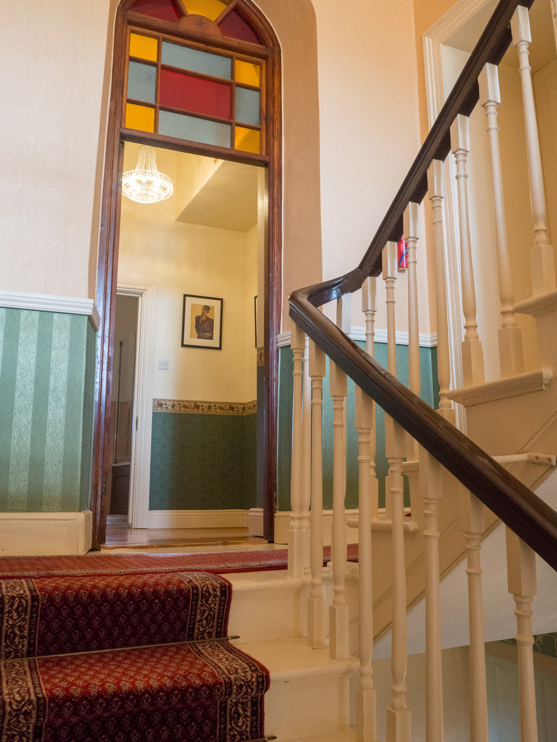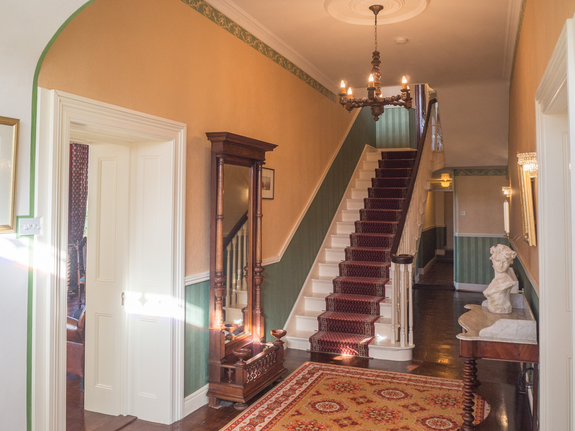 You are immediately struck by the grandeur of the hallway with an impressive staircase, high ceilings and tiled flooring. Doors leading to:
