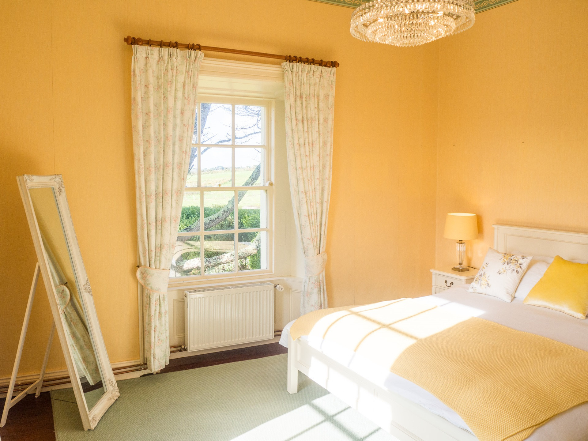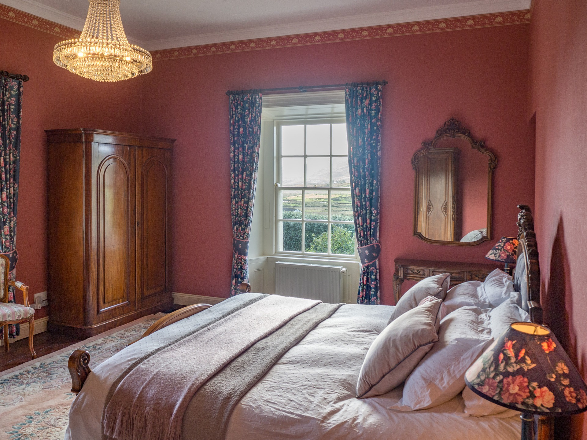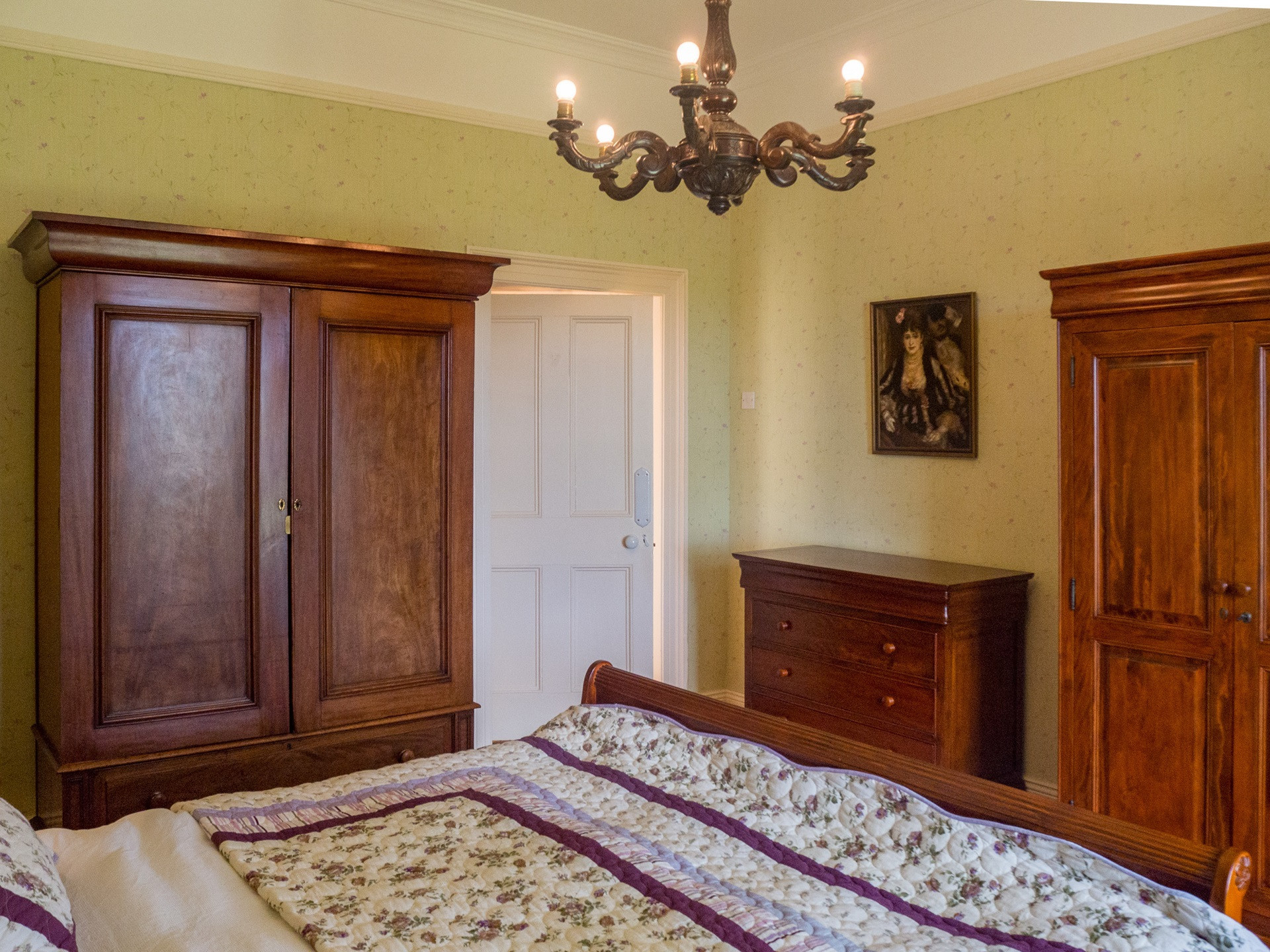 Bedroom 4: King-size bed, 2 free-standing wardrobes, chest of drawers, window overlooking the side of the property with stunning views over the front garden and Kingstown Bay.