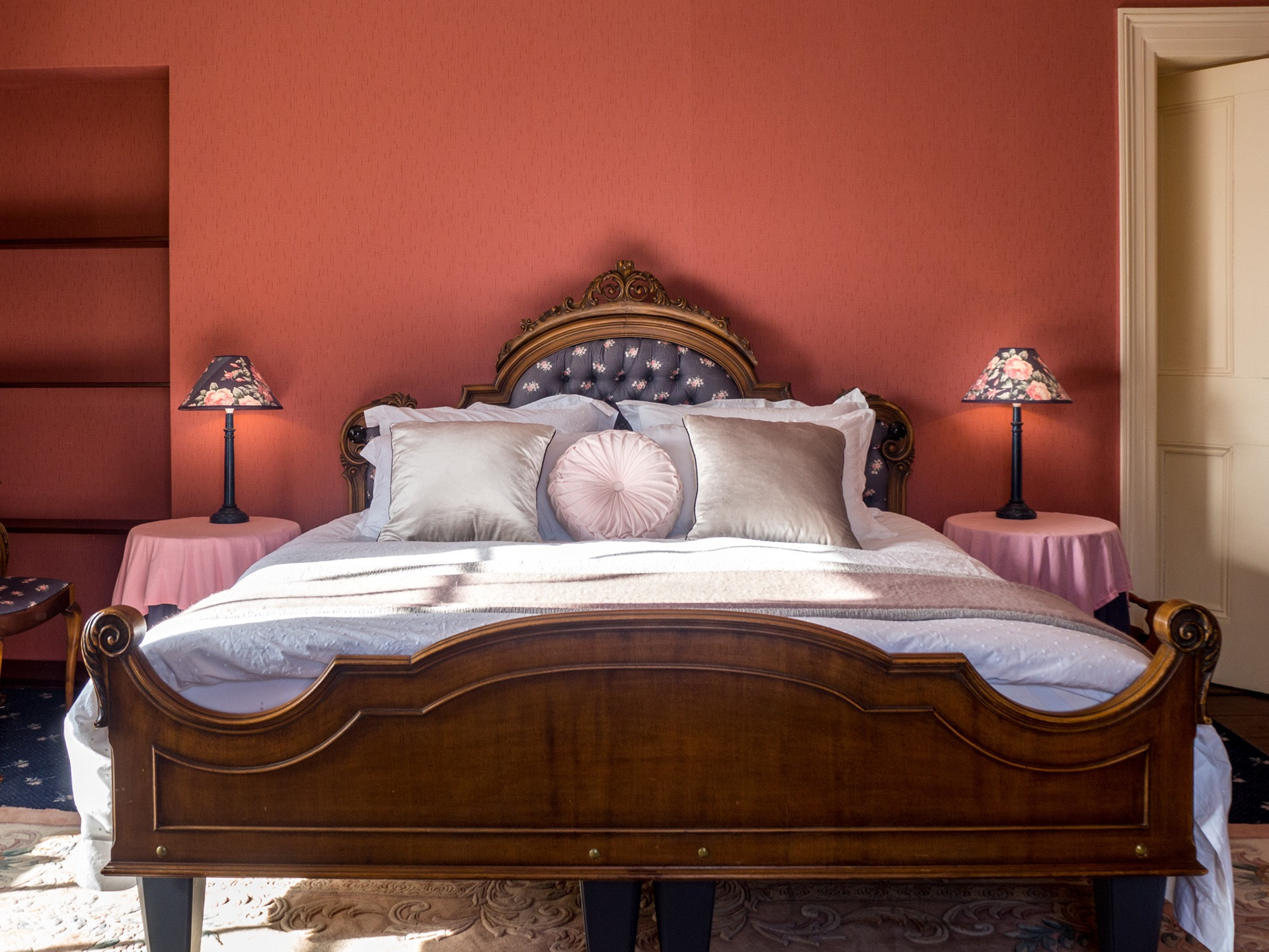 Bedroom 2: King-size bed, wardrobe, dressing table and free-standing mirror. High ceilings, 2 windows with beautiful views overlooking the gardens and allowing ample natural light.