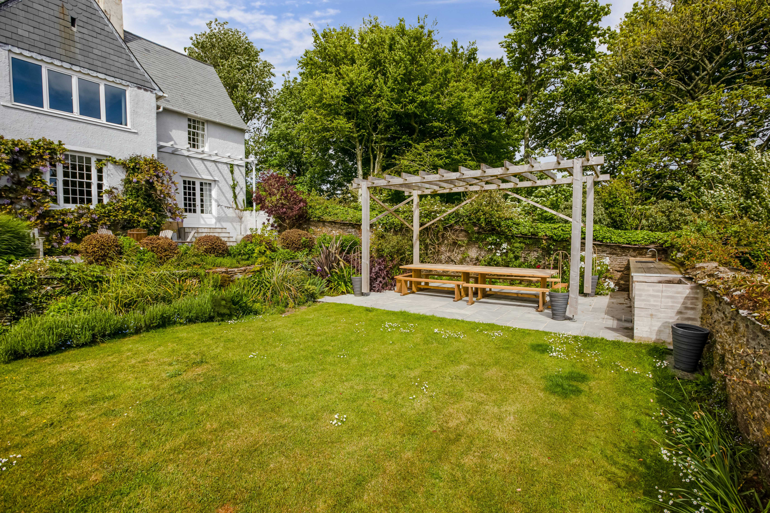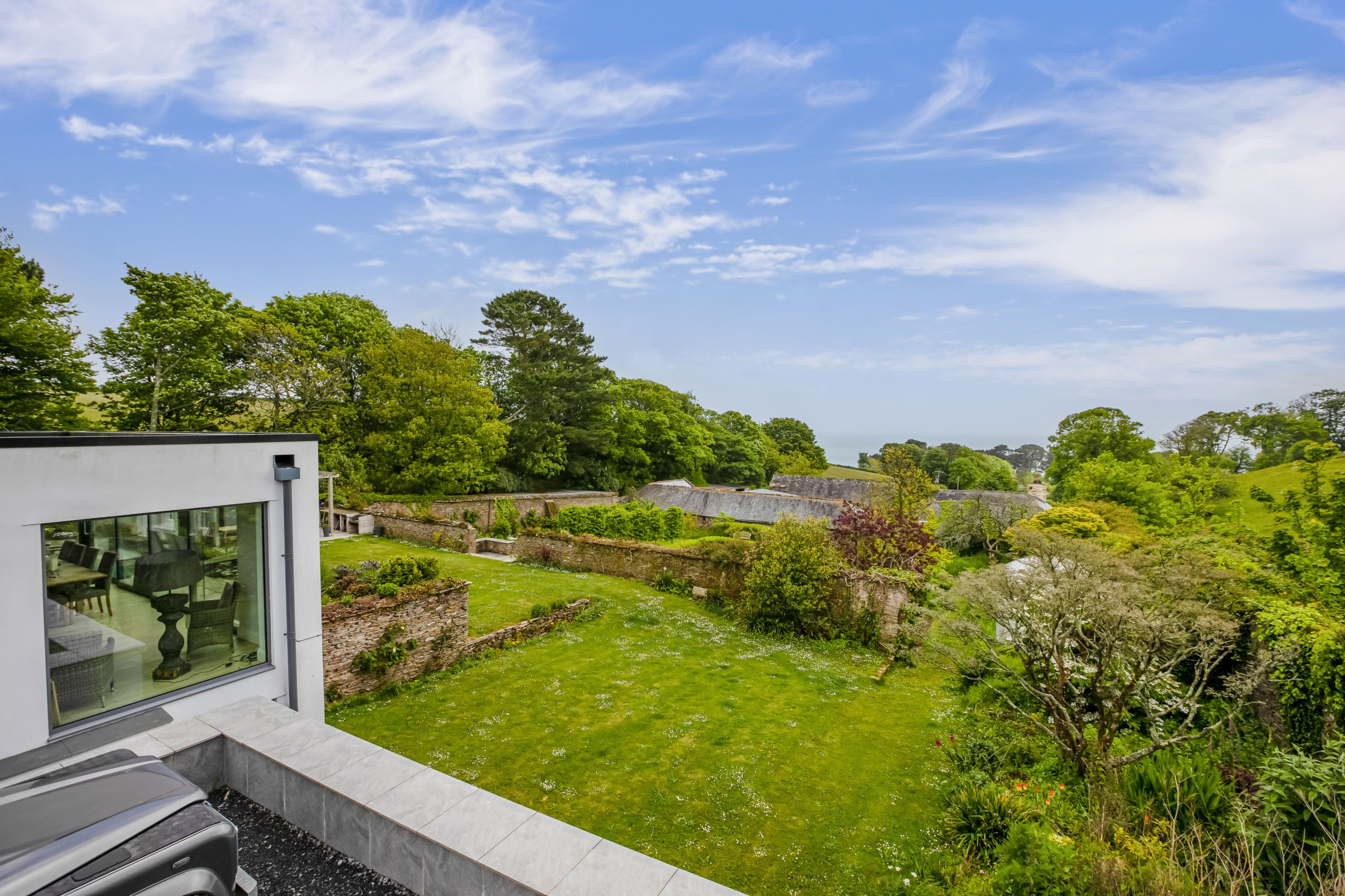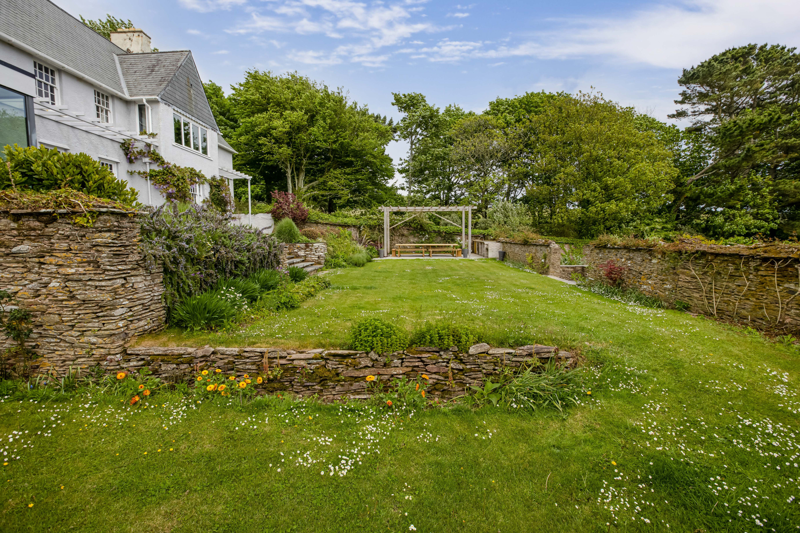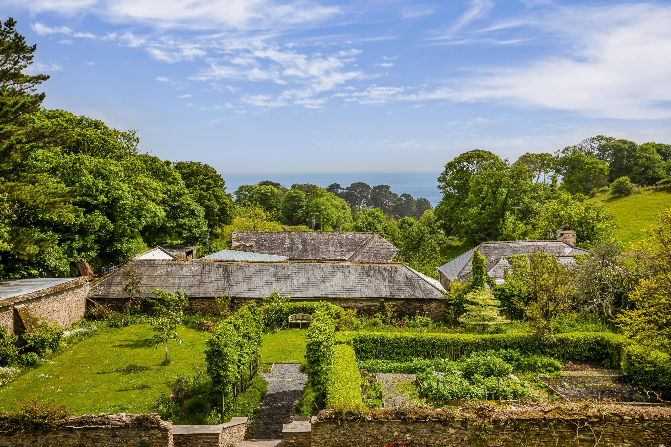 The stunning walled rear gardens have a wealth of mature flowers, shrubs and trees with a large patio area adjacent to the house. Take in the serene, breathtaking views across the surrounding gardens, country landscape and the sea. There are steps down to the large, level, formal lawn and pergola perfect for al fresco dining and summer picnics.