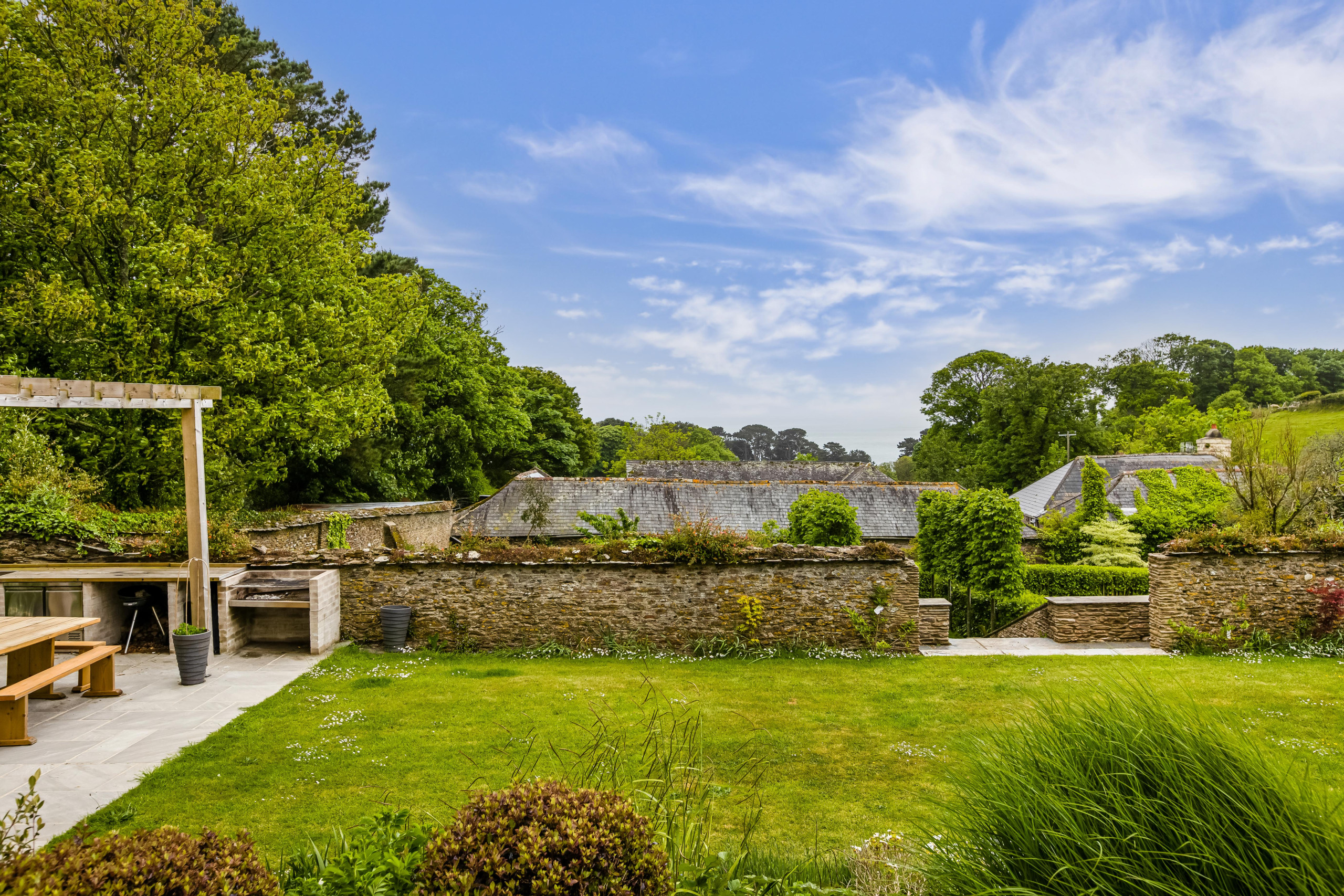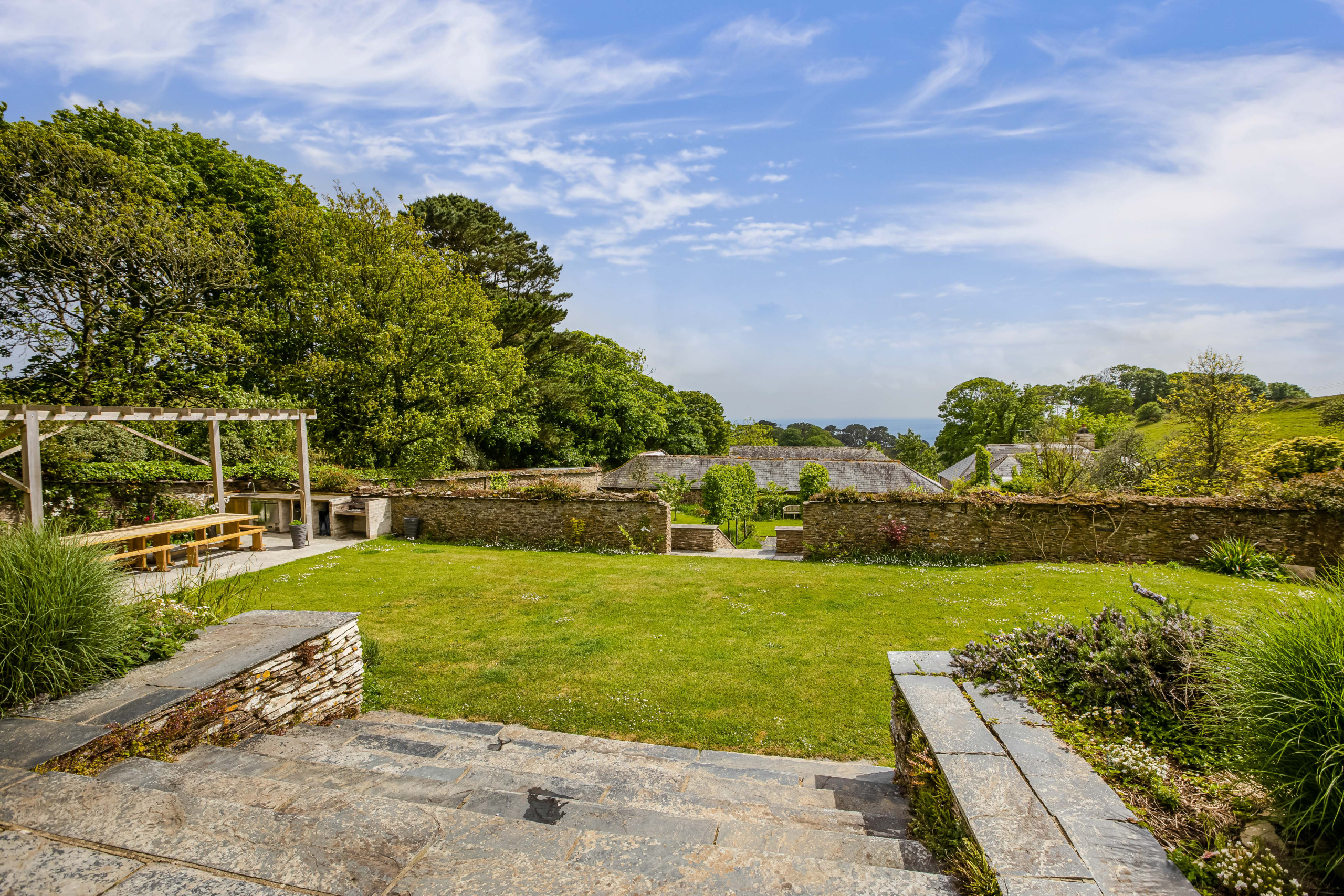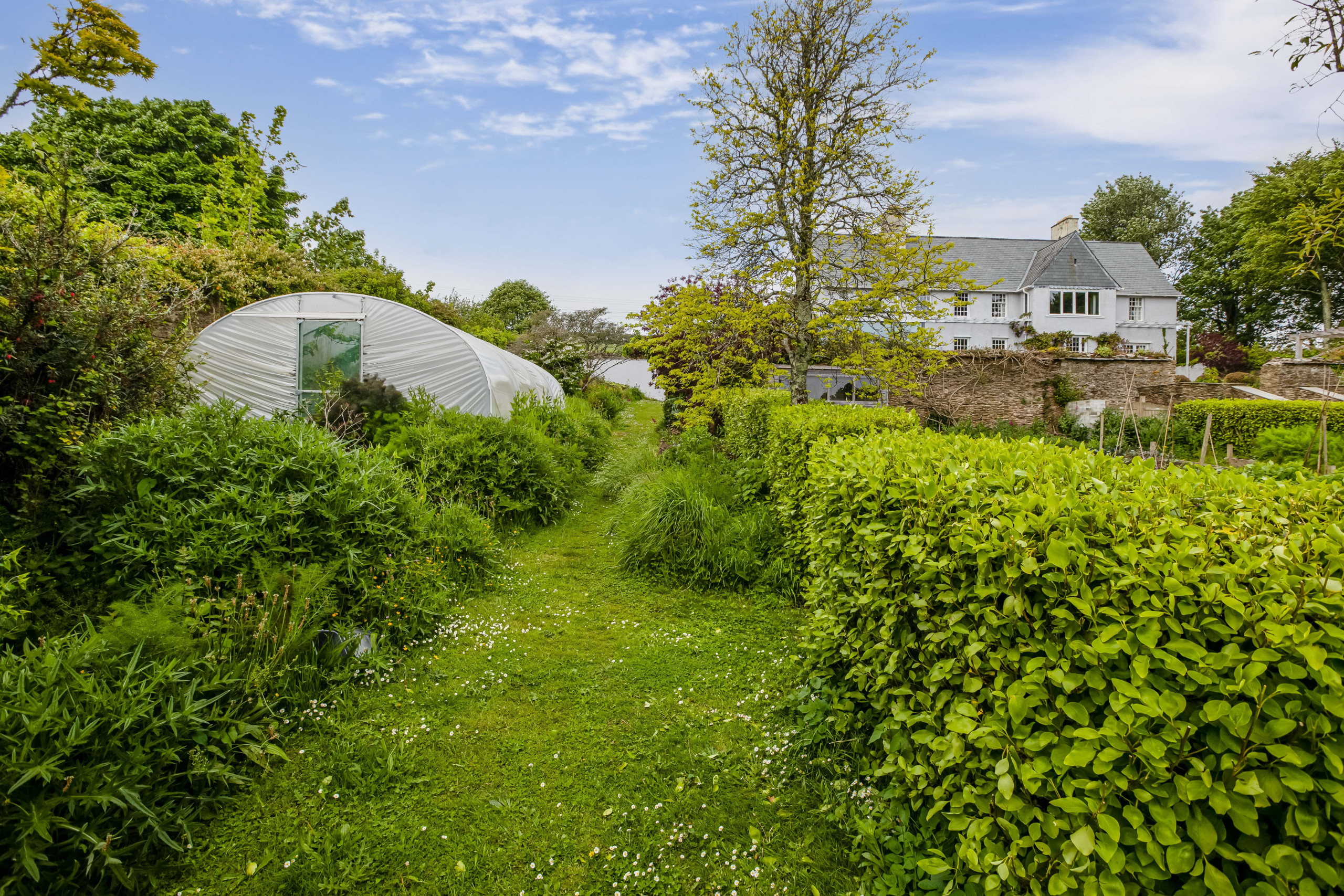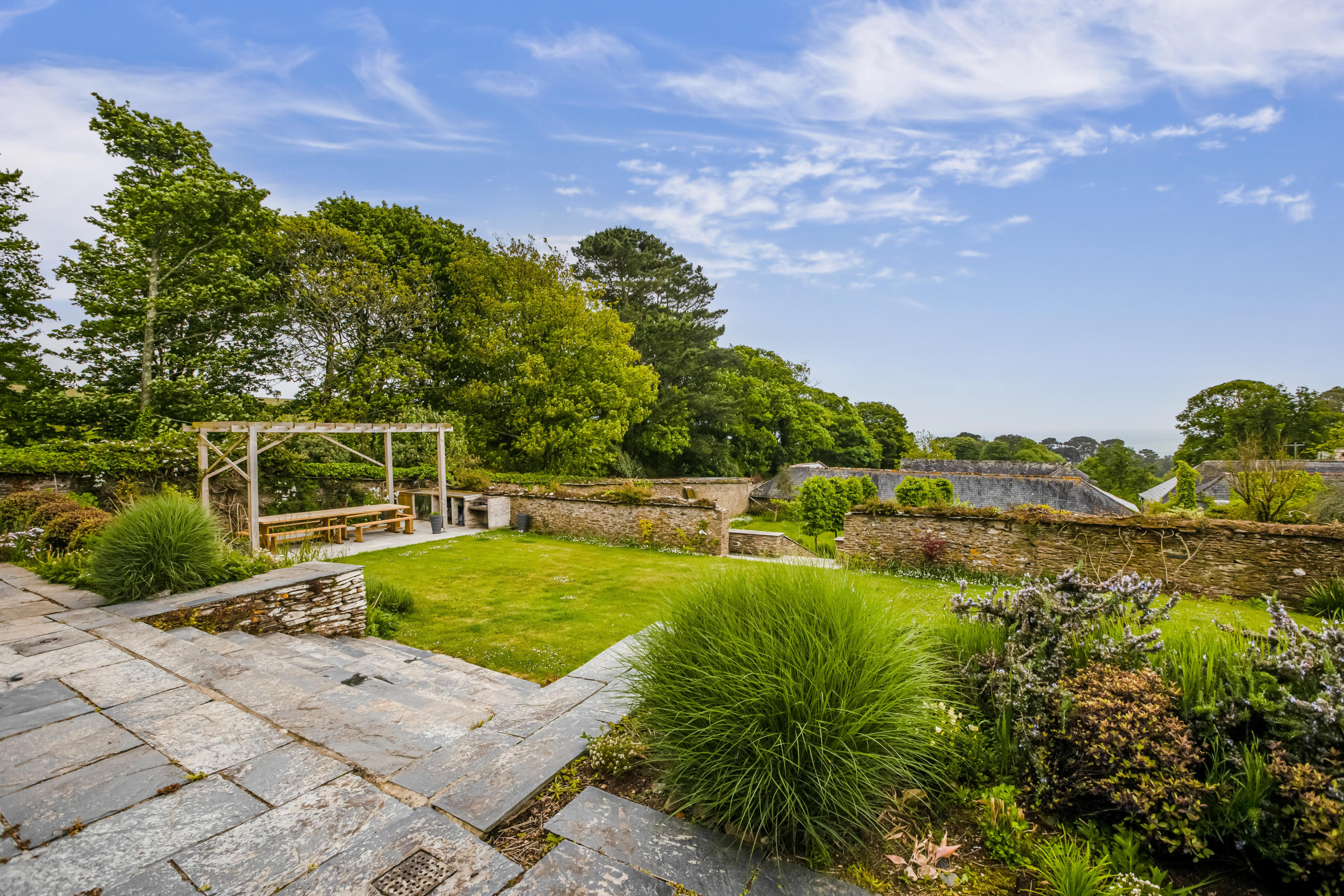 The stunning walled rear gardens have a wealth of mature flowers, shrubs and trees with a large patio area adjacent to the house. Take in the serene, breathtaking views across the surrounding gardens, country landscape and the sea. There are steps down to the large, level, formal lawn and pergola perfect for al fresco dining and summer picnics.