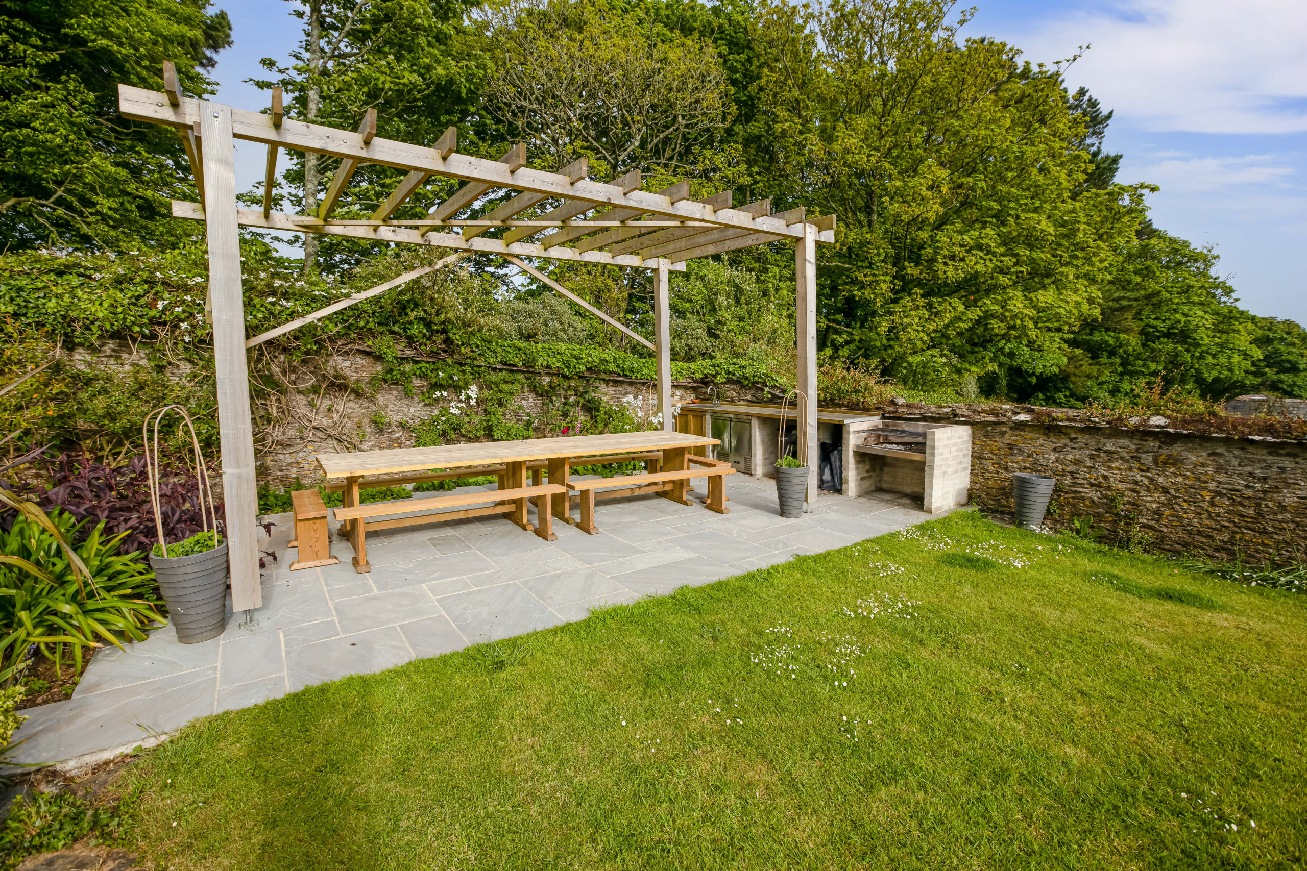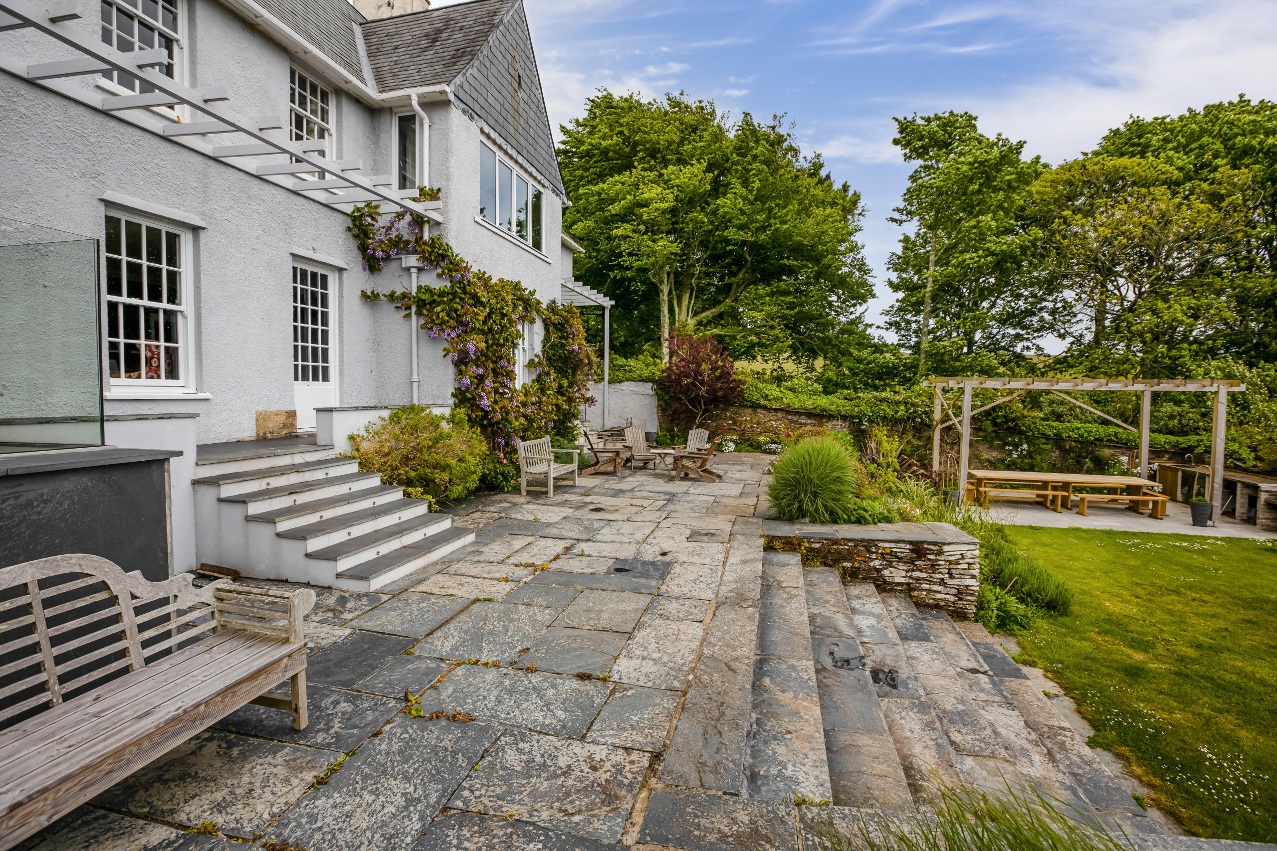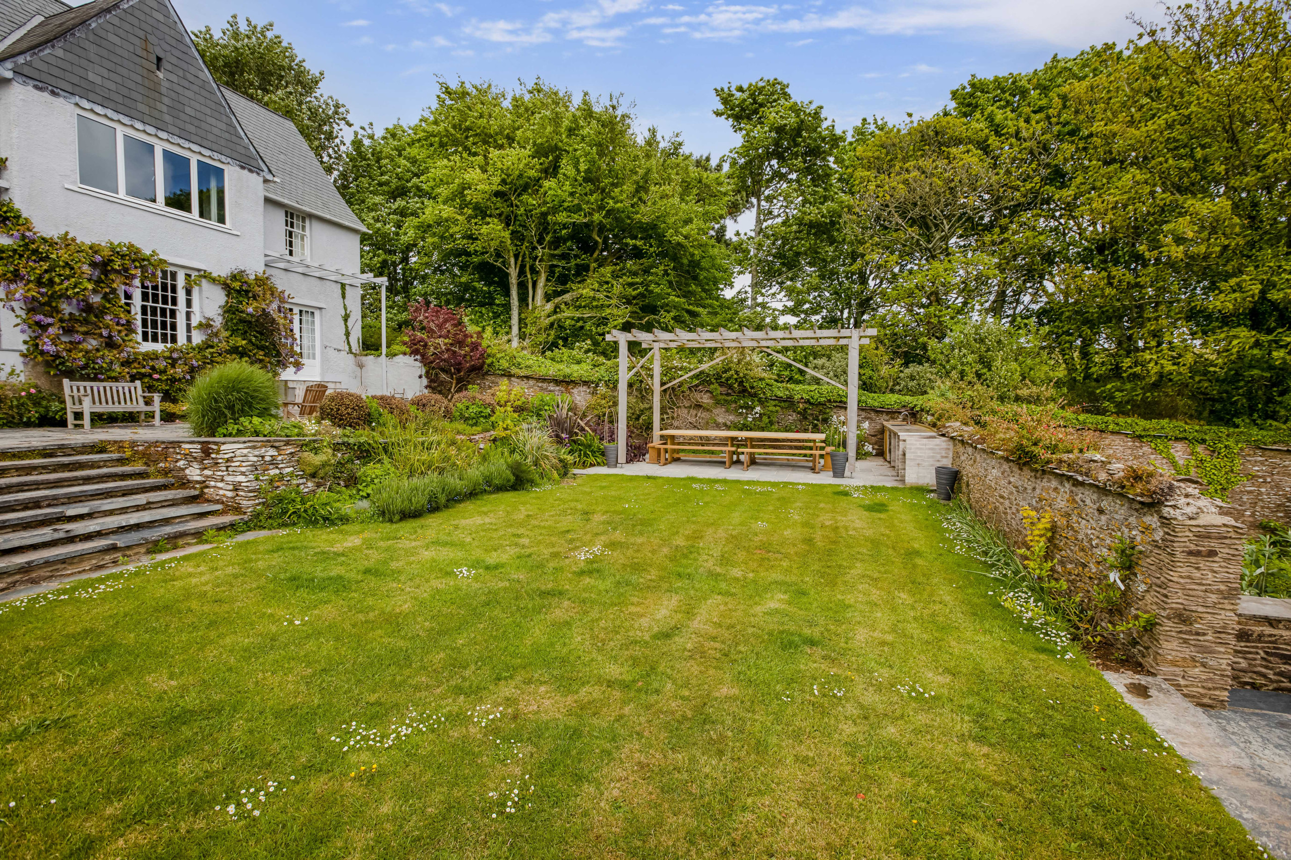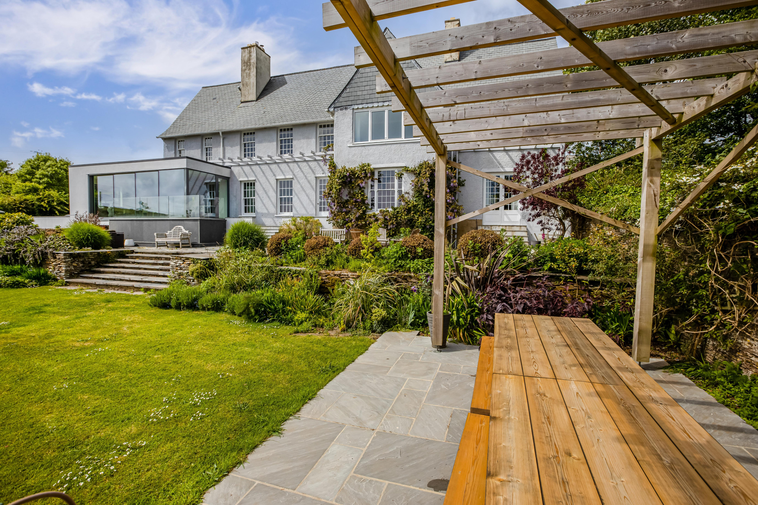 The stunning walled rear gardens have a wealth of mature flowers, shrubs and trees with a large patio area adjacent to the house. Take in the serene, breathtaking views across the surrounding gardens, country landscape and the sea. There are steps down to the large, level, formal lawn and pergola perfect for al fresco dining and summer picnics.