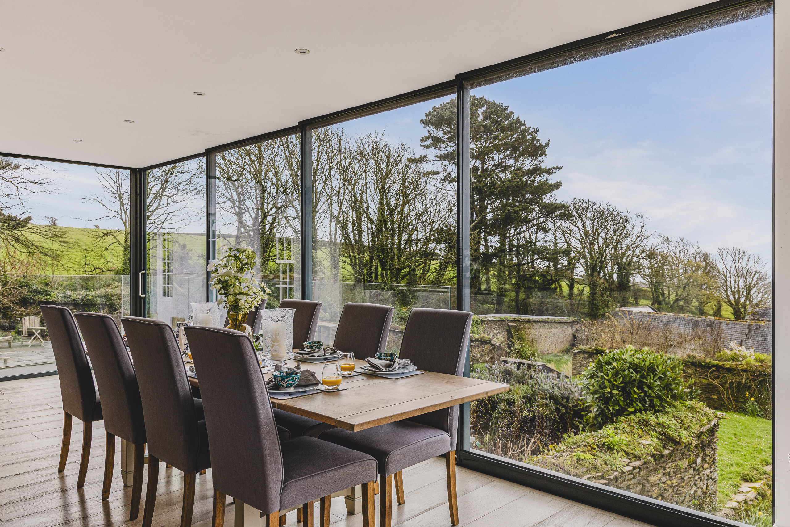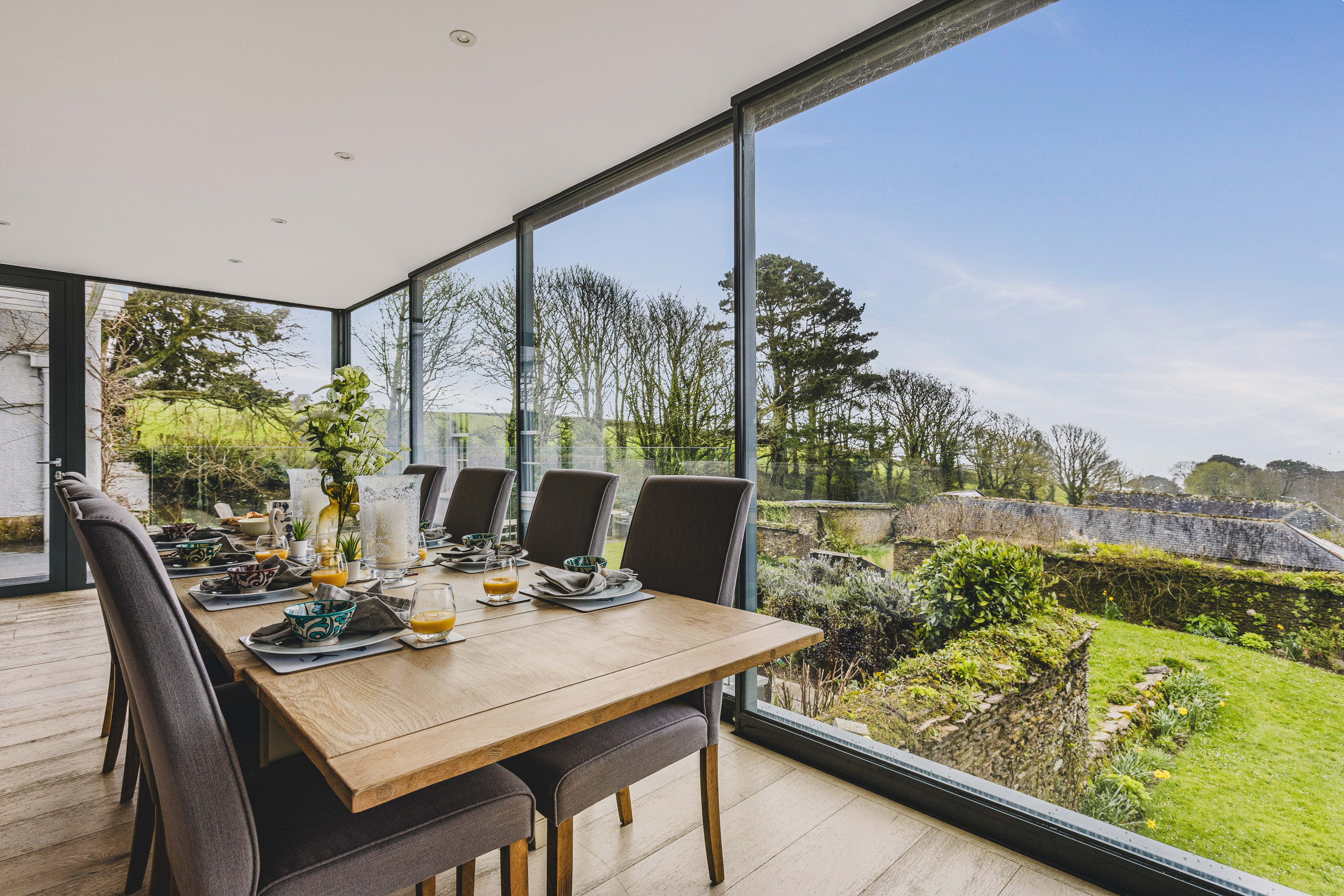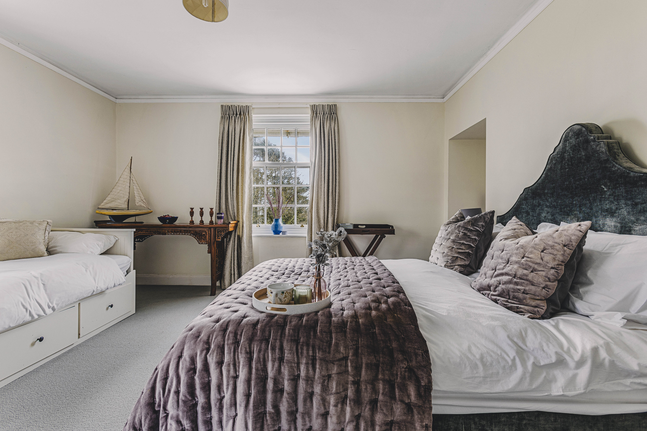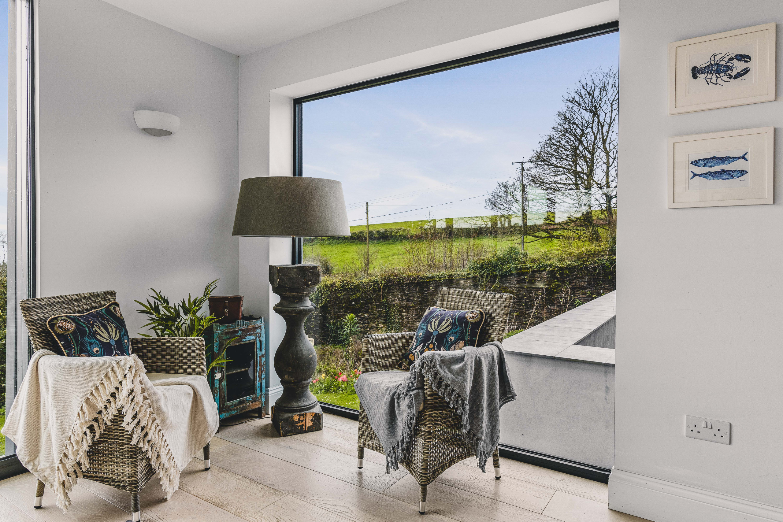 The stunning walled rear gardens have a wealth of mature flowers, shrubs and trees with a large patio area adjacent to the house. Take in the serene, breathtaking views across the surrounding gardens, country landscape and the sea. There are steps down to the large, level, formal lawn and pergola perfect for al fresco dining and summer picnics.