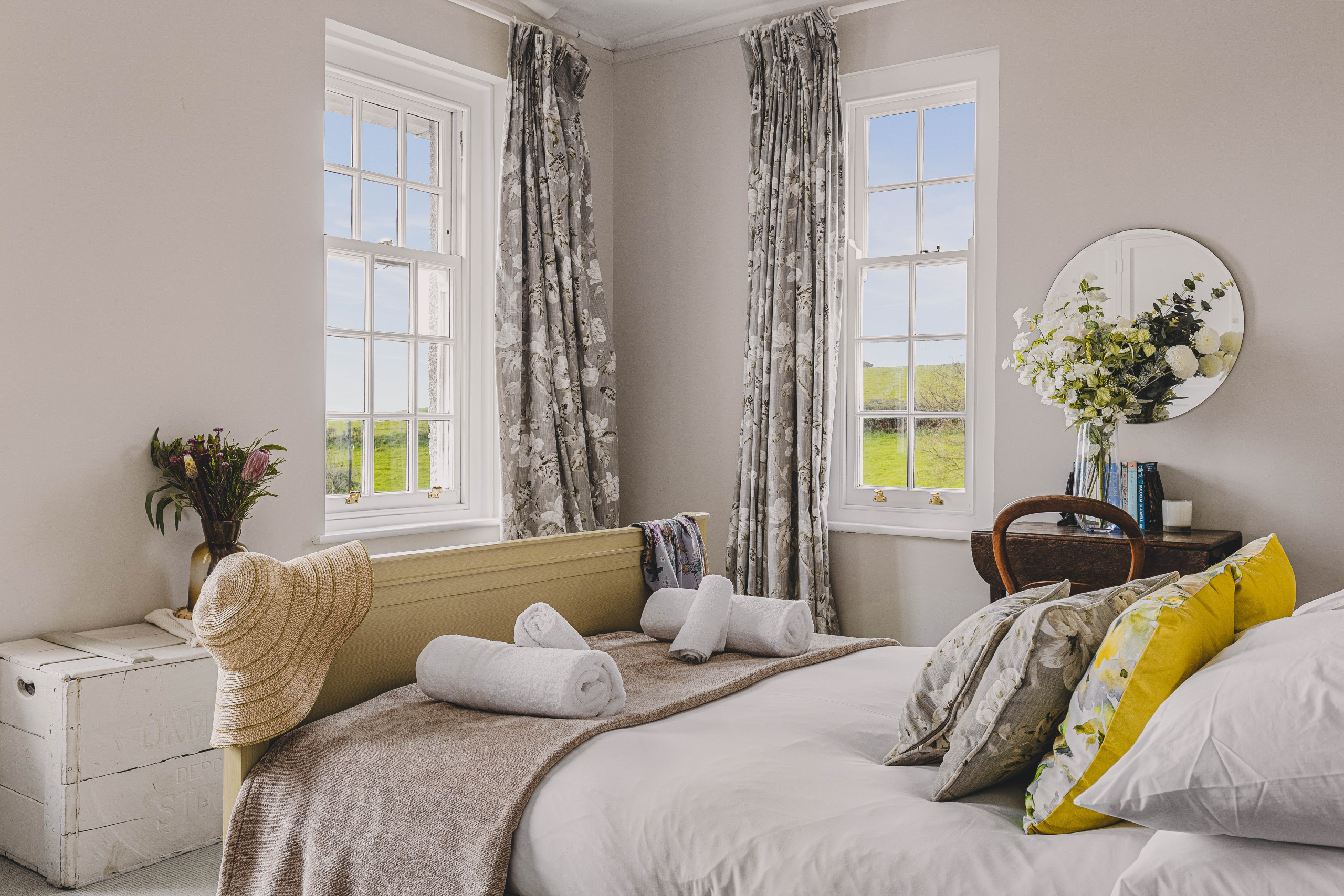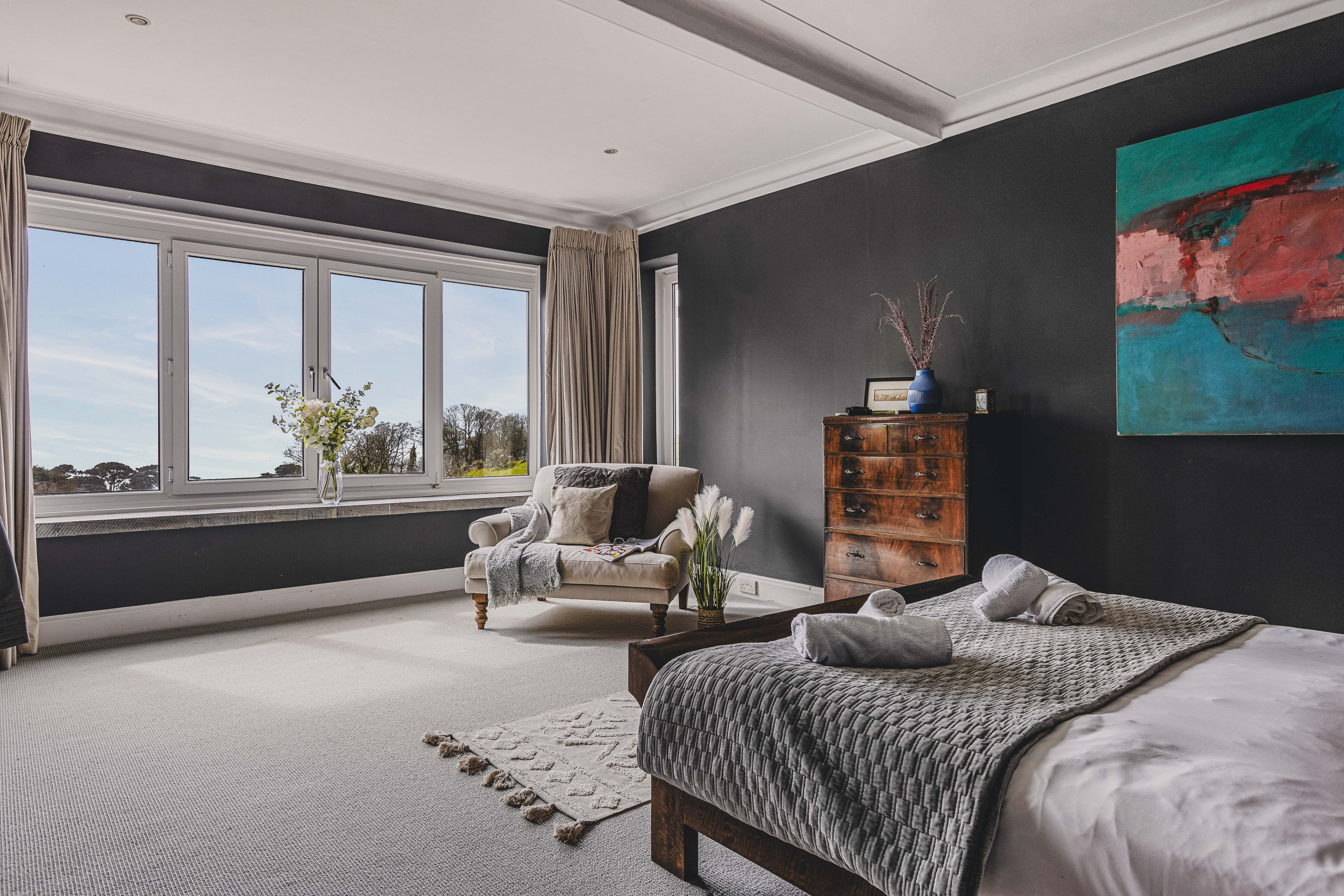 Upstairs, the extensive landing leads to the east section of the property with the principal bedroom enjoying wonderful high ceilings and large windows overlooking the rear gardens, Start Bay and the golden beaches of Hallsands and Beesands.