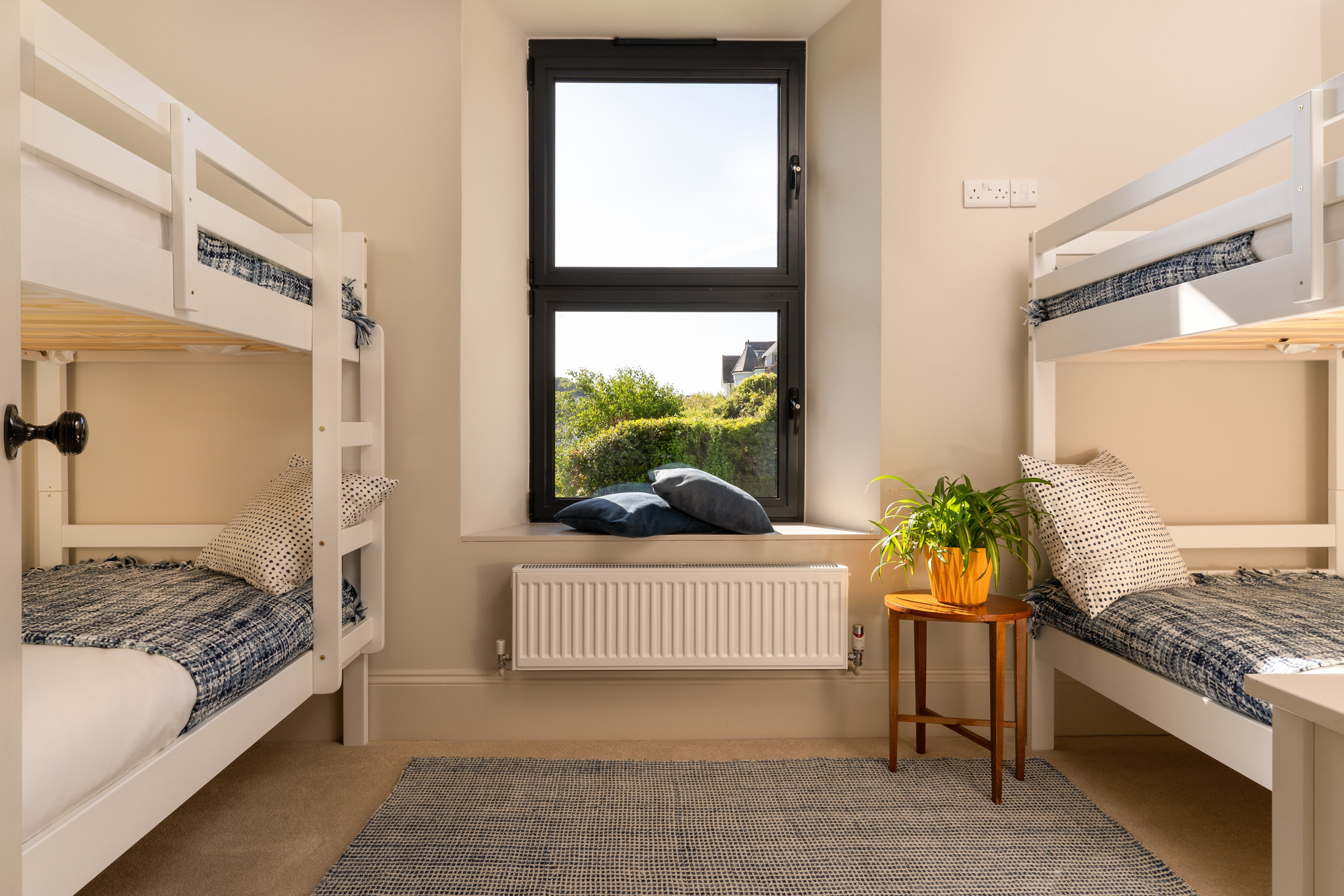 Bedroom number four is the perfect hideaway for four children or young adults, offering two sets of three-foot single bunk beds.