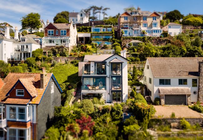 Nestled into the hillside of the Kingswear headland, this handsome 5-bedroom family home delivers space, privacy, and spectacular scenery. Styled with warm elegance, the open-plan living space maximises the valley views, which extend out onto the terrace. There’s a further sitting room and family room. Upstairs, two of the bedrooms (one en suite) have private balconies. The third bedroom is styled for a soothing sleep, and a refreshing start. We also provide an electric charging point in the garage that can be used on a daily basis for a nominal daily fee.