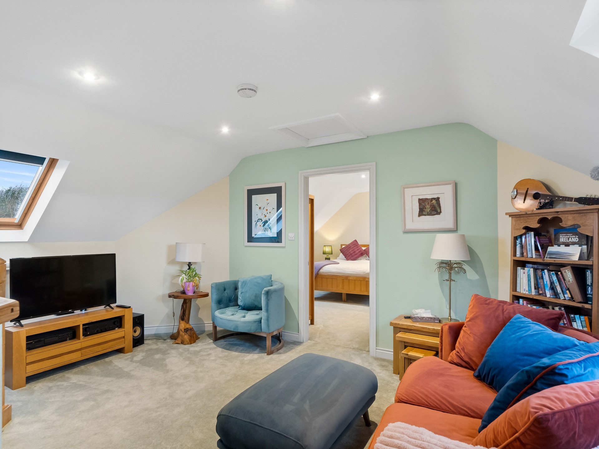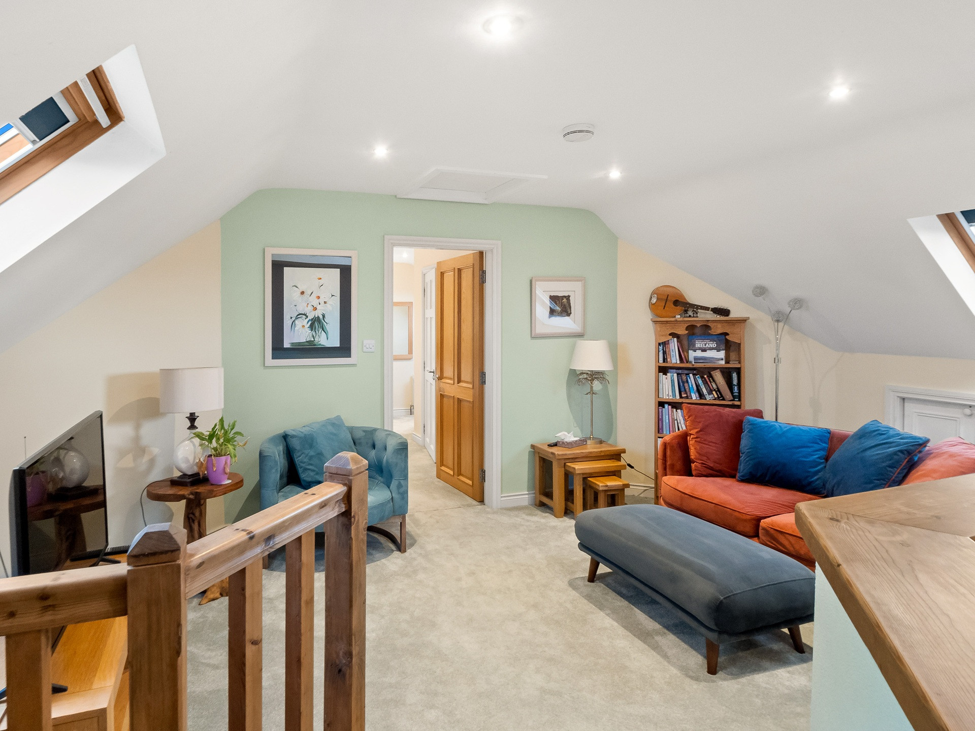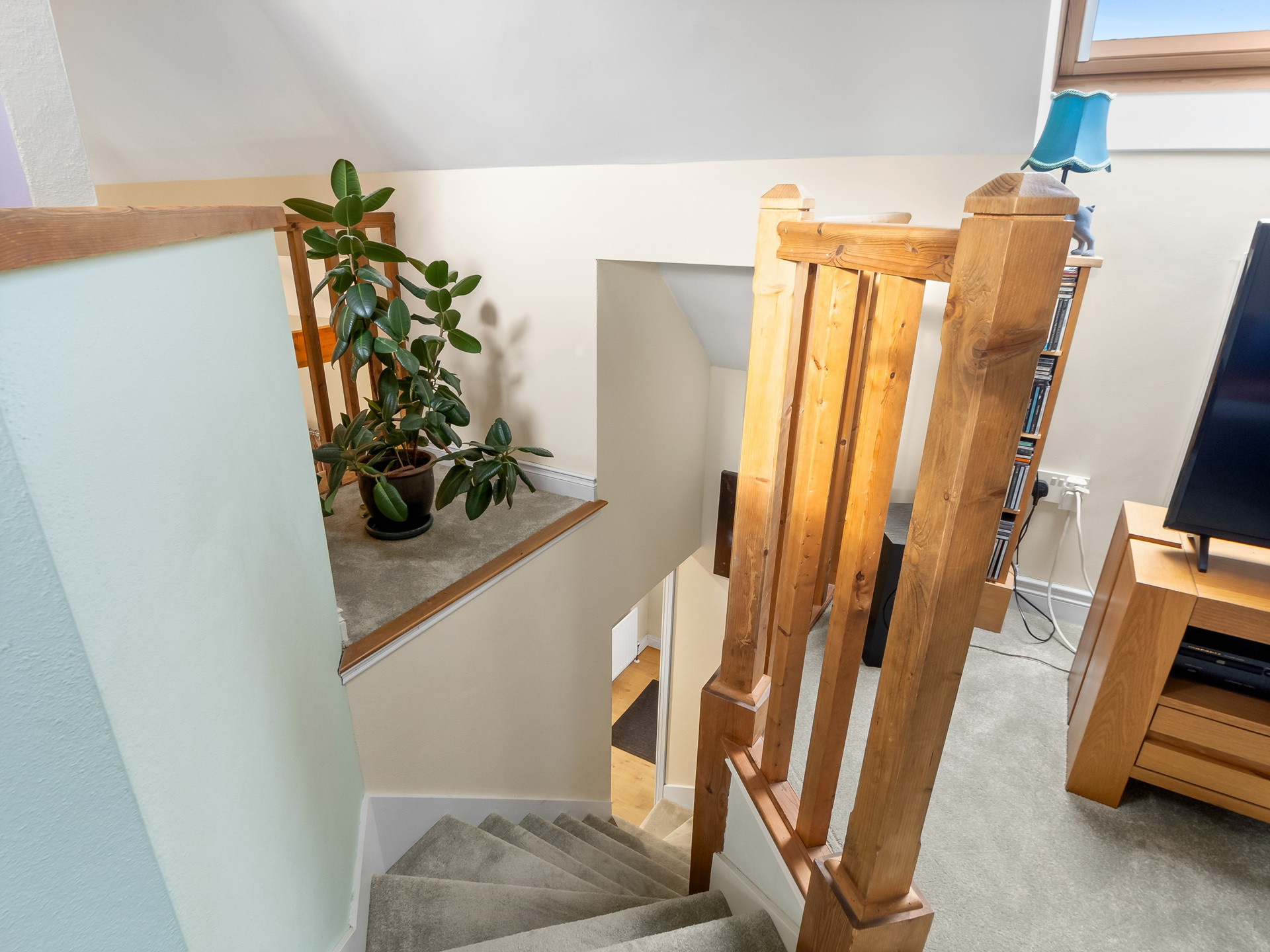 Upstairs den with separate hi-fi system and smart TV with Netflix. Overlooks living area below.
