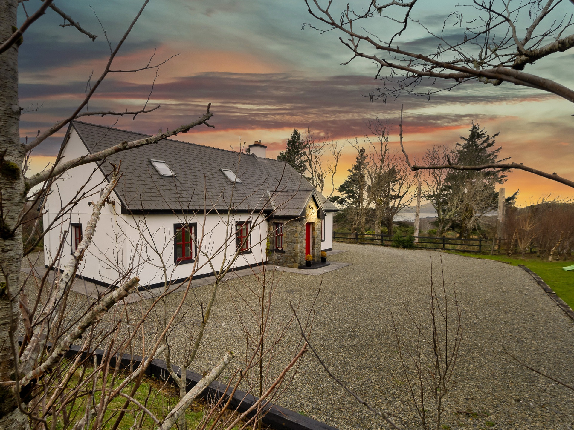 Outside there is a wooden wind-shielded deck, dining furniture & BBQ – perfect for quiet al fresco dining with a picturesque view. It is very close to Letterfrack village (shops, pubs & restaurants), Connemara National Park, Kylemore Abbey, Clifden and Cleggan.
