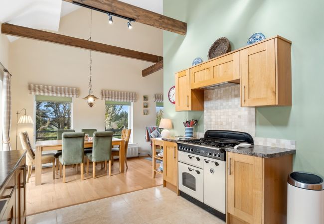 Bright open-plan kitchen/dining area with seating for 6 people.