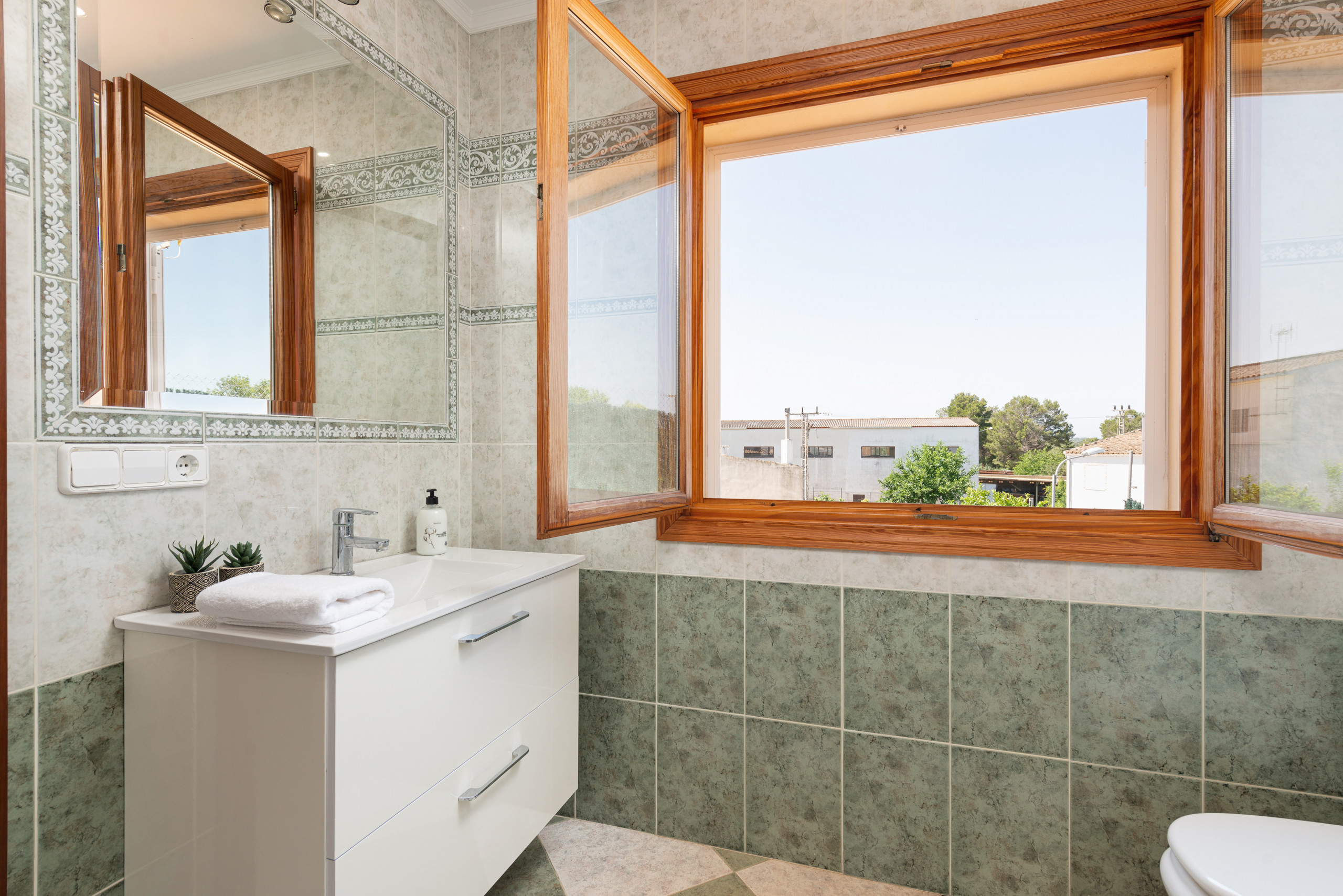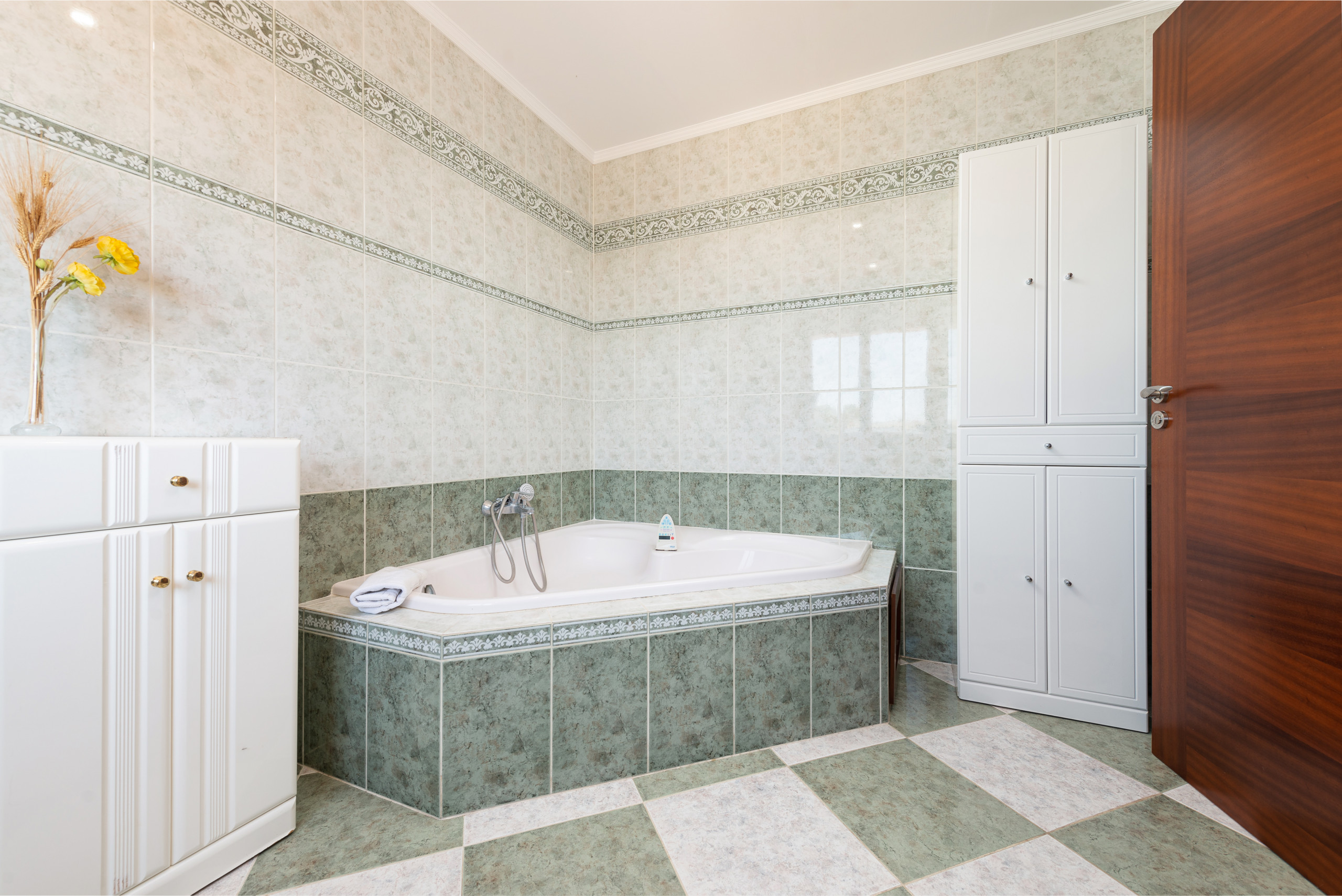 In the house there are three bathrooms, two with shower and one with bathtub.
