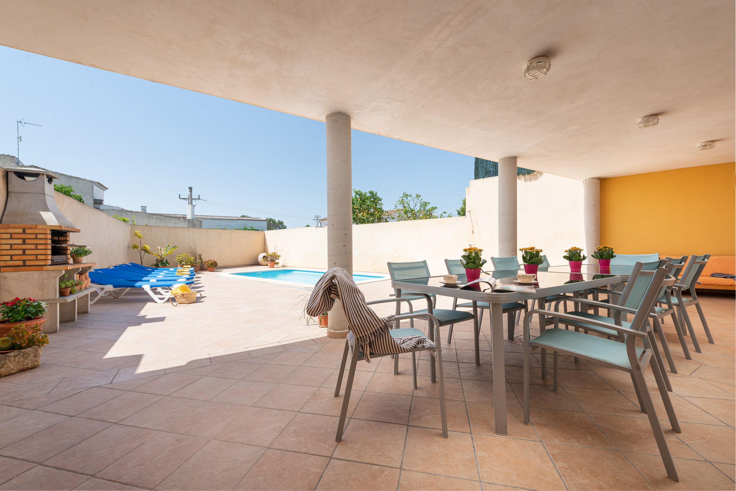 On the terrace there is a covered part, with a large table, where you can enjoy pleasant evenings, either enjoying the food bought at the local market (Sundays), wonderful barbecues or cooling off in the large swimming pool. There is also an outdoor shower.