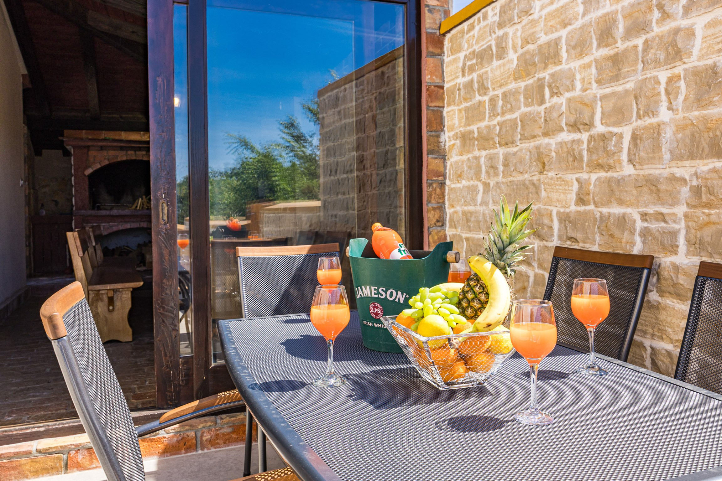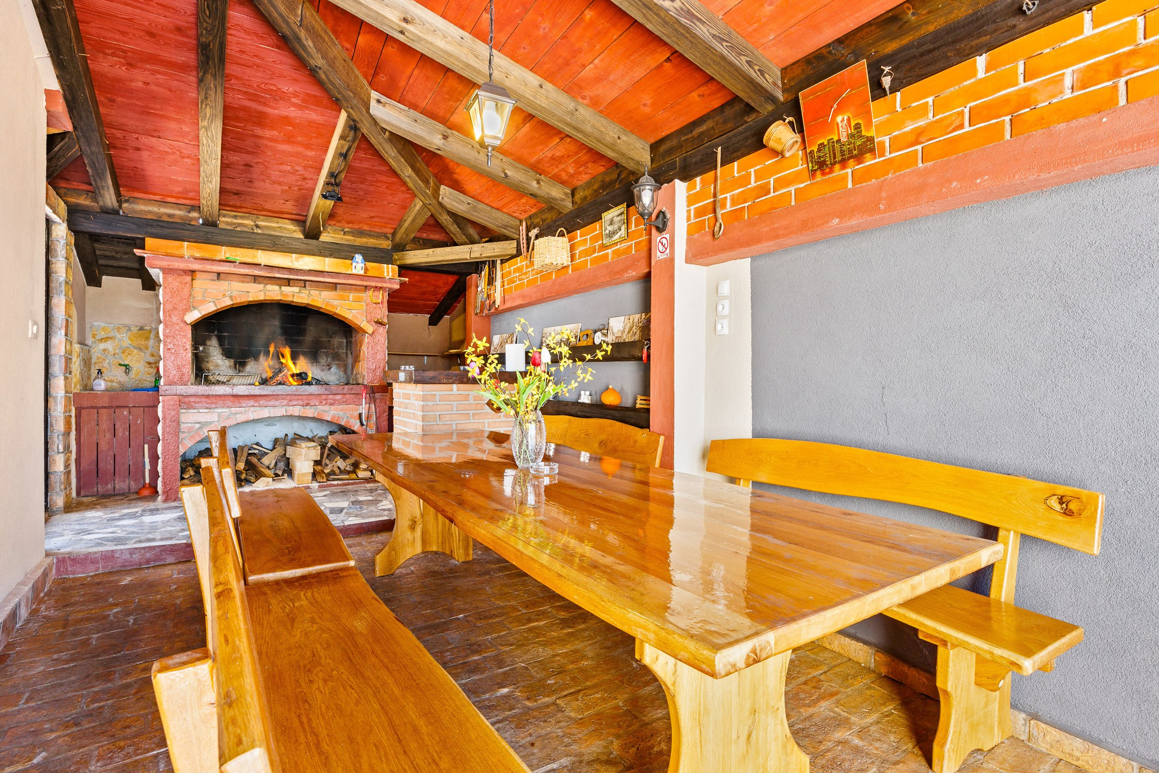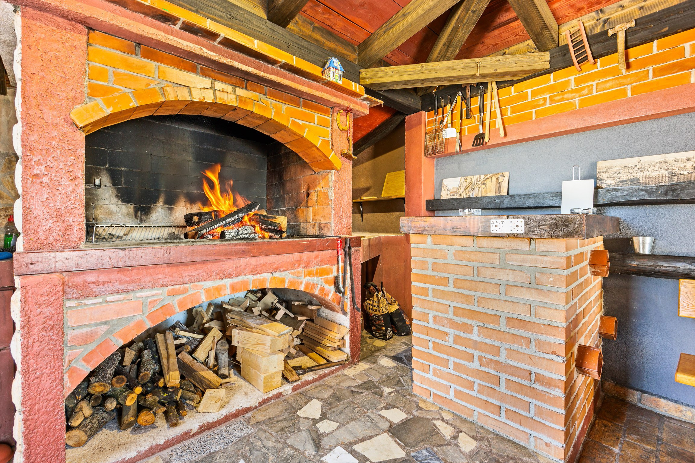 Enjoy the comfort of an outdoor dining area with an inviting fireplace, perfect for cool evenings and creating unforgettable moments with your loved ones. The terrace and outdoor dining area offer an excellent space for outdoor meals and relaxation, complemented by garden furniture and a grill for enjoyable outdoor cooking.