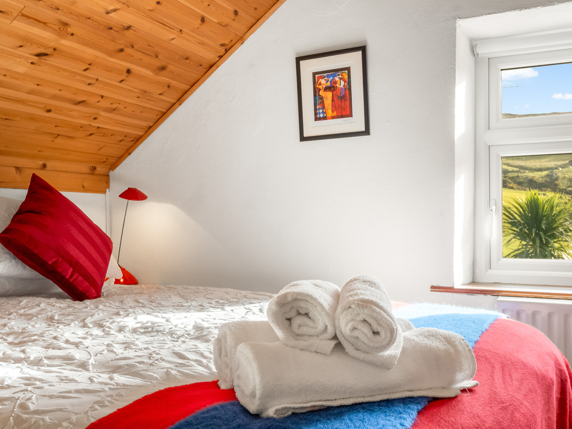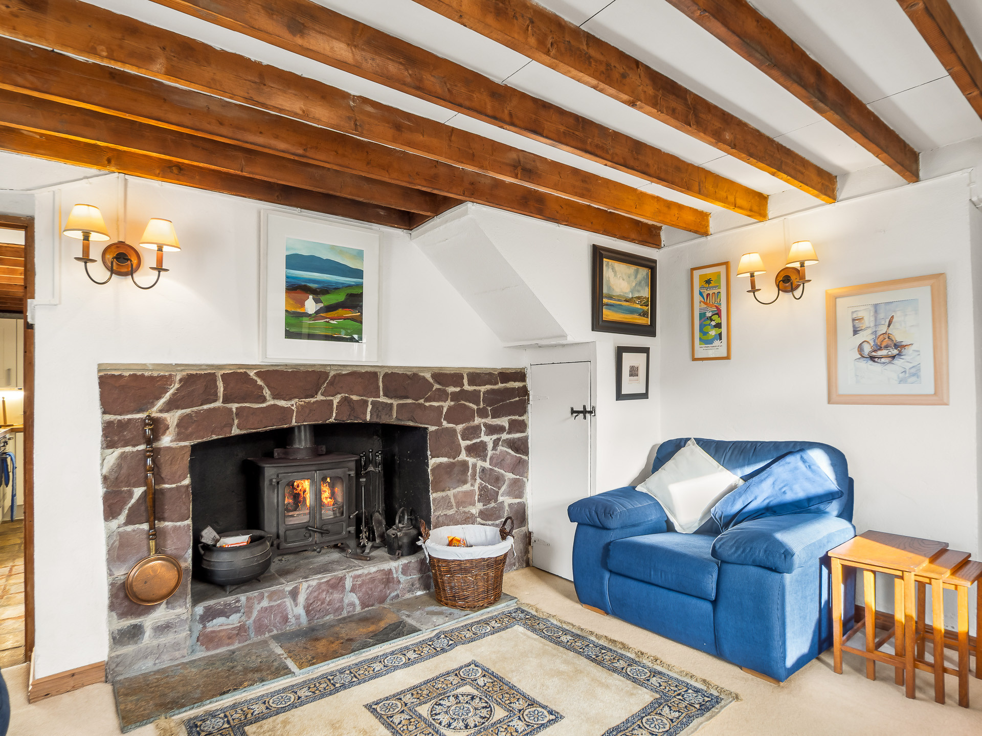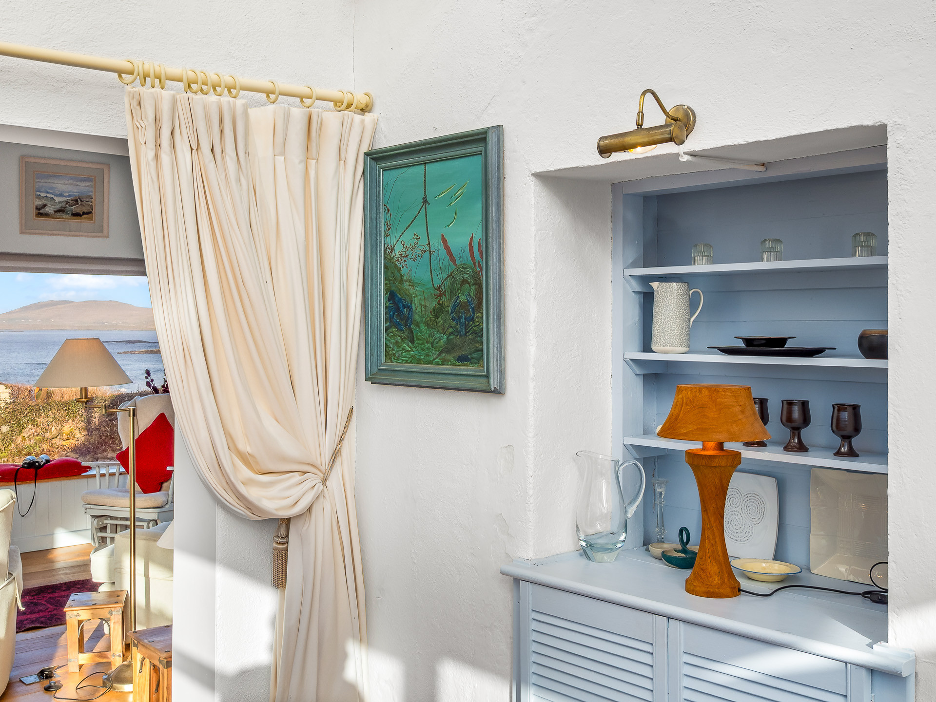 The well-equipped kitchen has everything you need for home-cooked meals, featuring an electric oven, gas hob, dishwasher and an oil-fired range that also provides heating. You’ll also find a washing machine and a traditional pulley clothes horse, a lovely nod to classic Irish country living.