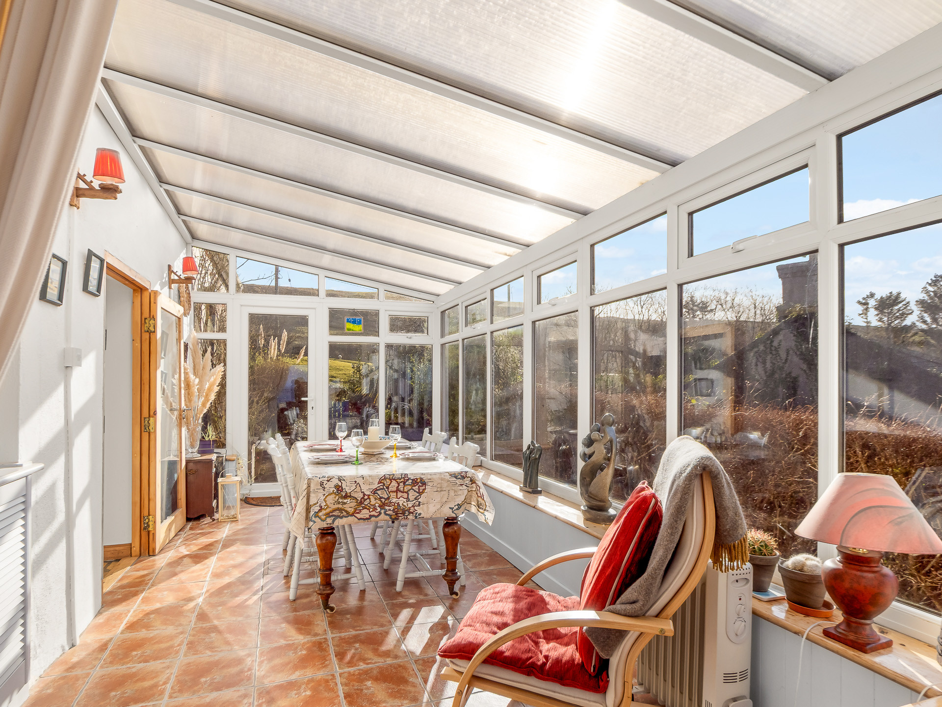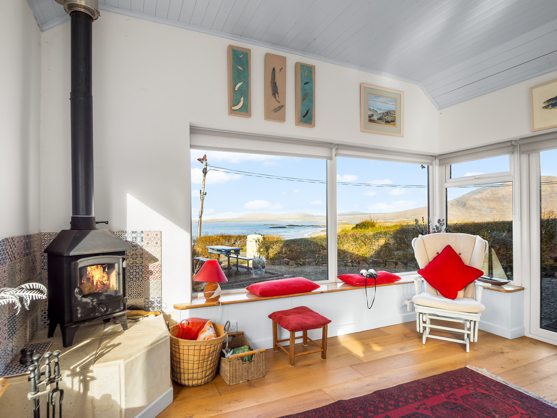 After a day exploring Lettergesh Beach, Connemara National Park, Kylemore Abbey, or the trails of Diamond Hill, return to the comfort of this cosy home. Inside, you will find two inviting living spaces: a snug sitting room with a comfortable couch and armchairs perfect for unwinding beside the stove and a light-filled sunroom, where three armchairs and a window seat invite you to sit back and take in views of the beautiful garden in bloom.