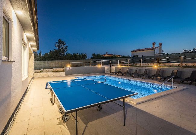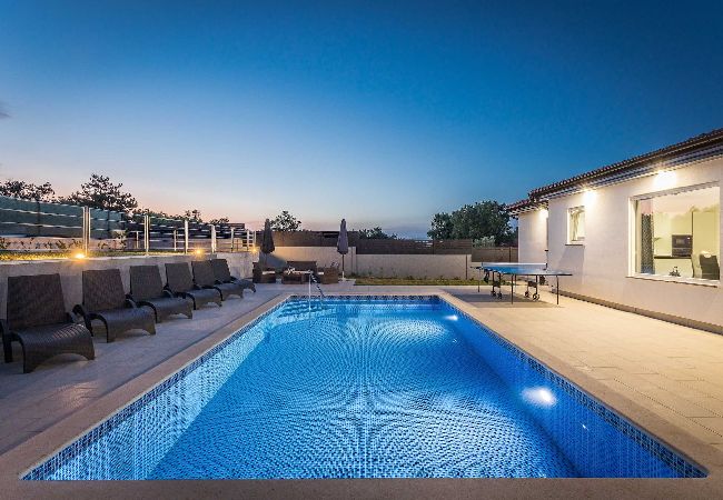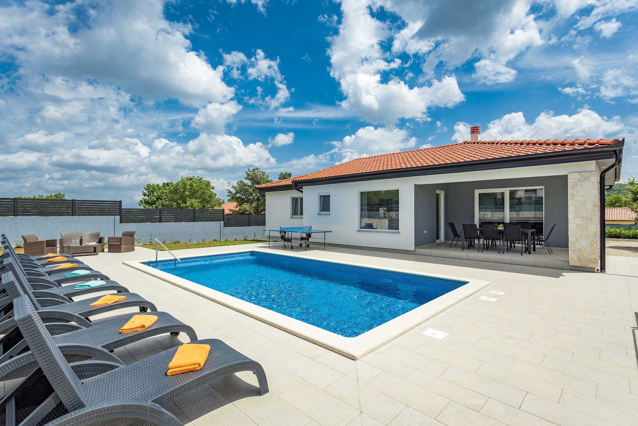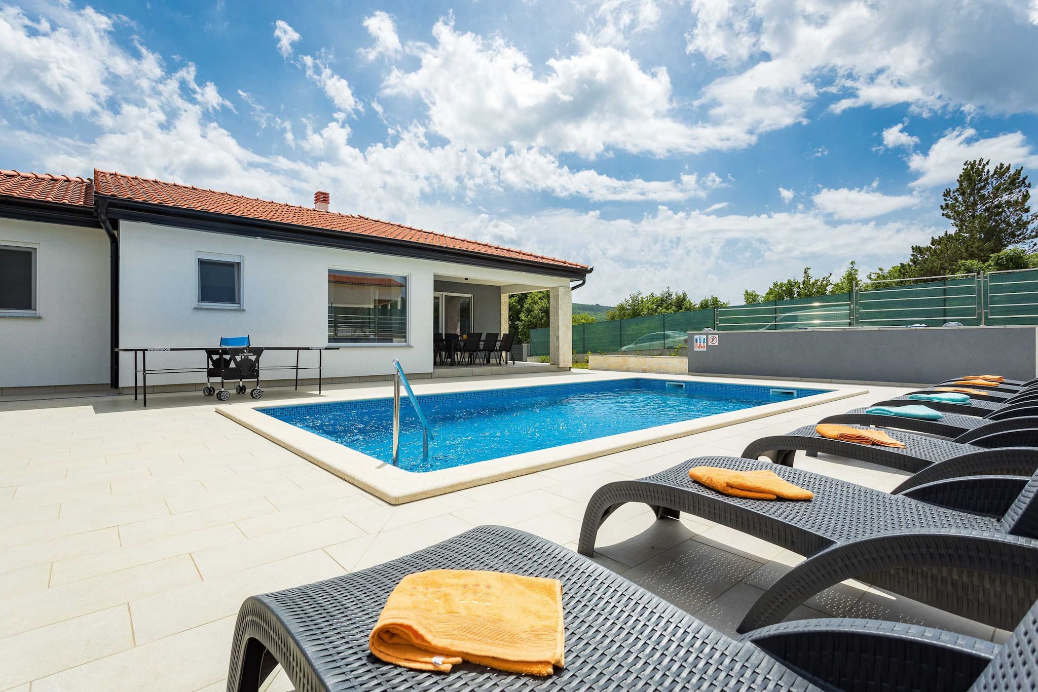 Holiday Home Greta is located in Salakovci, a village perfect for relaxing vacation. Guests have access to a private swimming pool, sun deck with sun loungers, outdoor dining area, trampoline and a charcoal grill/BBQ. House is entirely located on ground floor and it consists of living room, kitchen, 4 bedrooms with AC and en suite bathrooms. Washing machine is located in a separate toilet.