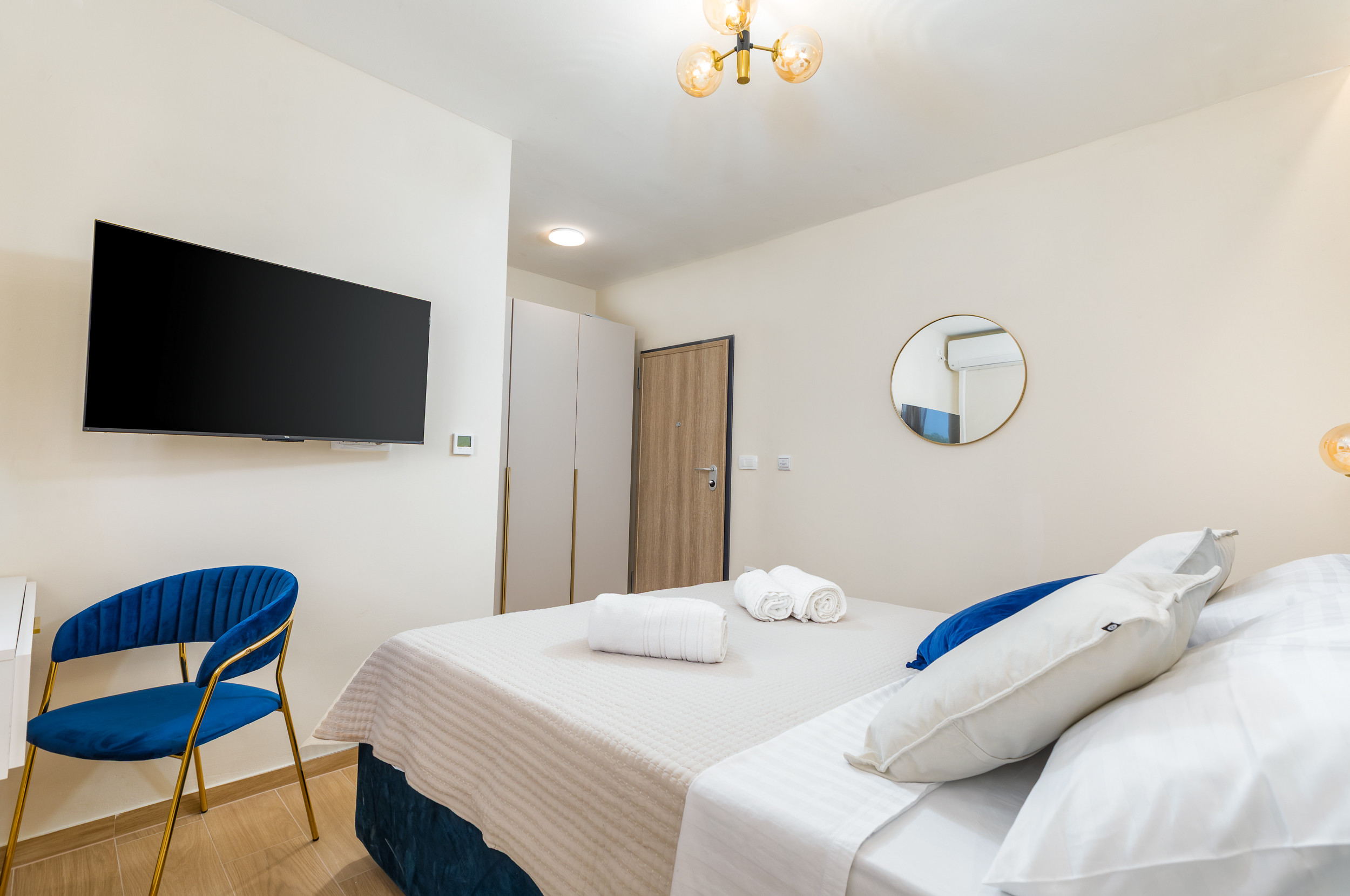 This tastefully furnished room has a comfortable double bed, flat screen TV, private balcony, bathroom, refridgerator and a coffee machine. It can accommodate 2 people.