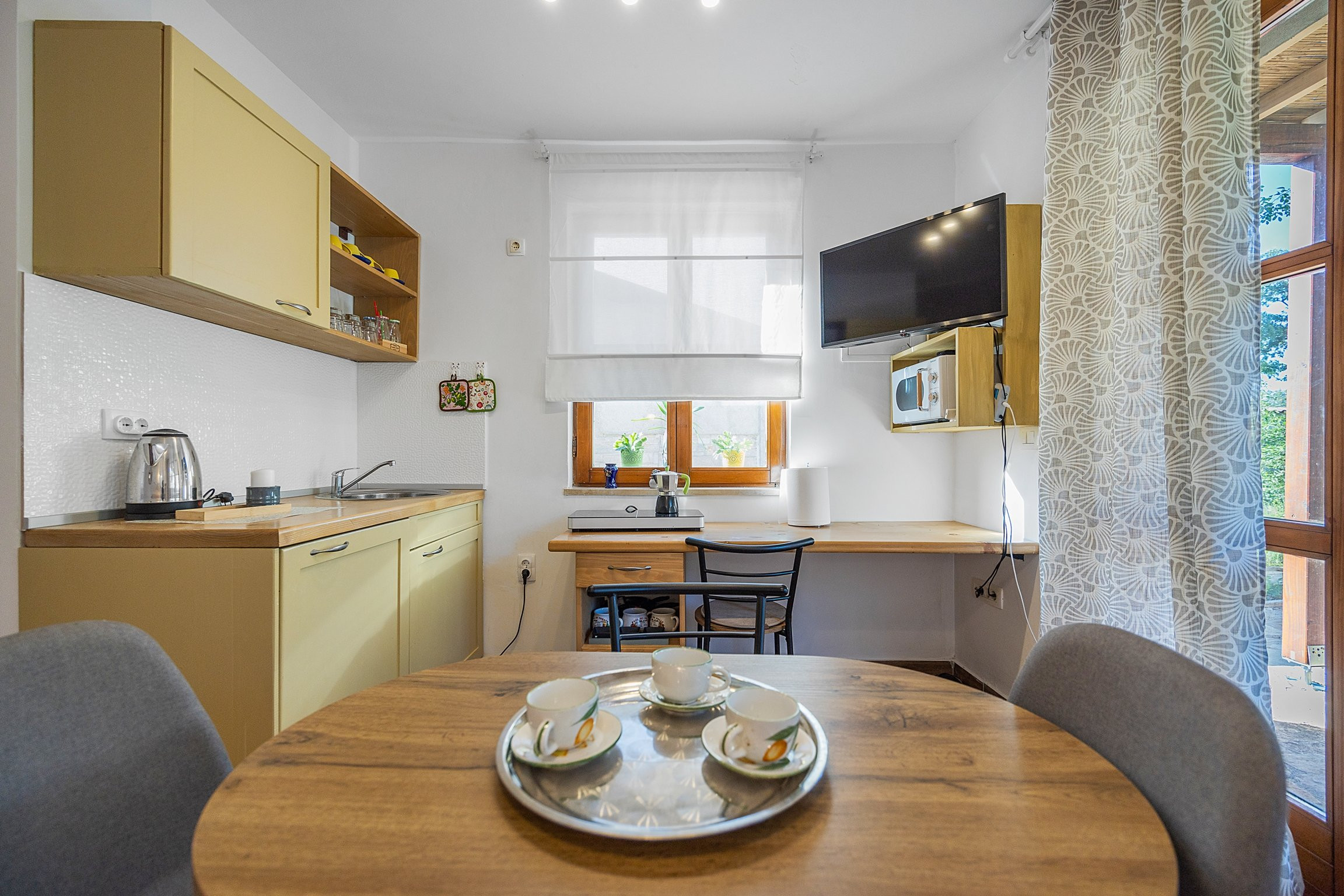 Studio Apartment Olive is a perfect choice for a couple getaway, as it can host up to two people. The apartment consists of a living area and a small bathroom, as well as the private terrace. The livng area is equipped with a small kitchen with all the necesary amenities, such as: cooker, fridge with a freezer drawer, sink, microwave, electric kettle and a toaster and a dining table for two and a sofa. A queensize bed will guarantee a comfortable sleep.