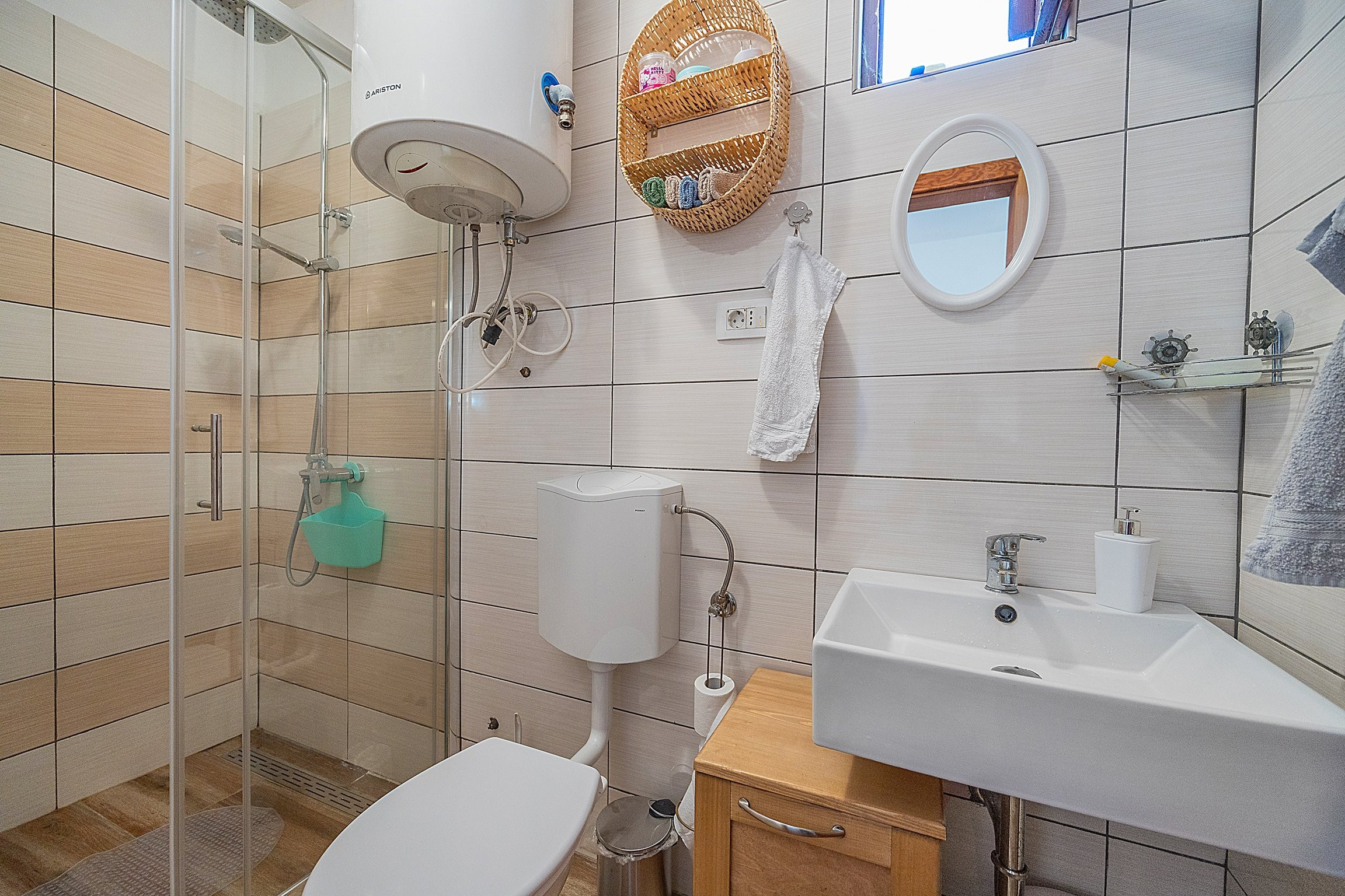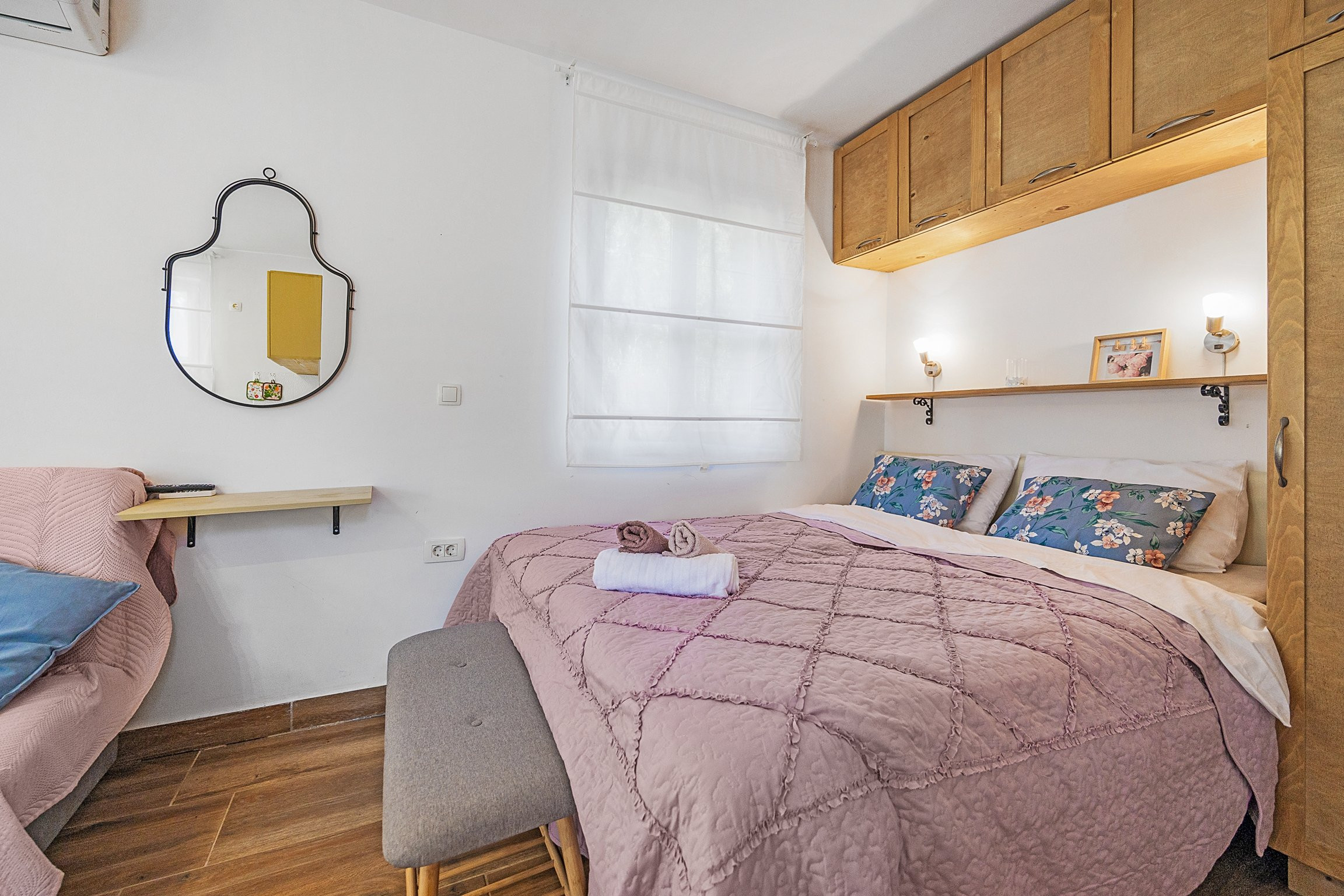 Studio Apartment Mare is a perfect choice for a couple getaway, as it can host up to two people. The apartment consists of a living area and a small bathroom, as well as the private terrace. The livng area is equipped with a small kitchen with all the necesary amenities, such as: cooker, fridge with a freezer drawer, sink, microwave, electric kettle and a toaster and a dining table for two and a sofa. A queensize bed will guarantee a comfortable sleep.