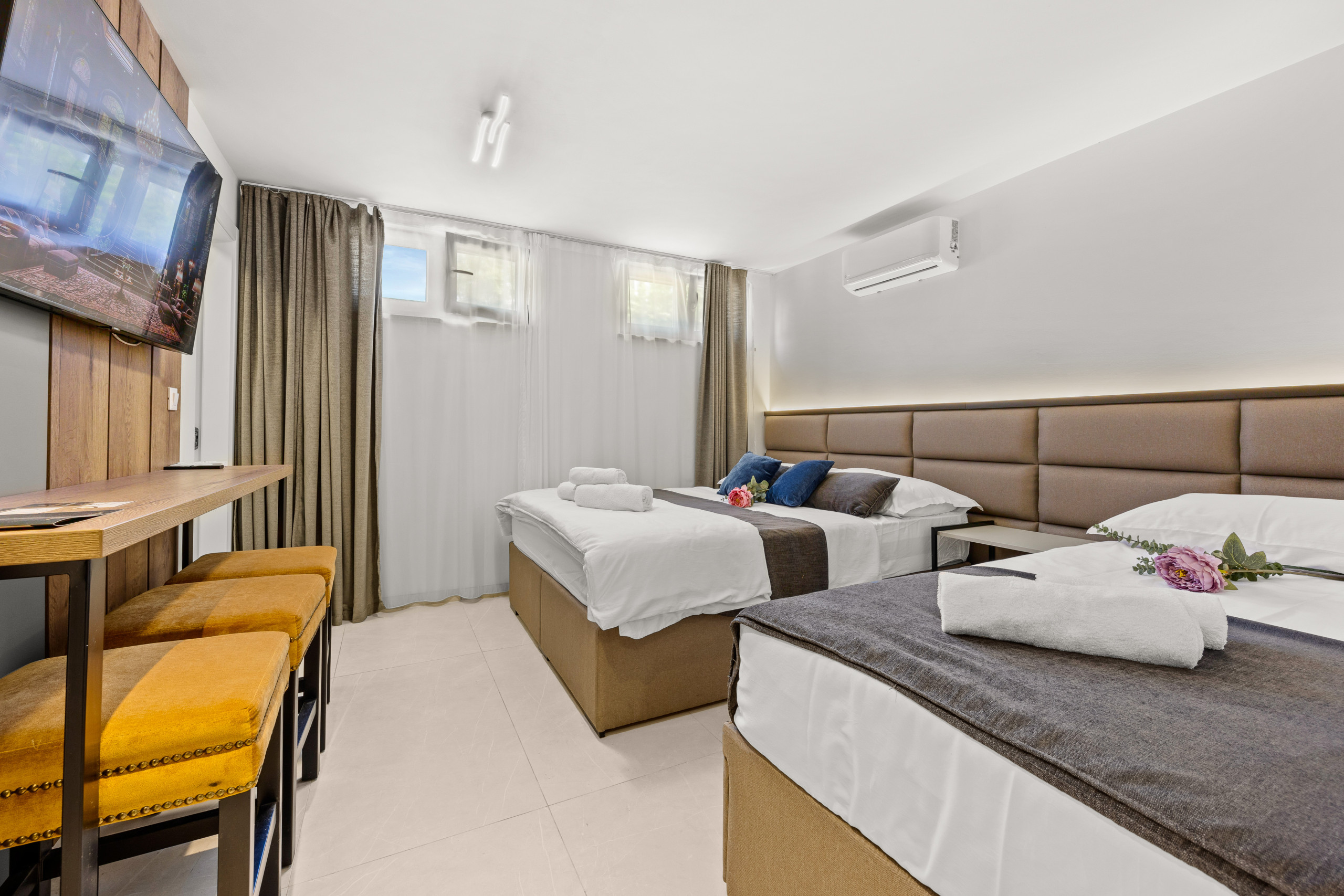 Equipped with a fully functional American-style kitchen, you'll have everything needed to prepare light meals and snacks. The kitchen comes complete with essential appliances including a stove, fridge, freezer, dishwasher, and all necessary kitchenware. A smart TV and entertainment system provide relaxation options after a day of exploring Zadar.
