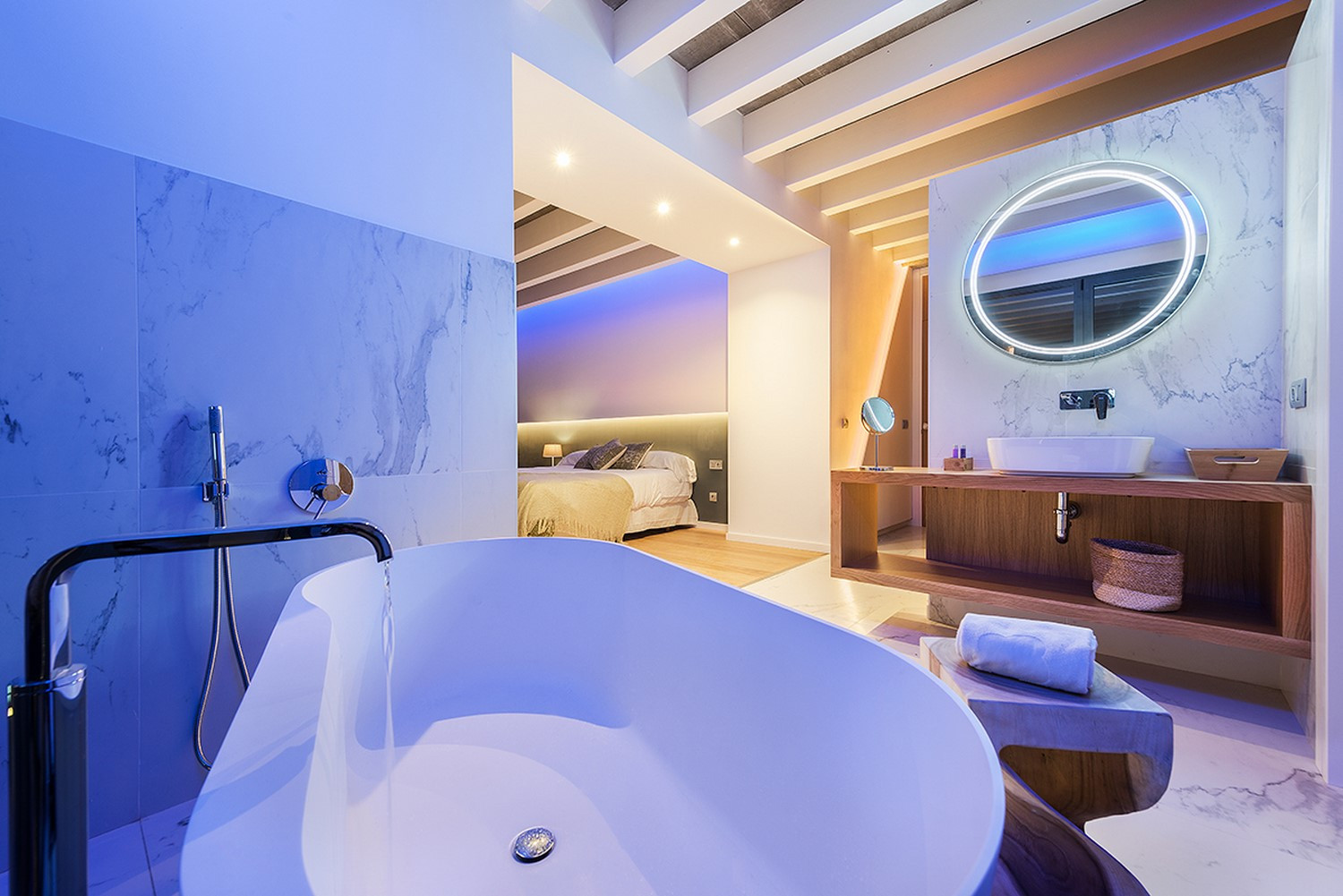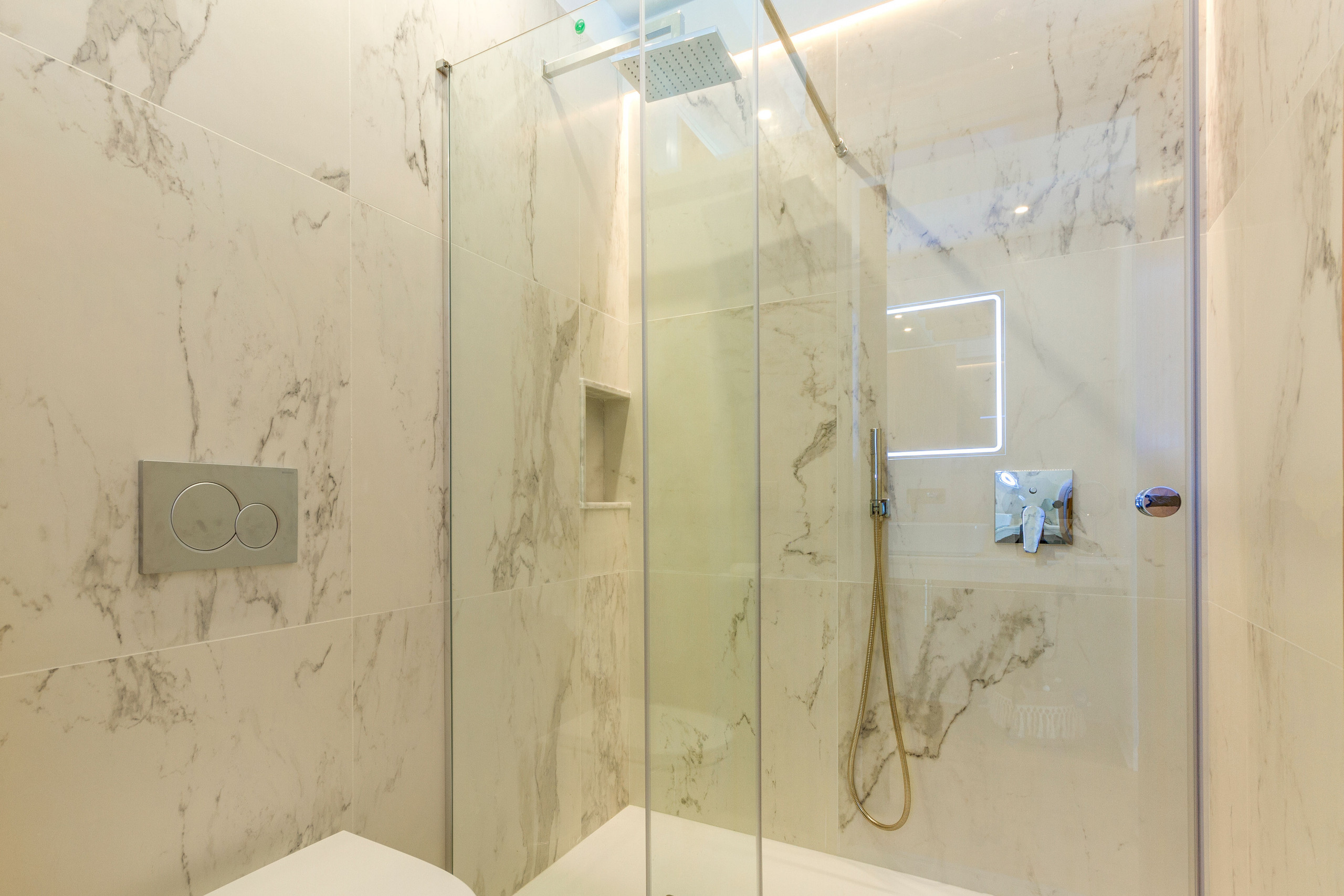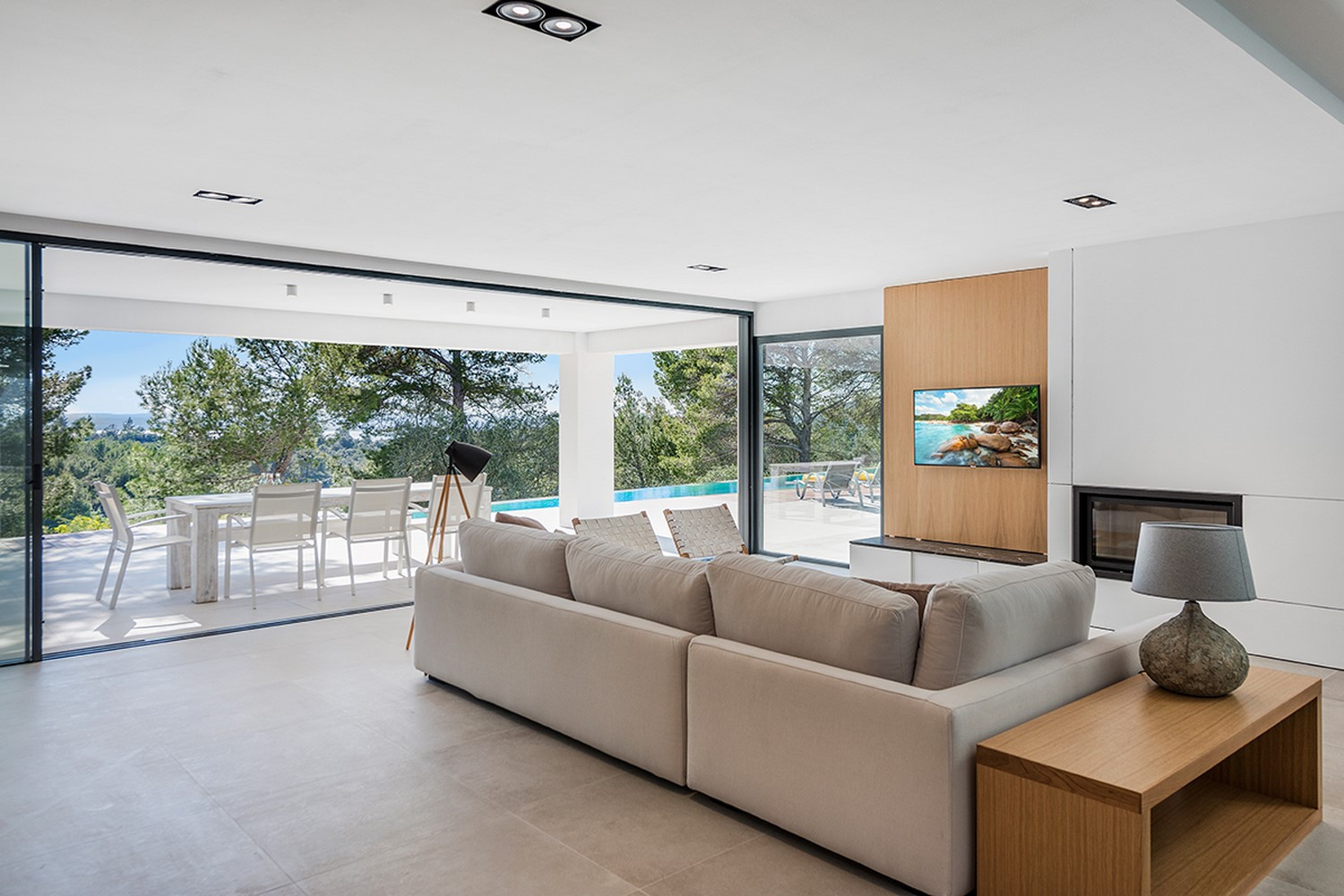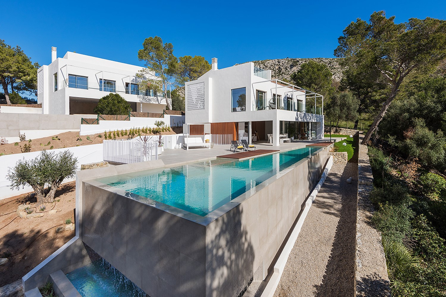 This brand new property offers marvellous views on the bay of Alcudia. A luxurous hideaway to spent your holidays with family or friends. The property is located in an elevated position with views across wonderful Green belt land to the Bay of Pollença. There are landscaped terrace gardens. The infinity pool has a water fall and a tiled and decked solarium furnished with loungers and a Balinese day bed. You will see that no expense has been spared in the construction and styling of this villa. With 4 bedrooms and 3 bathrooms, it accommodates 8 guests and is located in an affluent and picturesque zone known as the sky of Bonaire. The covered outdoor dining area is close to the pool with a further dining area by the BBQ. The sitting-dining room is very spacious and has no less than 3 floor to ceiling glass walls which open to the terrace, garden and pool. The kitchen is fabulous and has no less than three ovens. This kitchen lacks for nothing with its large island, two sinks and dining area. The room can be open plan to the sitting room or kept separate just by closing the large pocket door. Bedroom one has a kingsized bed and dual aspect views of the surrounding countryside and mountains. There is a spectacular freestanding bath and open marble shower with private WC. This suite has access to a furnished terrace. There is also a quite reading-chill out space with views to the sea on the first floor. Bedroom two has a kingsized bed with access to a decked terrace and en suite bathroom. Bedroom three has a kingsize bed with a bathroom ensuite and views to the nature. Bedroom four is equipped with two single beds. There is secured off Street parking.