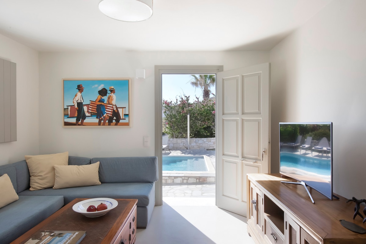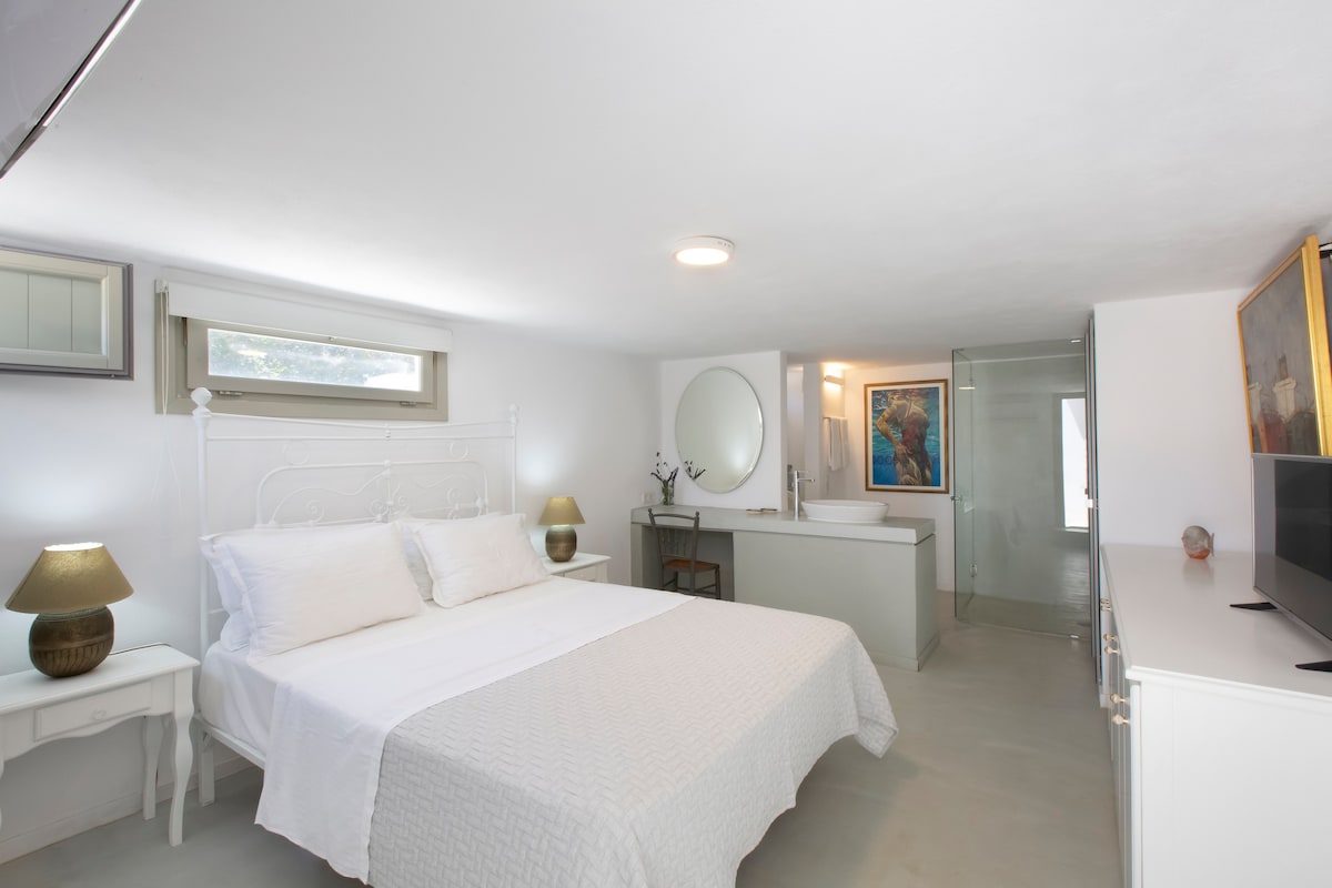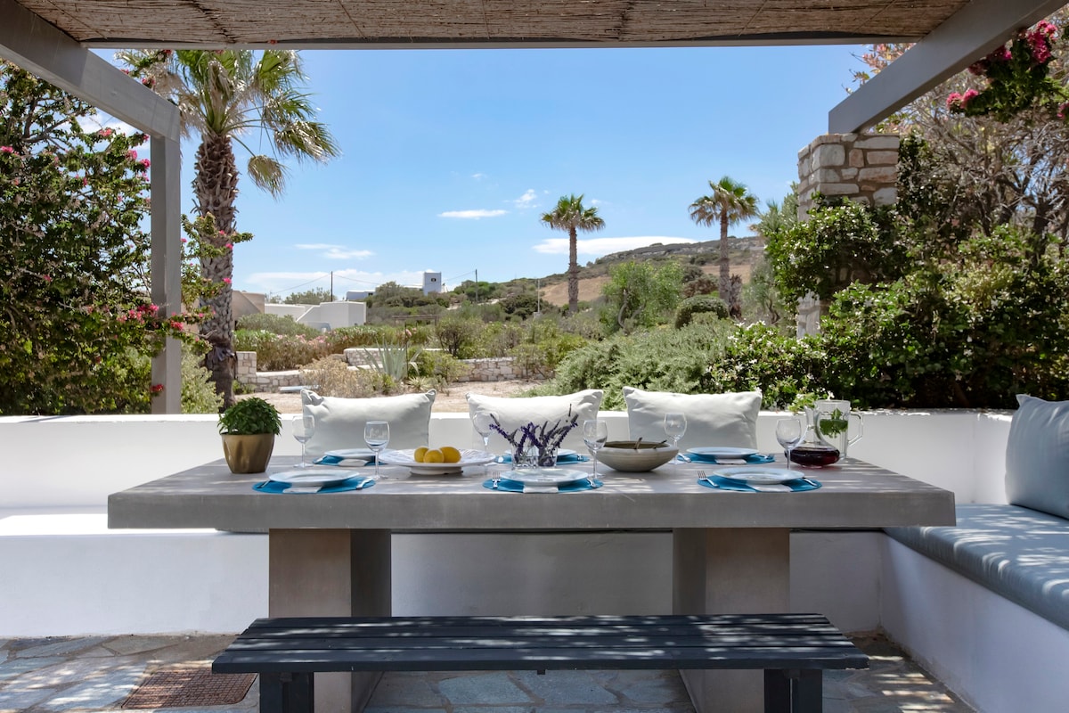 Ambelas is a charming fishing village, a few minutes’ drive from Naousa town. There is a picturesque port, lovely beaches and plenty of tavernas offering the day’s catch. Some of Paros’ best known beaches, such as Santa Maria and Kolimbithres are just a short drive away. The village also has a riding school, a yoga and meditation centre and shops for necessities. It is a great spot for those wanting to explore Paros’ traditional hillside villages like Lefkes. The villa is located in a residential area within walking distance of Ambelas.