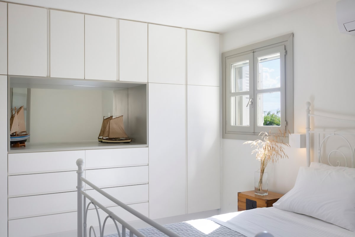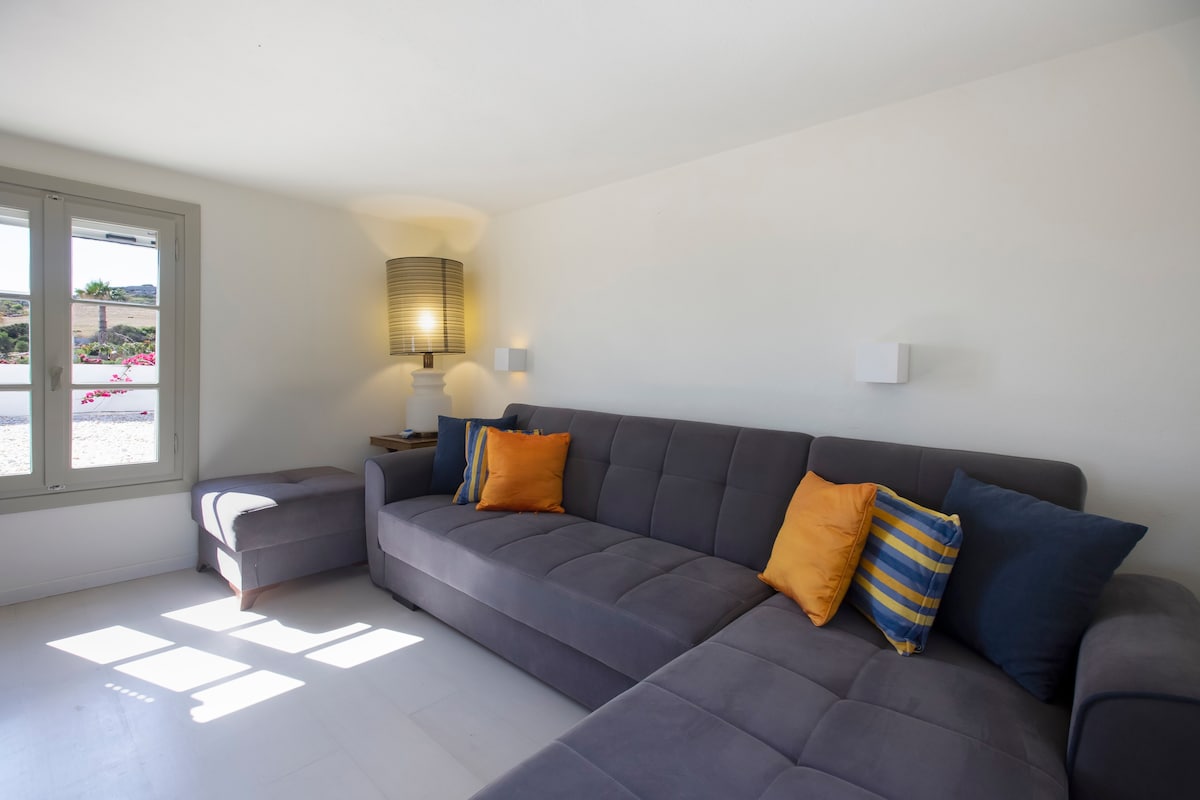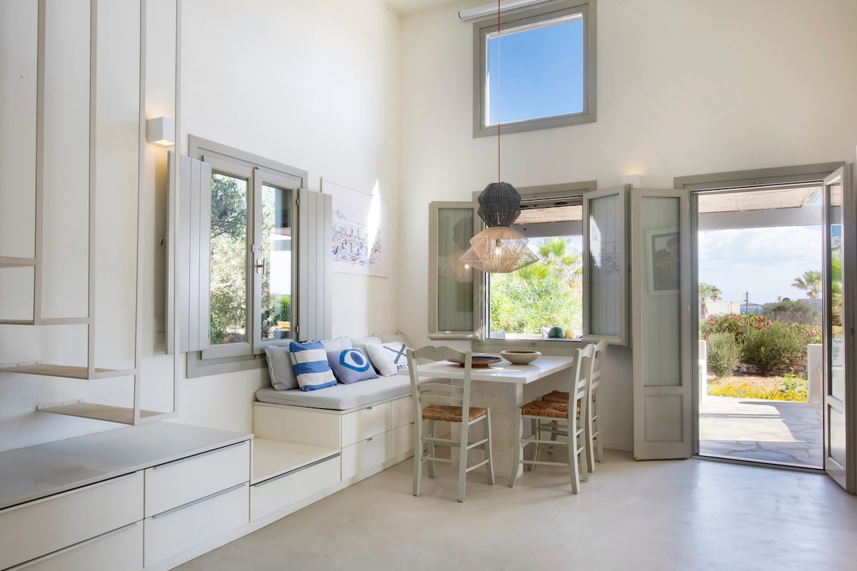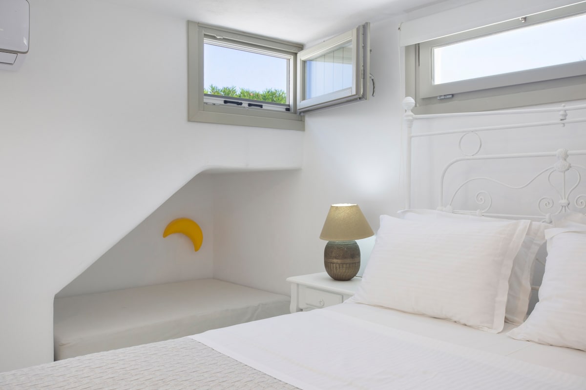 Stay on the outskirts of a lovely fishing village in a beautifully renovated family home with sea views. Just a 2-minute walk from two pristine beaches, our villa has a large garden adn BBQ for adults and kids to enjoy. Up to 6 people can holiday on the idyllic island of Paros, close to basic amenities, fabulous beaches, and a short drive from Naousa town’s picturesque alleys, bars, restaurants and shops.The villa’s second bedroom has a separate entrance offering a large degree of independence.
