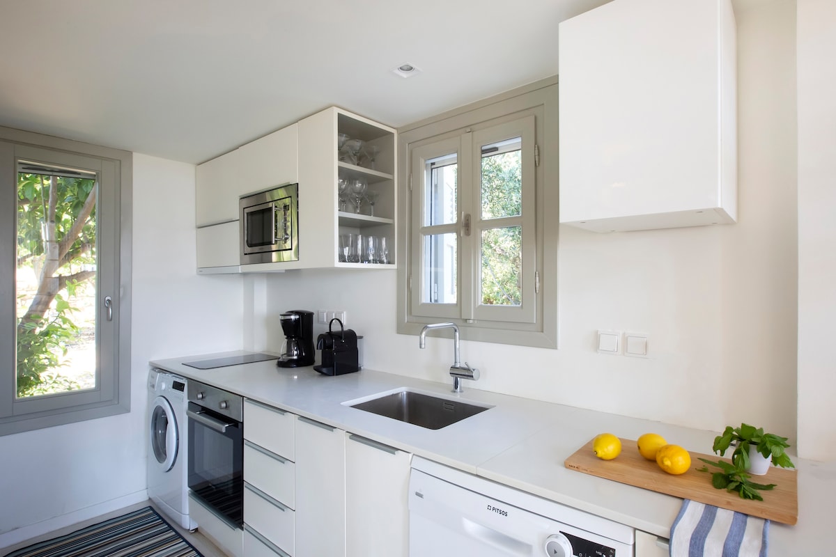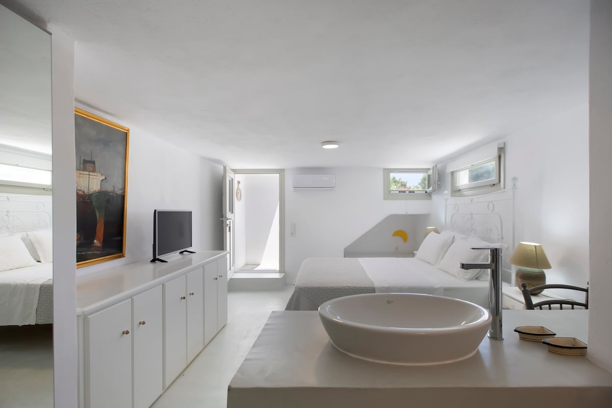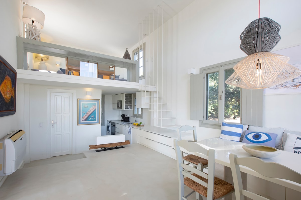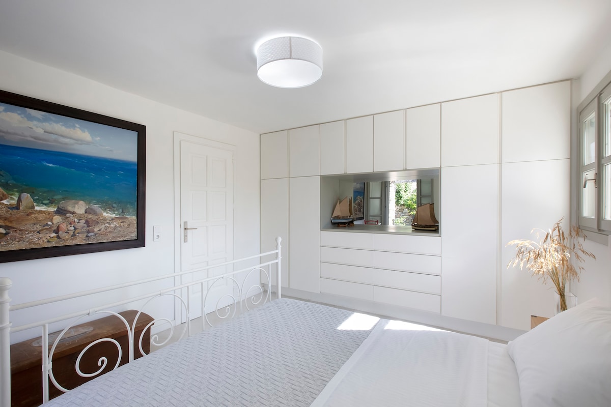 Stay on the outskirts of a lovely fishing village in a beautifully renovated family home with sea views. Just a 2-minute walk from two pristine beaches, our villa has a large garden adn BBQ for adults and kids to enjoy. Up to 6 people can holiday on the idyllic island of Paros, close to basic amenities, fabulous beaches, and a short drive from Naousa town’s picturesque alleys, bars, restaurants and shops.The villa’s second bedroom has a separate entrance offering a large degree of independence.