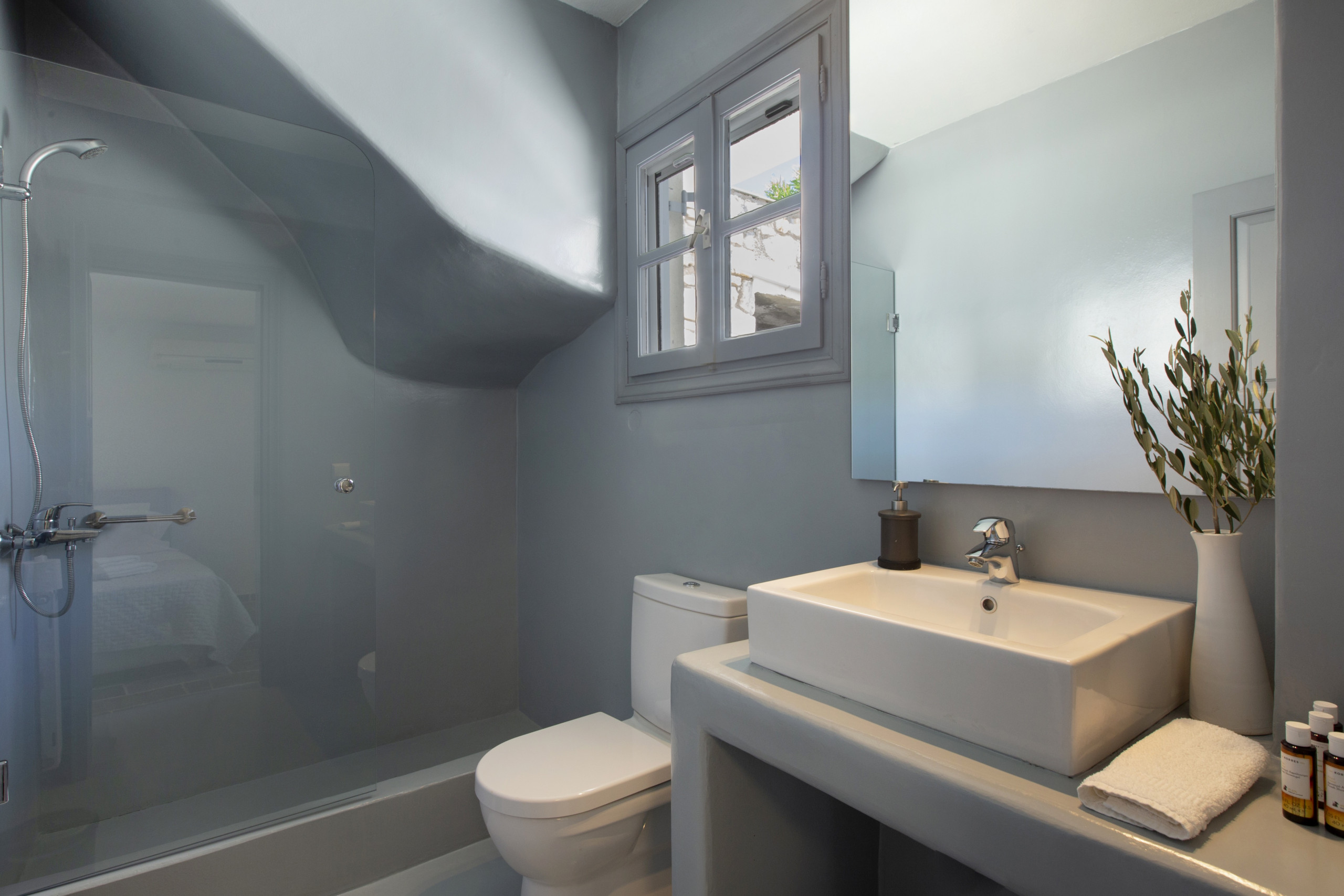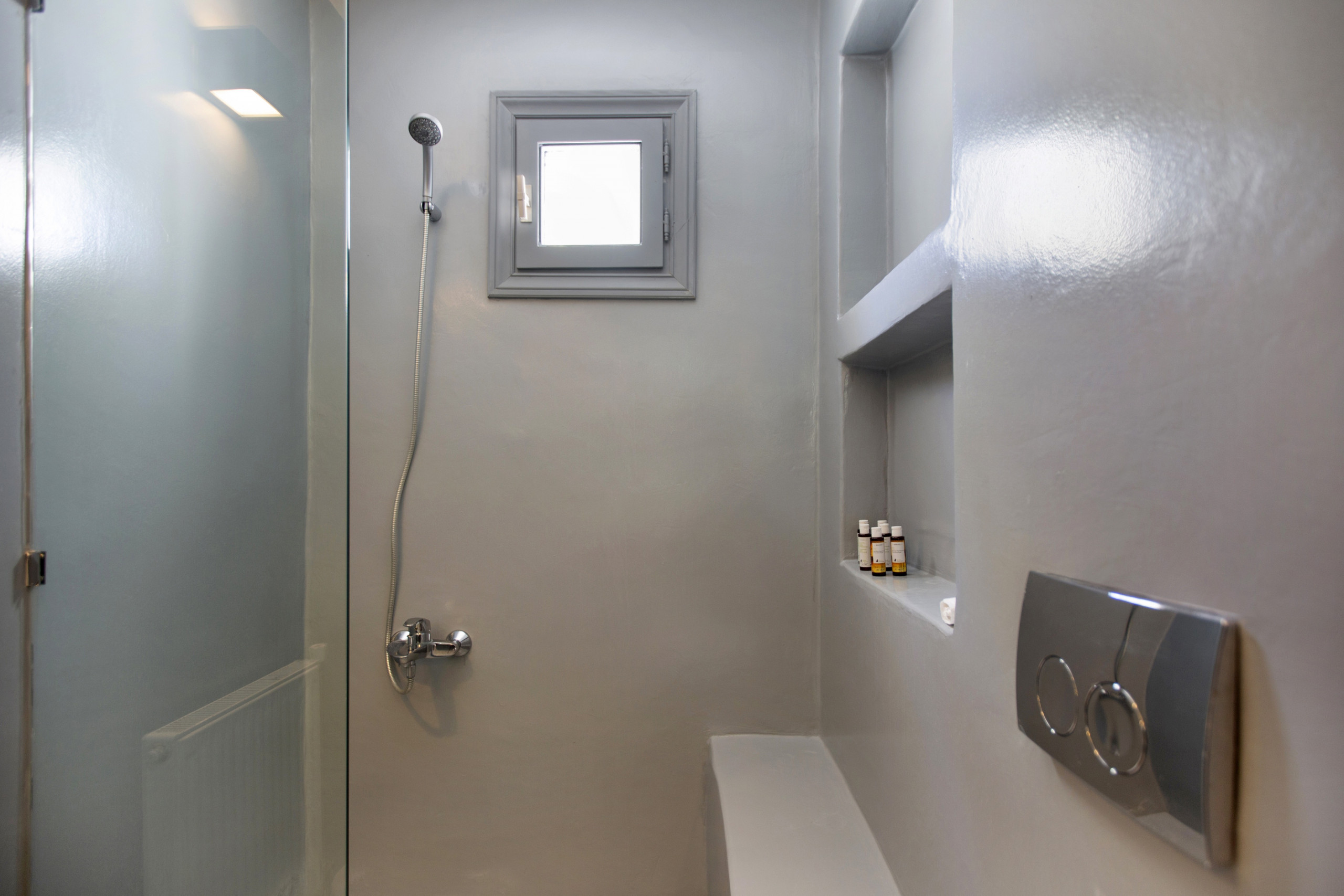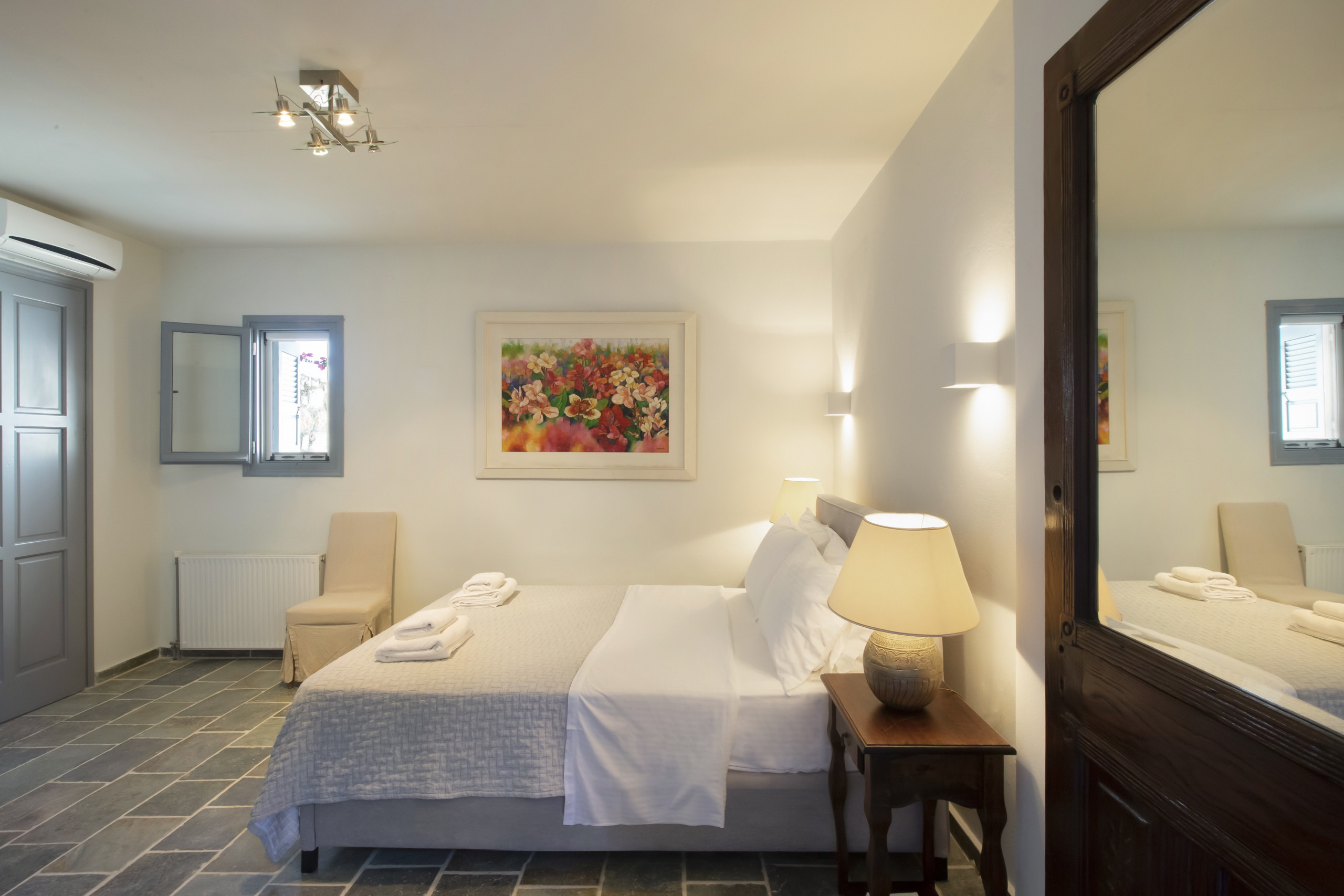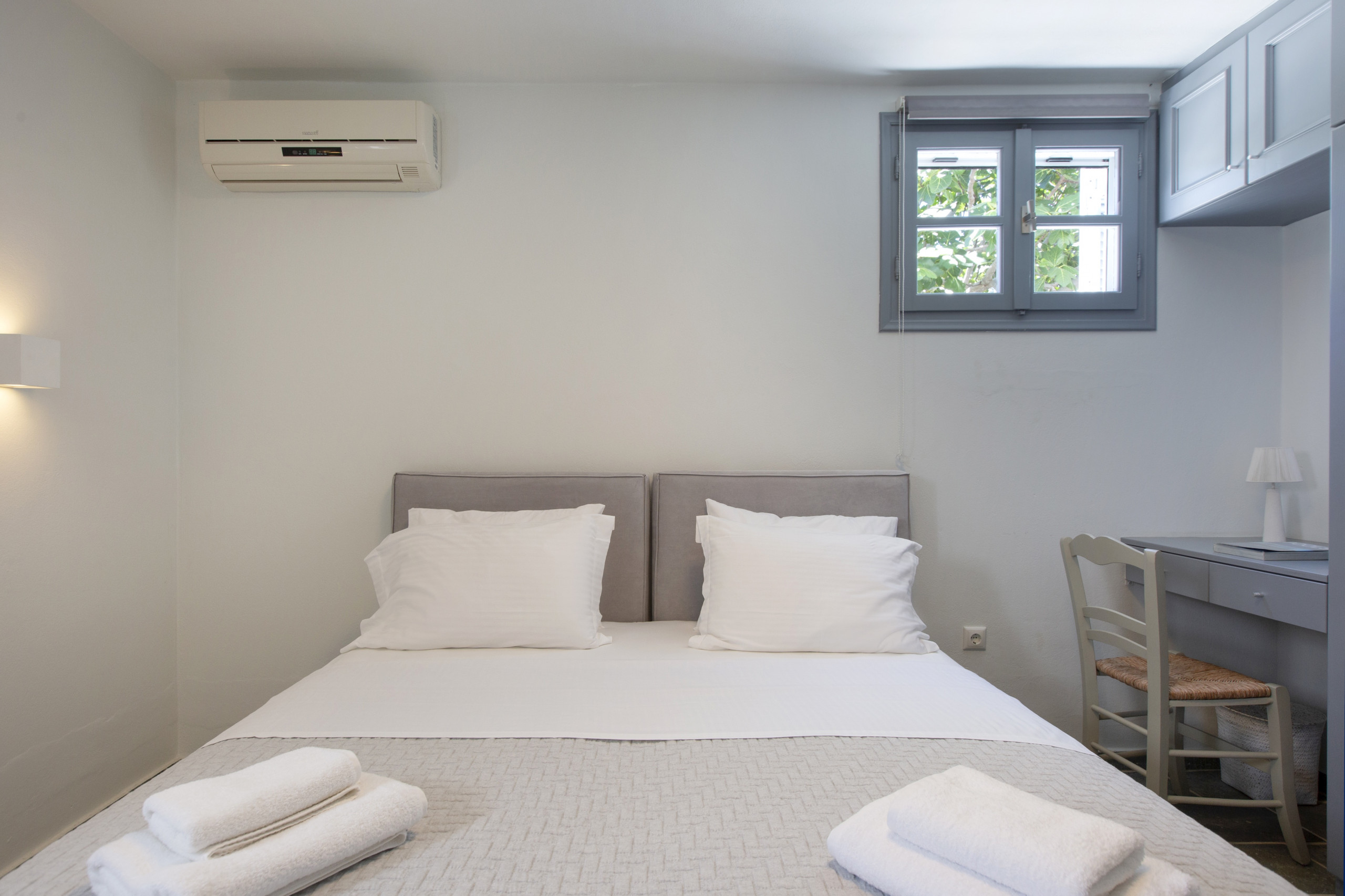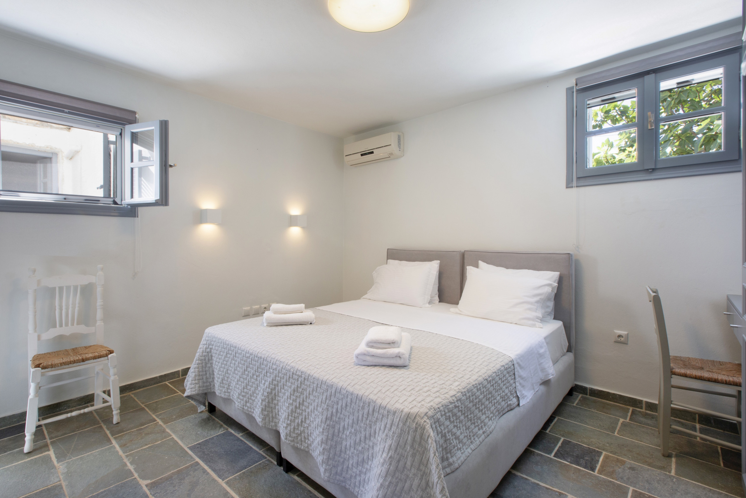 You will have exclusive use of its large garden full of trees and aromatic plants. The residence’s large shaded terrace has a built double bed. There you will be able to relax day and night, take in the stunning sea and Paros views or have a bite to eat and something to drink during the gentle summer evenings.