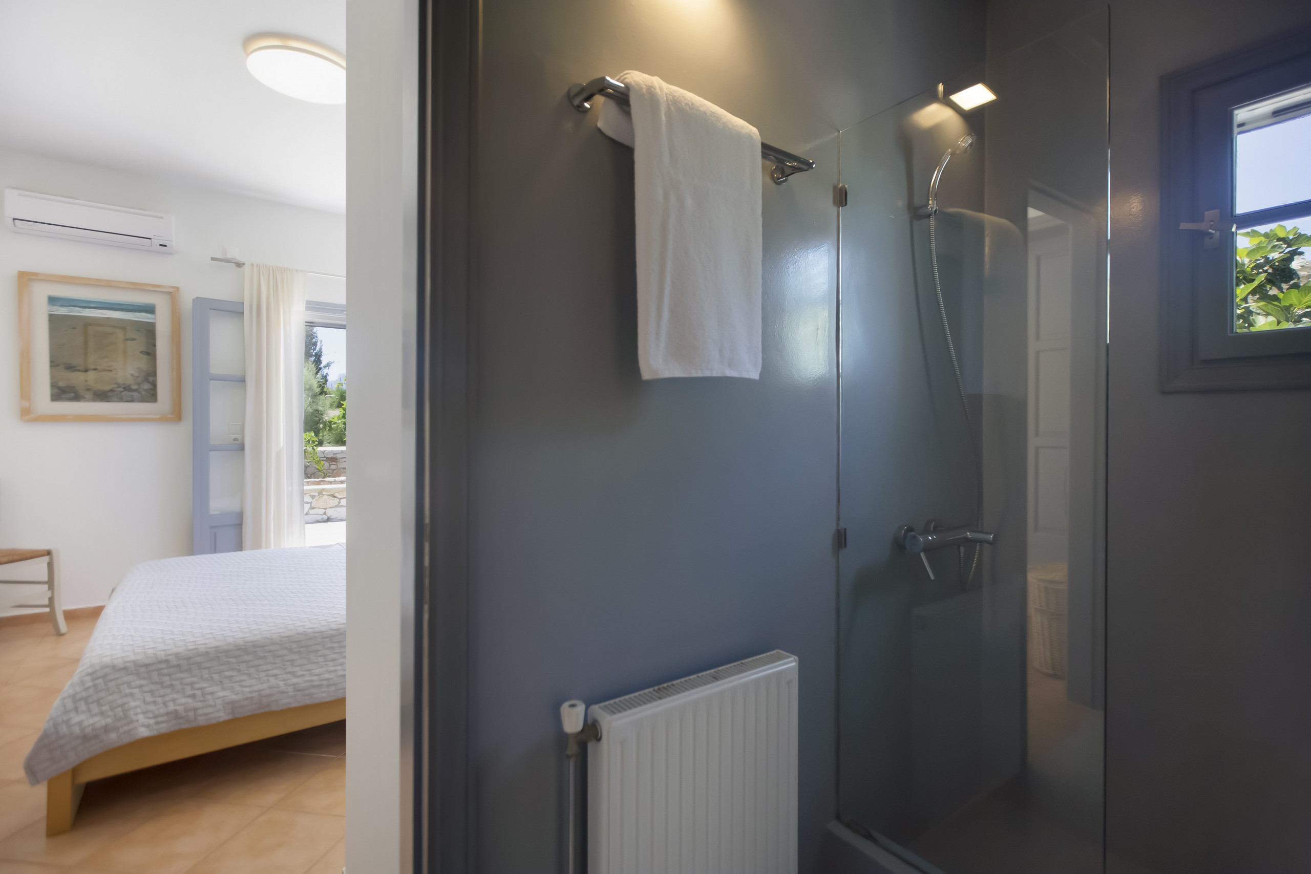 The bedrooms are very spacious and look out onto the garden and the sea. All four have double beds. One of our bathrooms has a large bath tub and all come with modern showers.